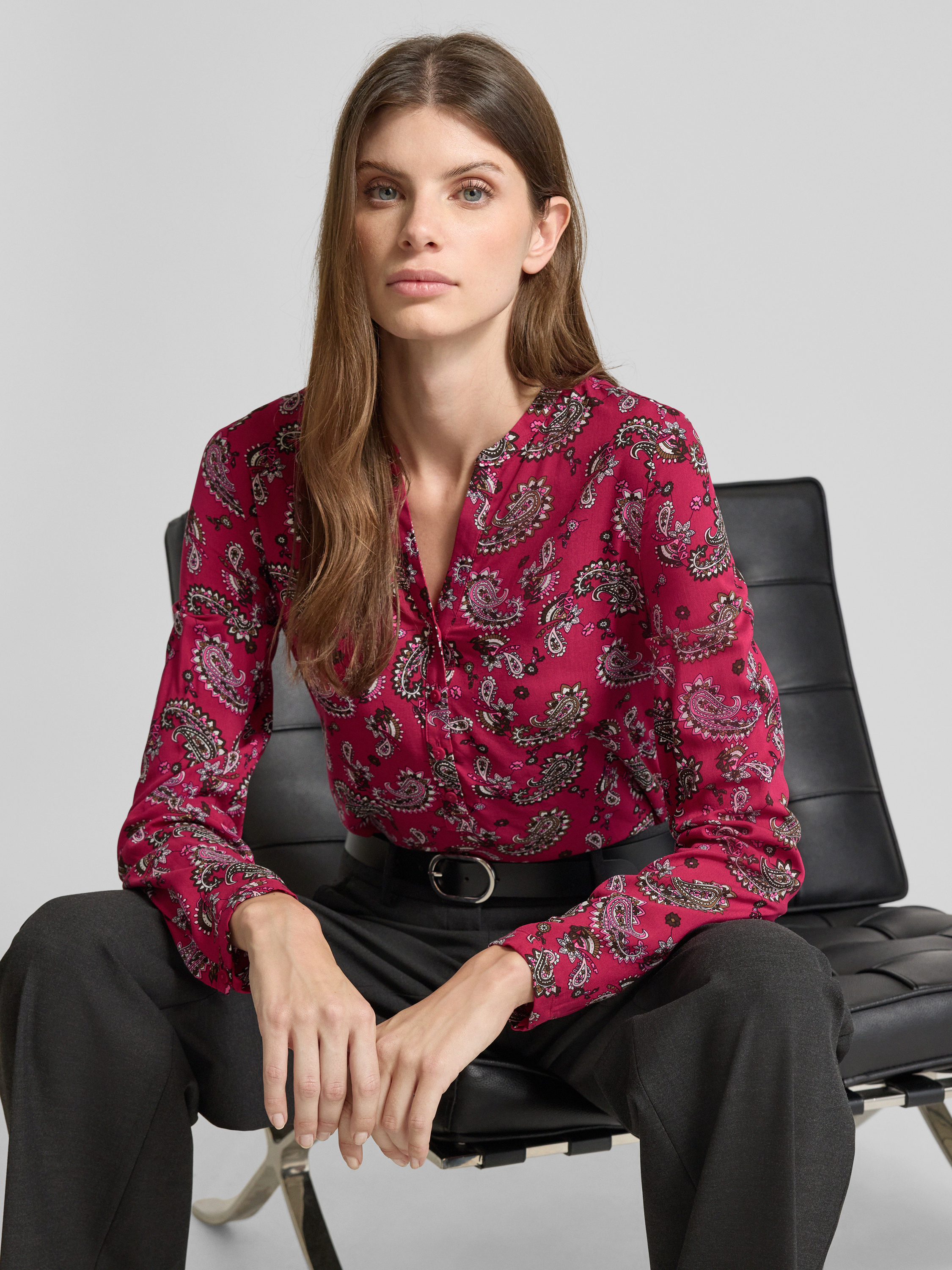 Blouseshirt van viscose met V-hals in fuchsia