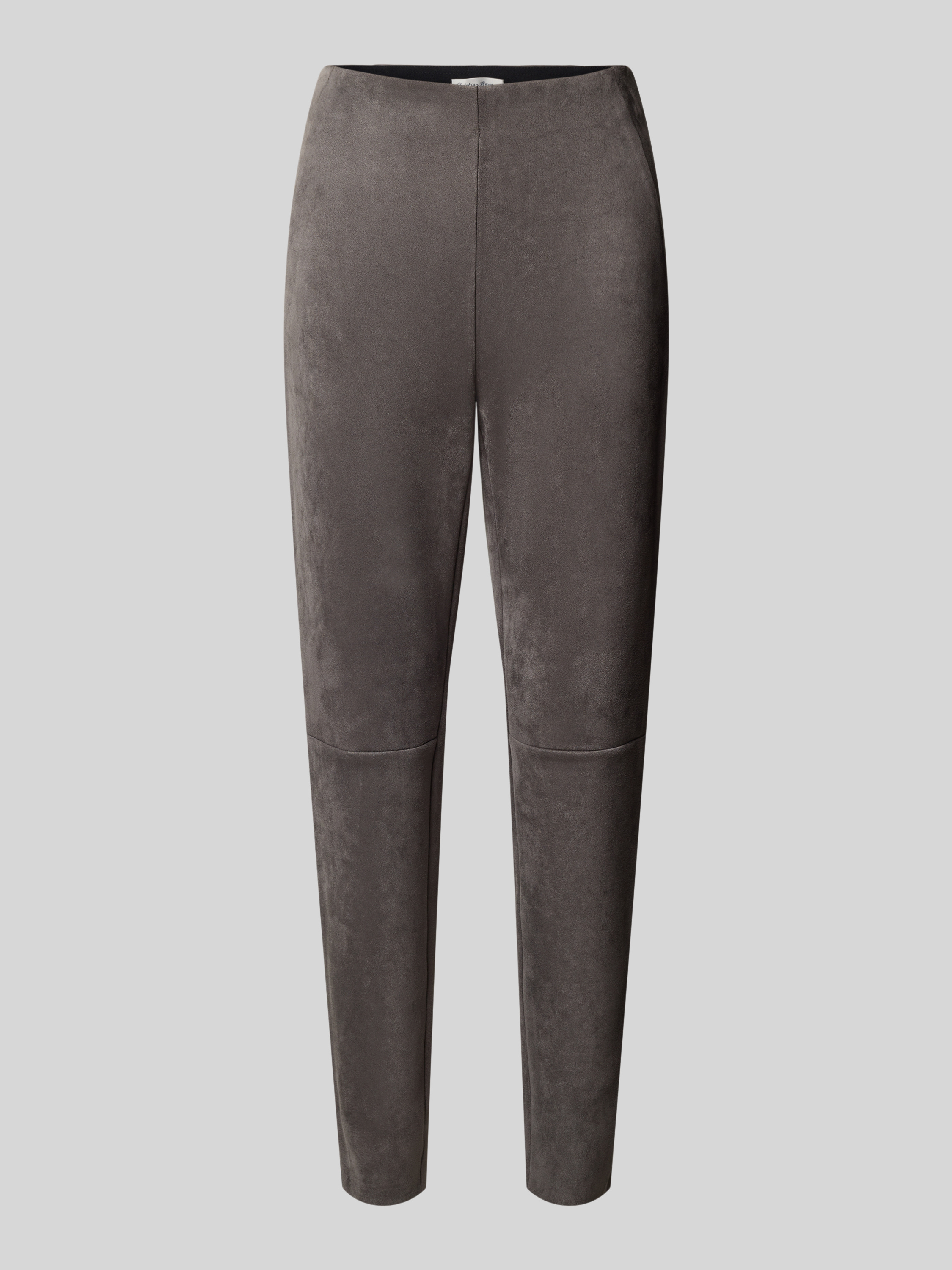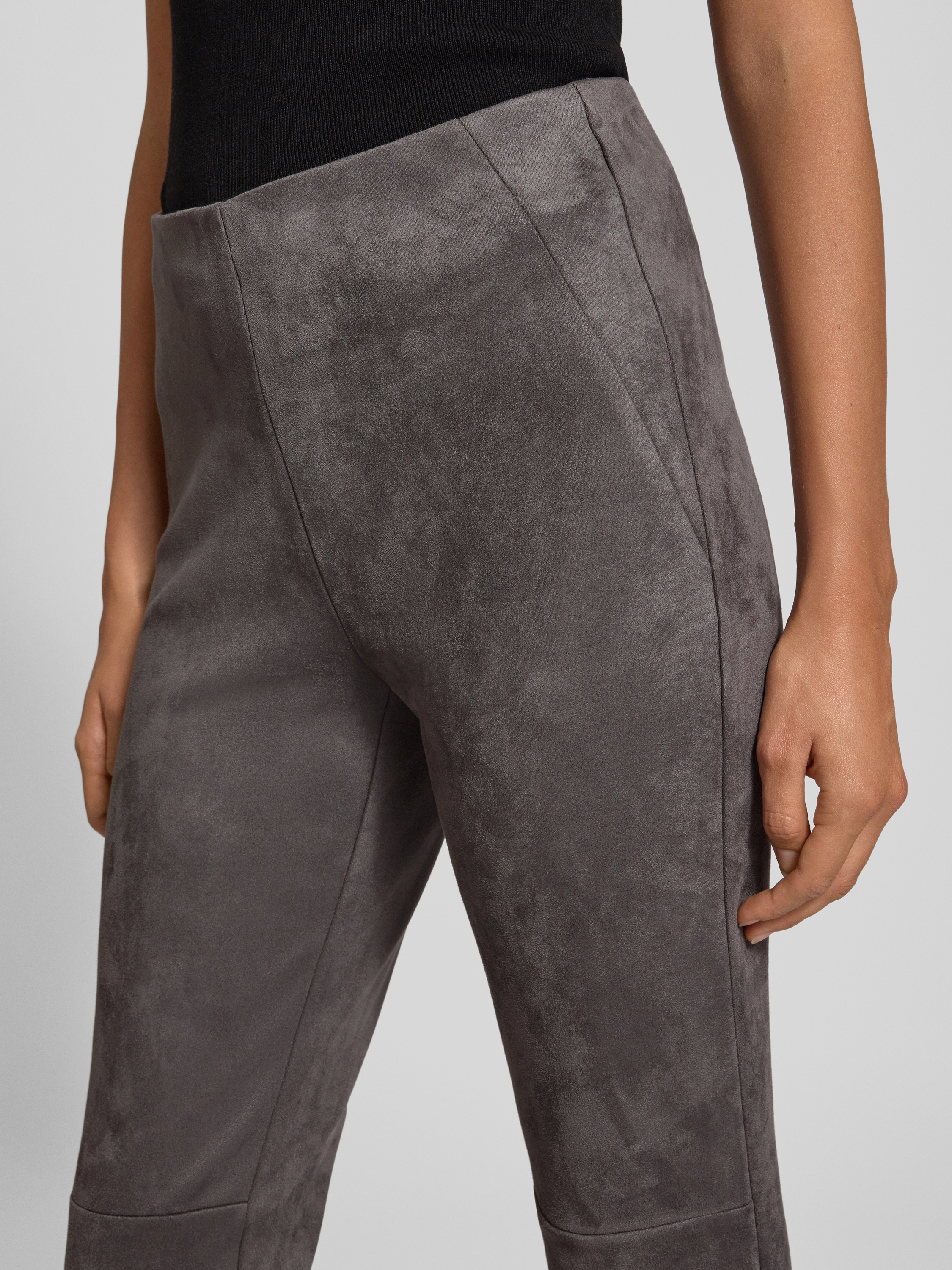 Broek in leerlook met elastische band in grafiet