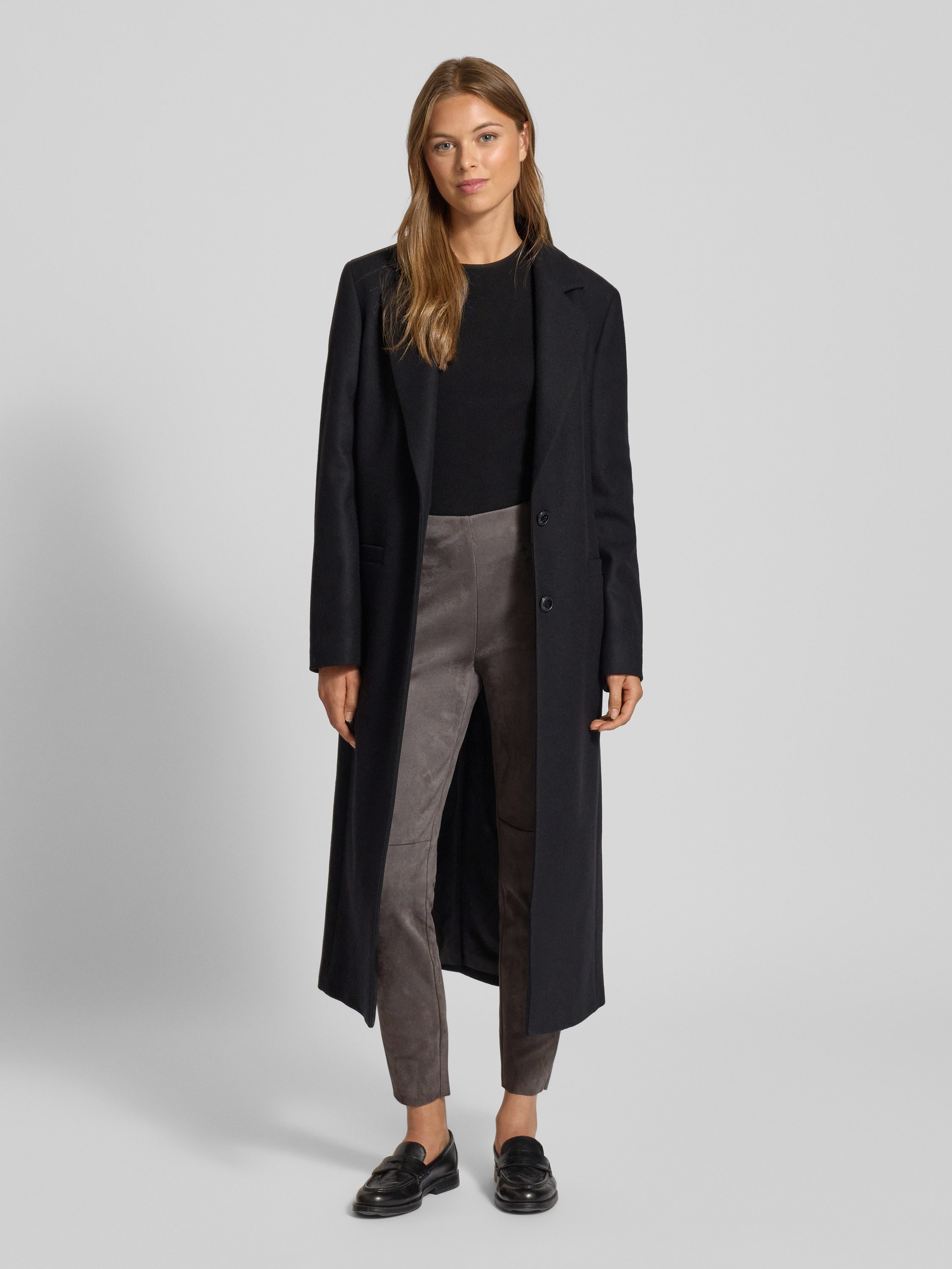 Comfort fit lange wollen jas met 2-knoopssluiting, model 'MOJENI'