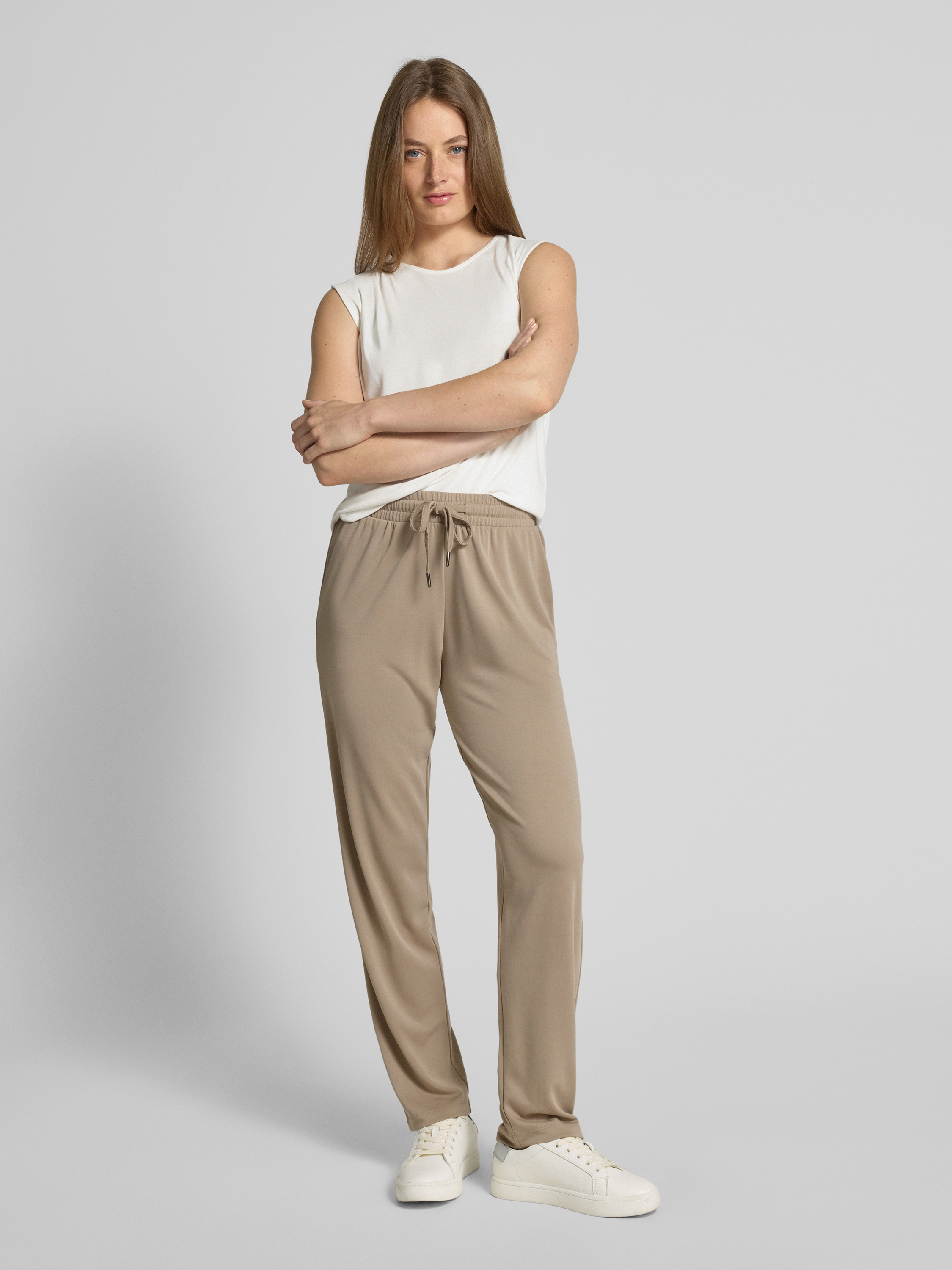 Broek met elastische band en tunnelkoord in steengrijs