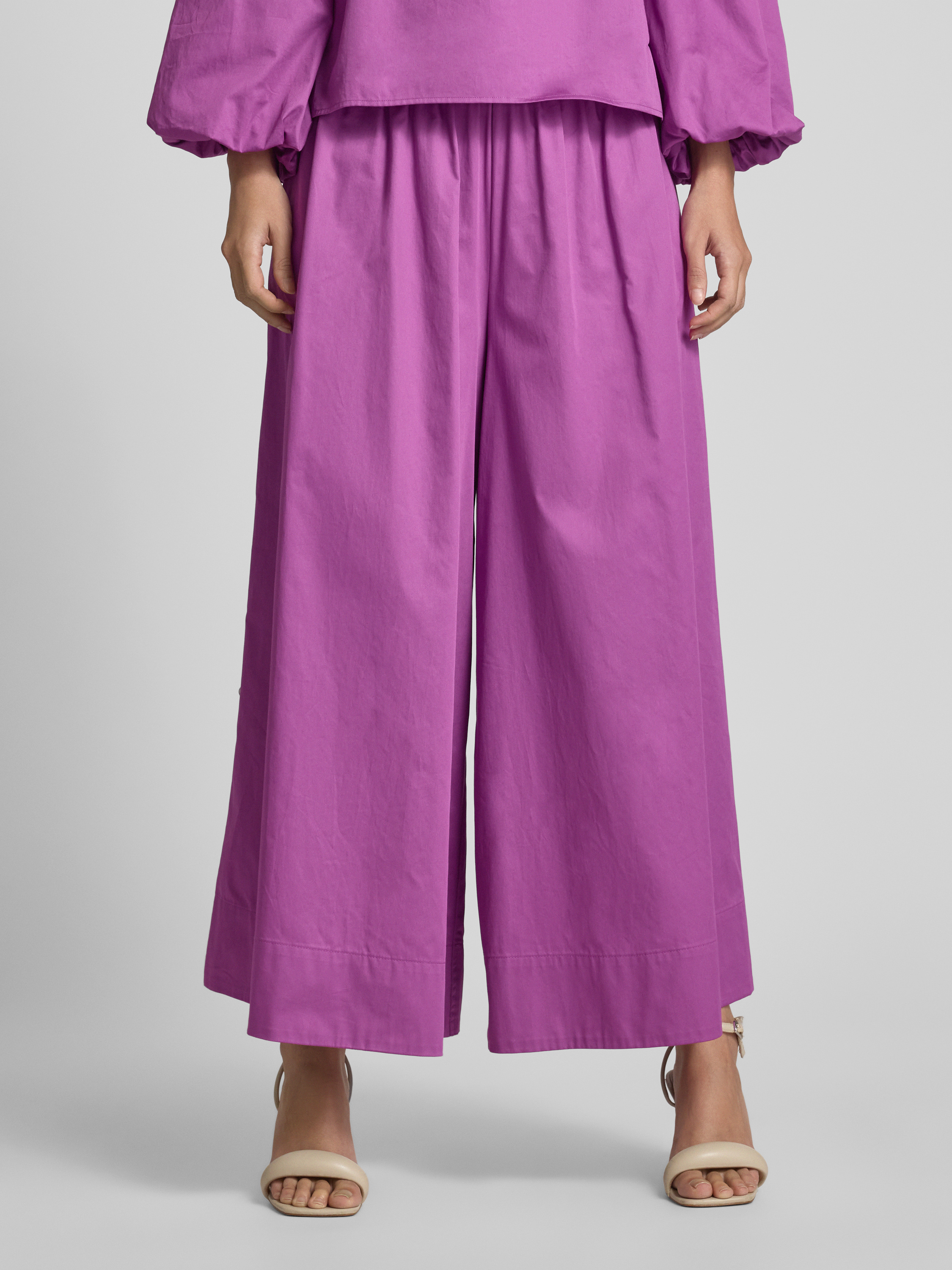 Broek met wijde pijpen en elastische band in paars
