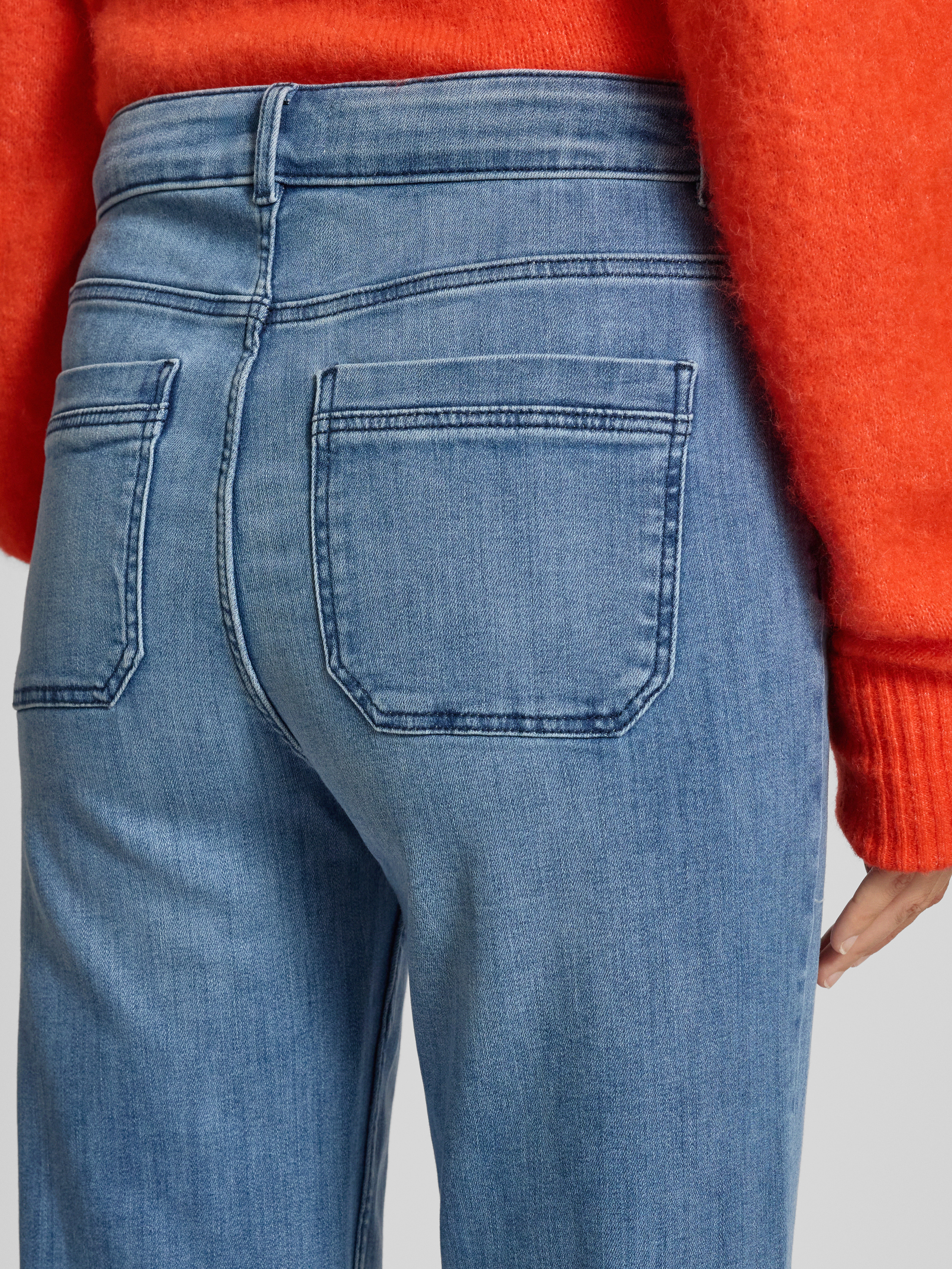 Flared fit jeans van katoenmix met paspelzakken in offwhite