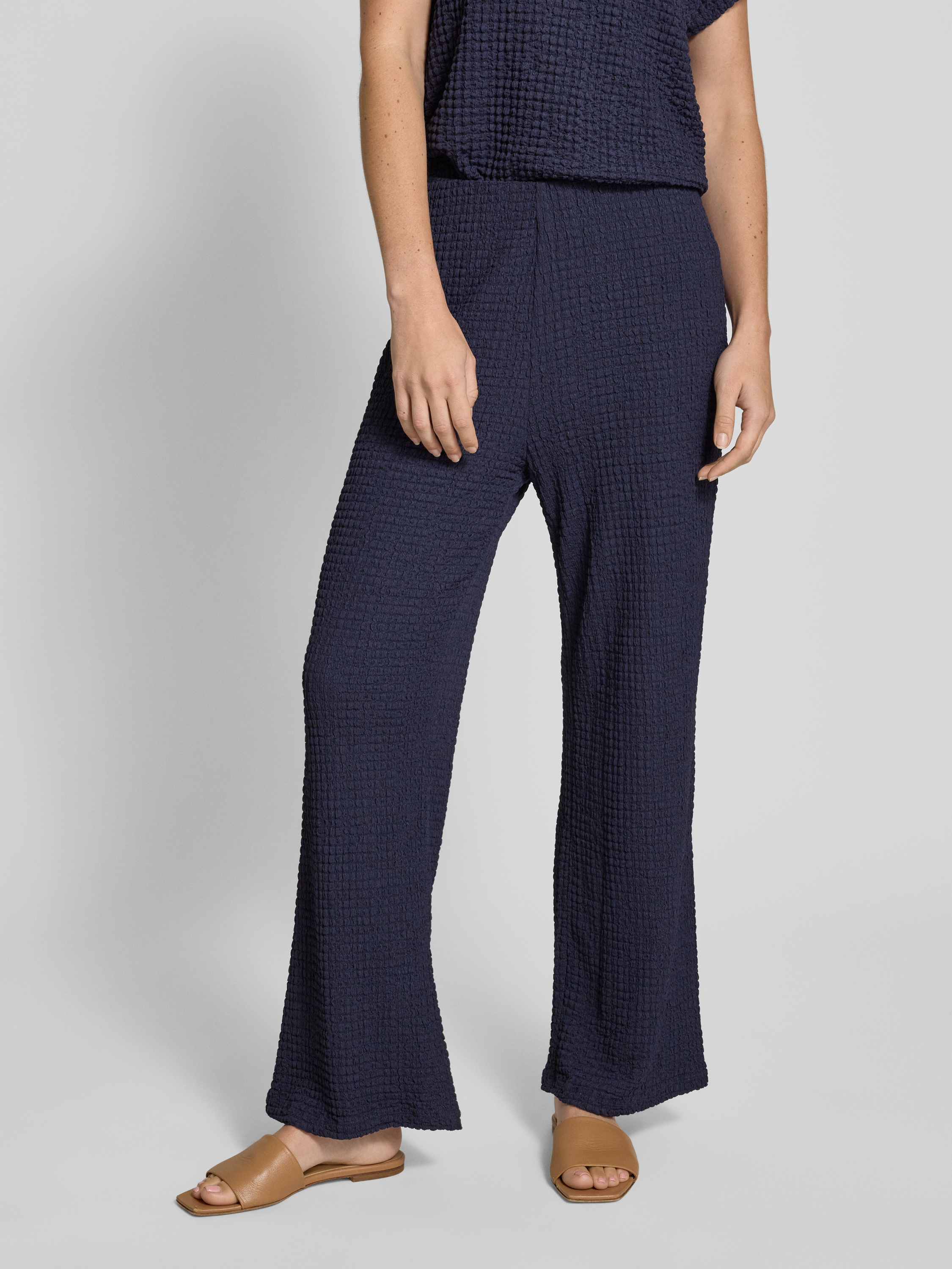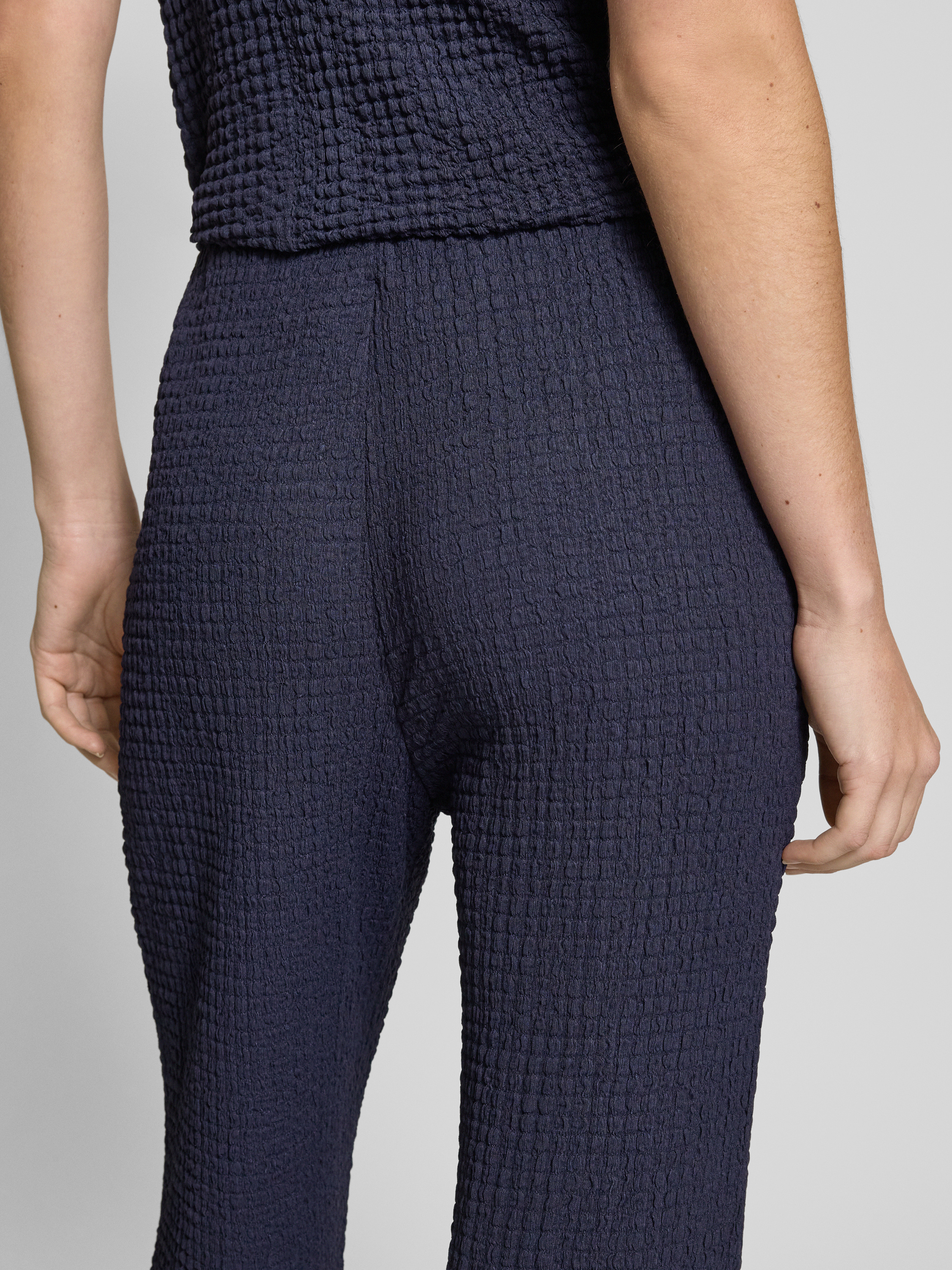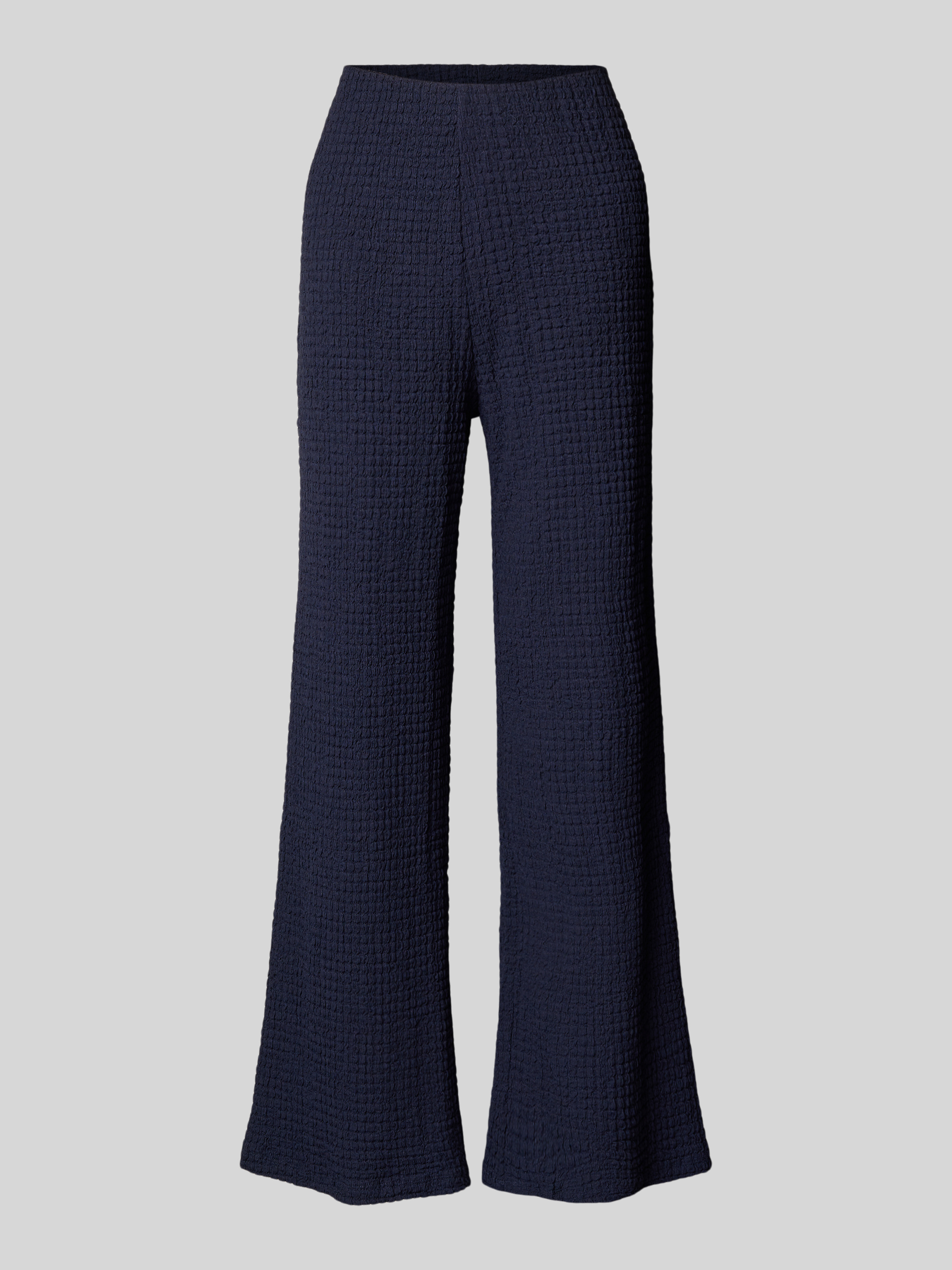 Flared stoffen broek met structuurmotief in donkerblauw