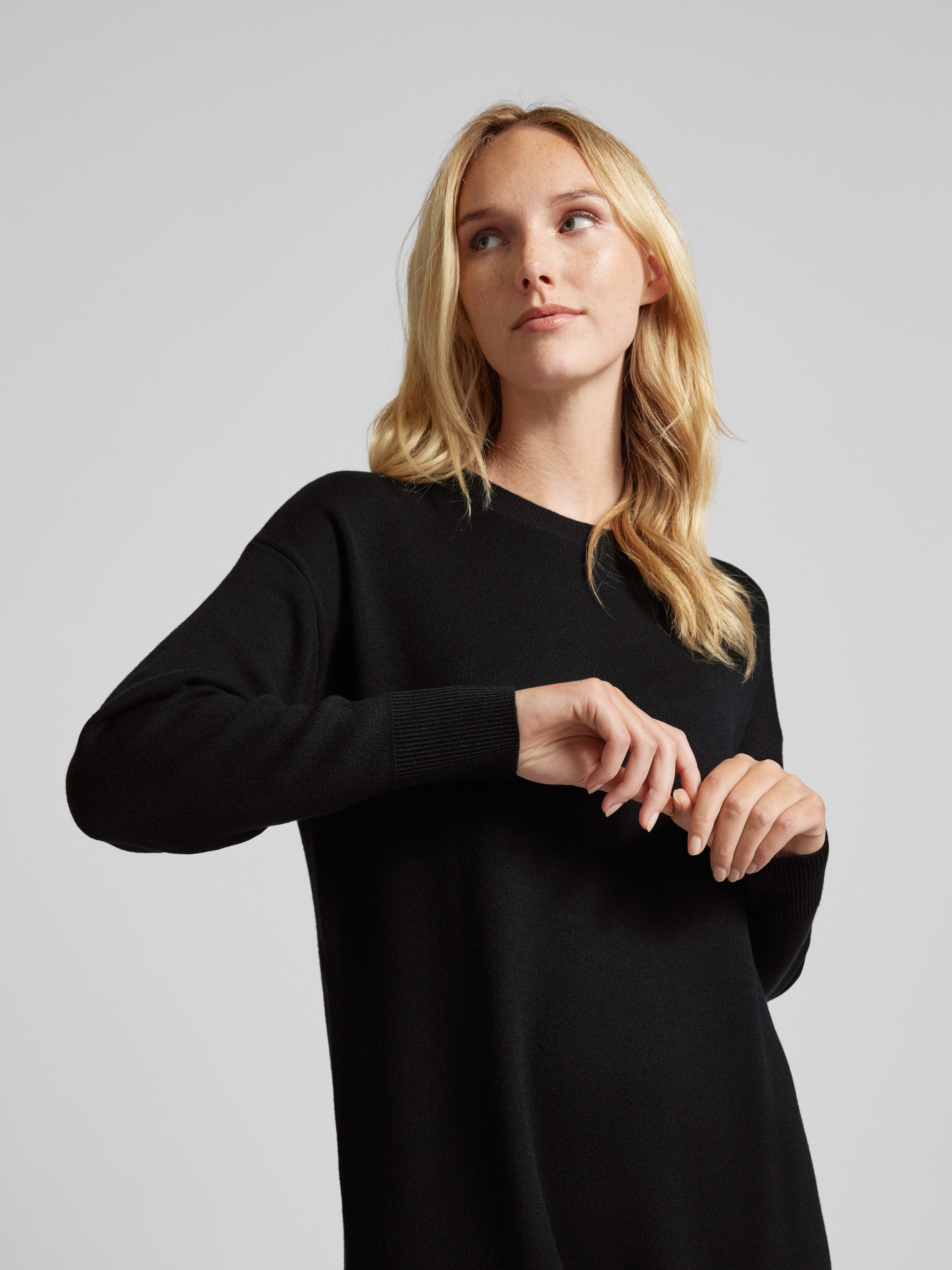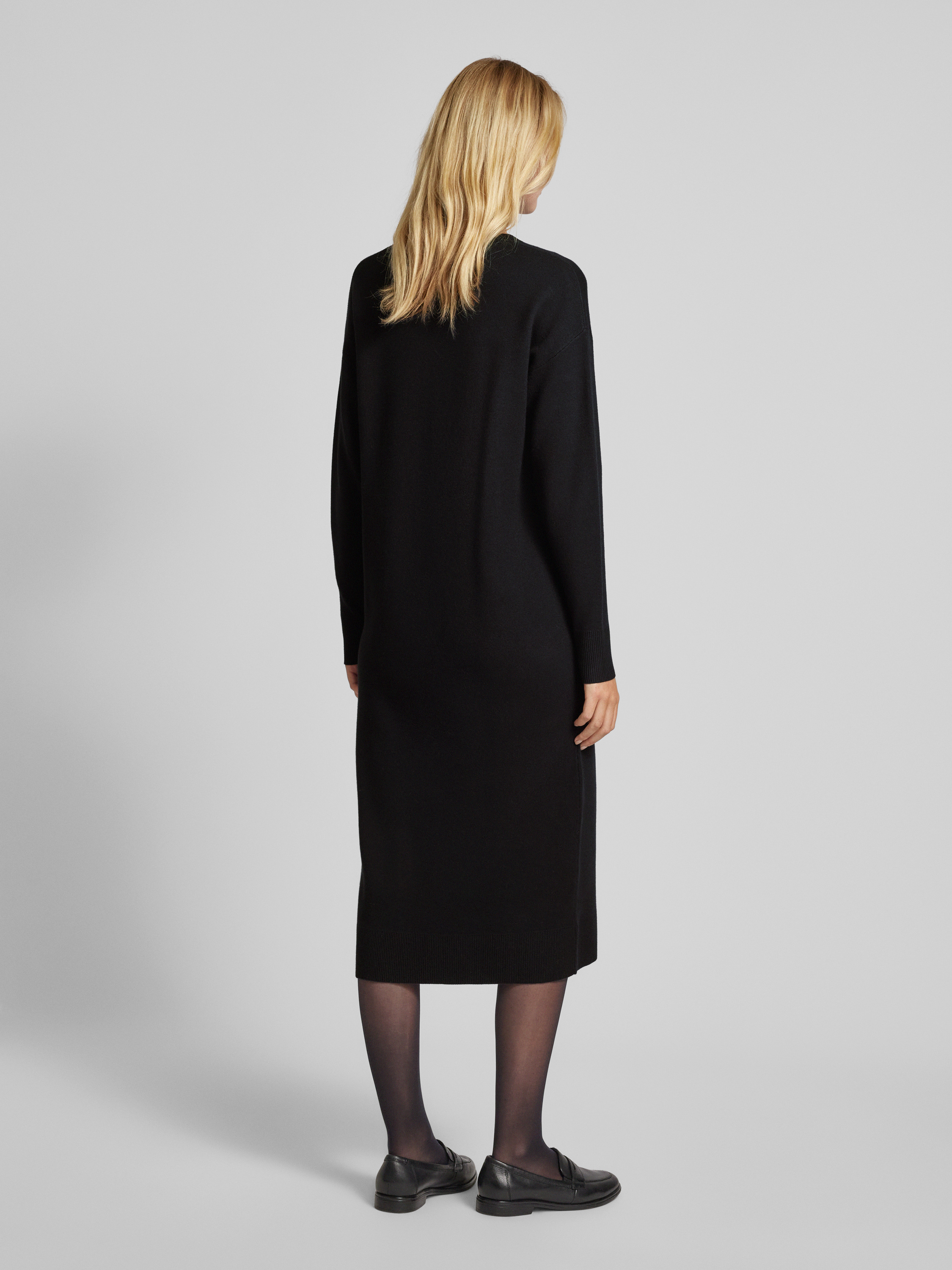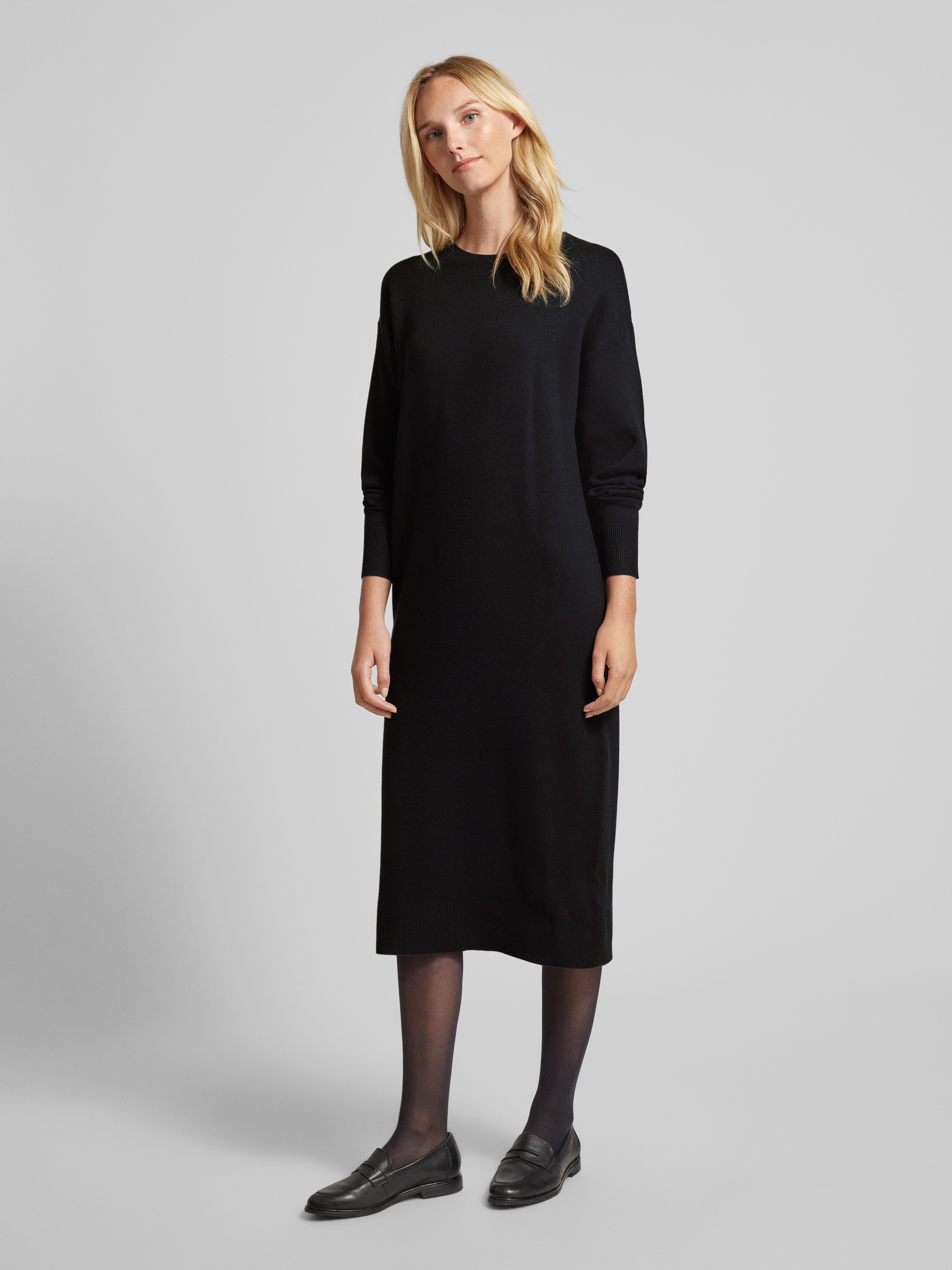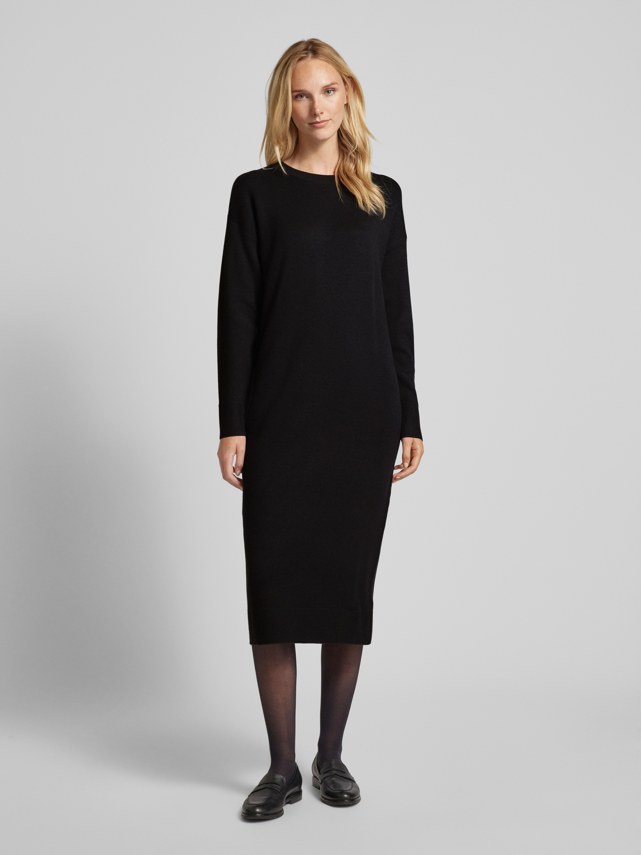 Gebreide jurk van viscosemix met ronde hals in zwart