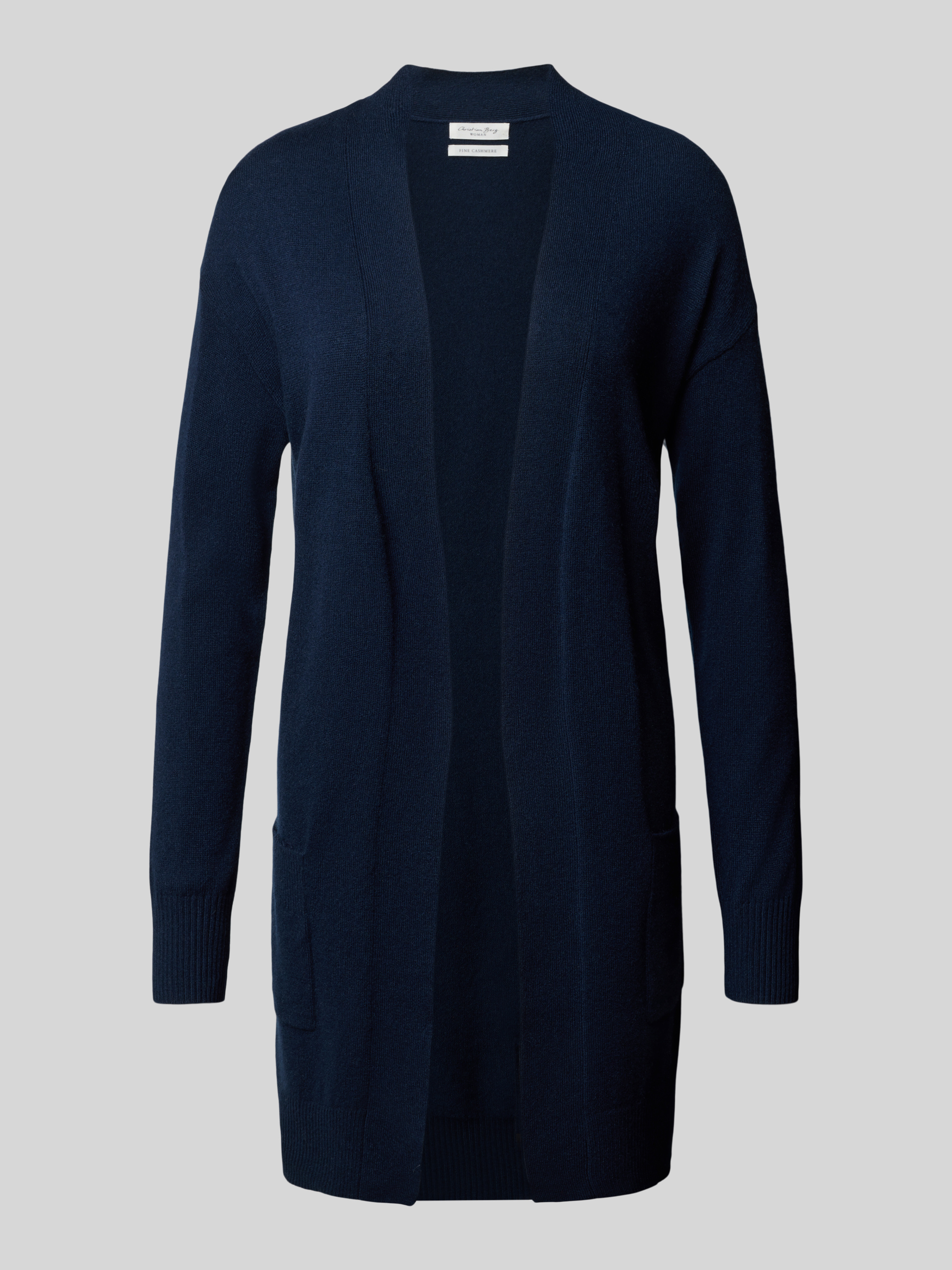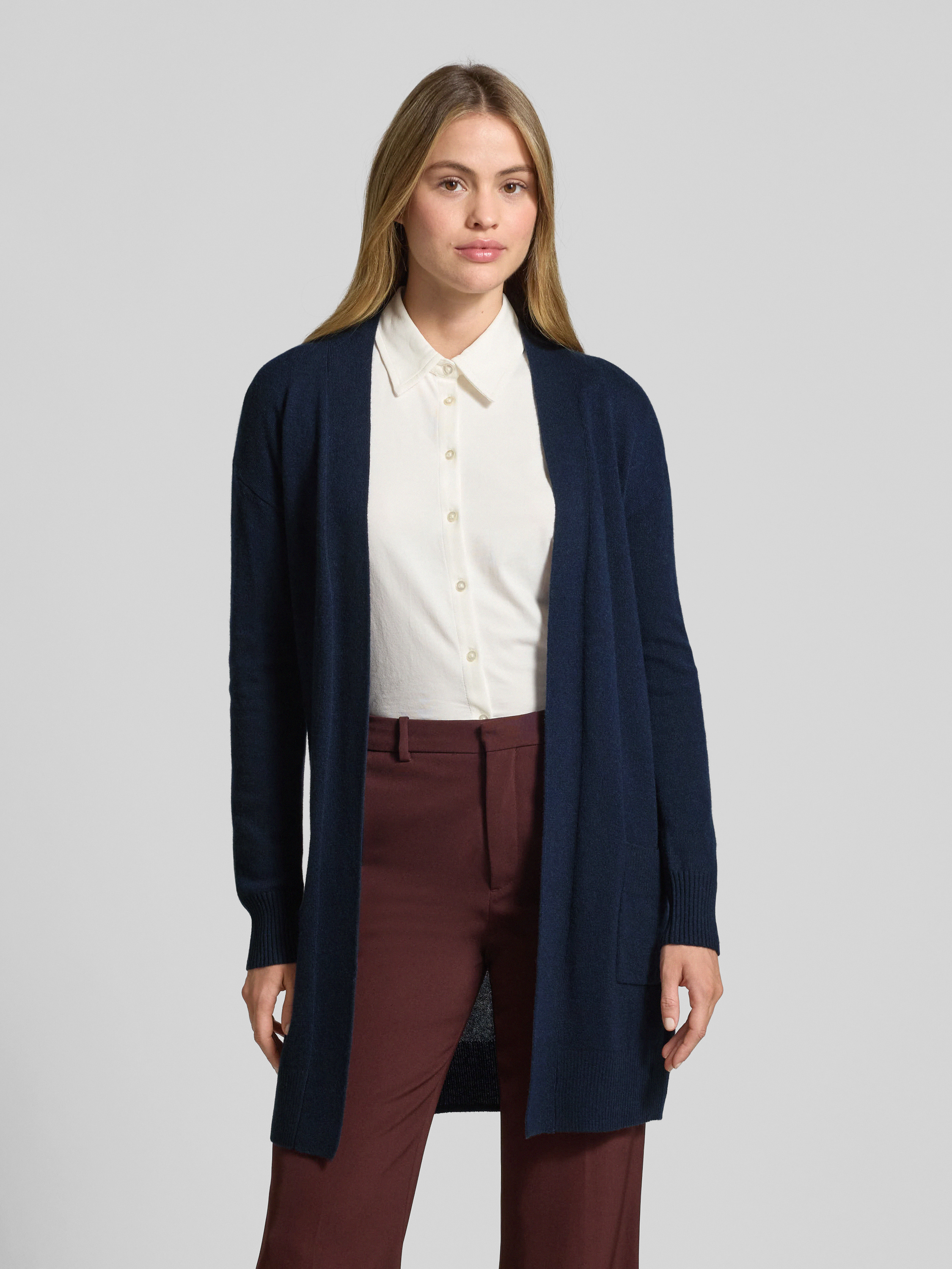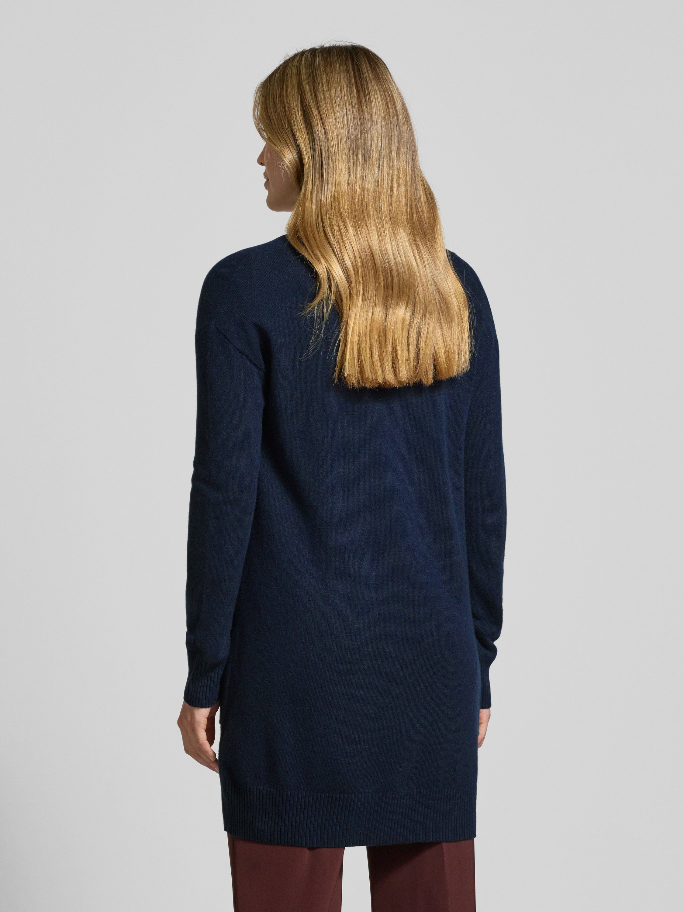 Gebreide lange jas van kasjmier met opgestikte zakken in donkerblauw