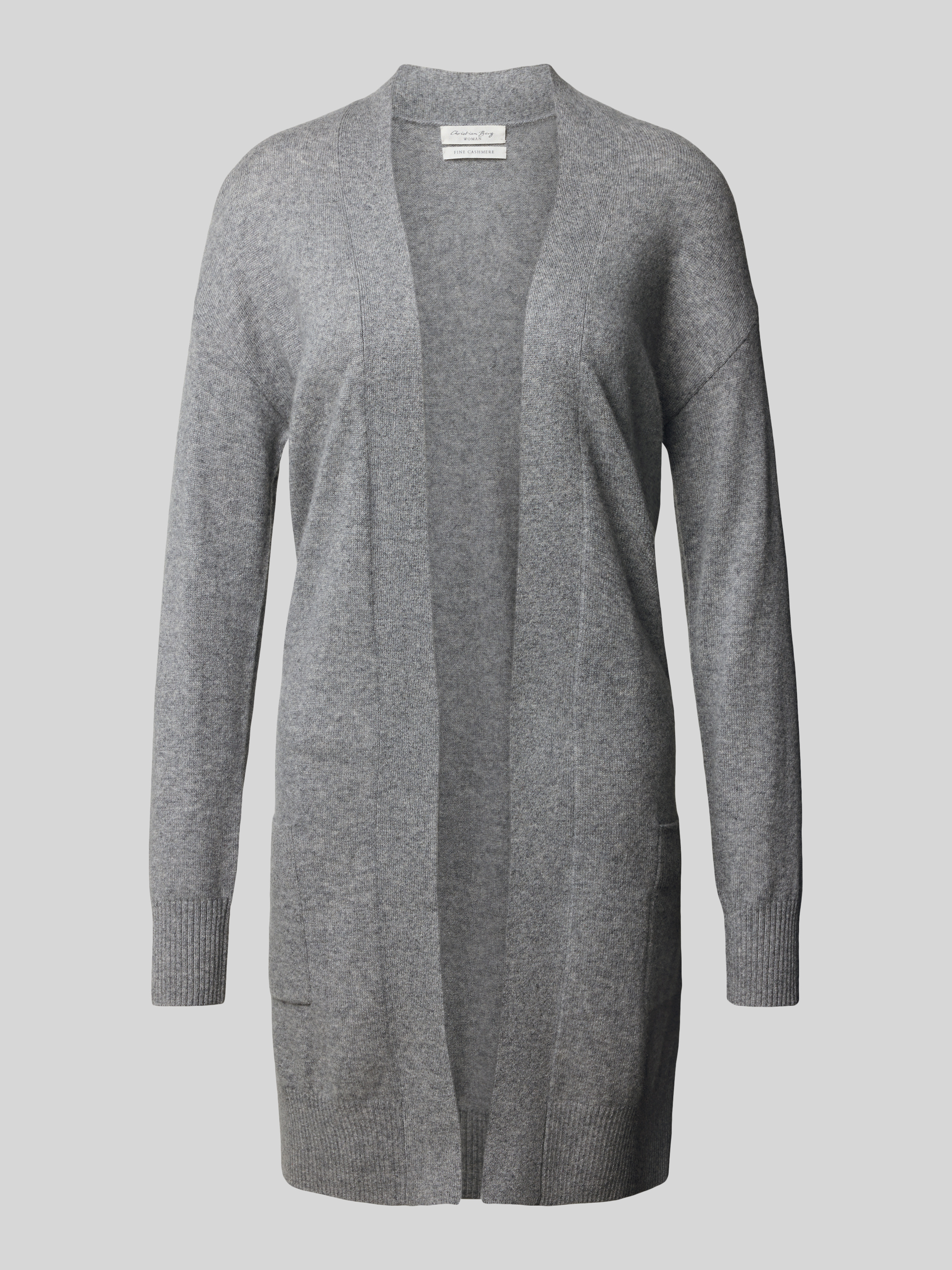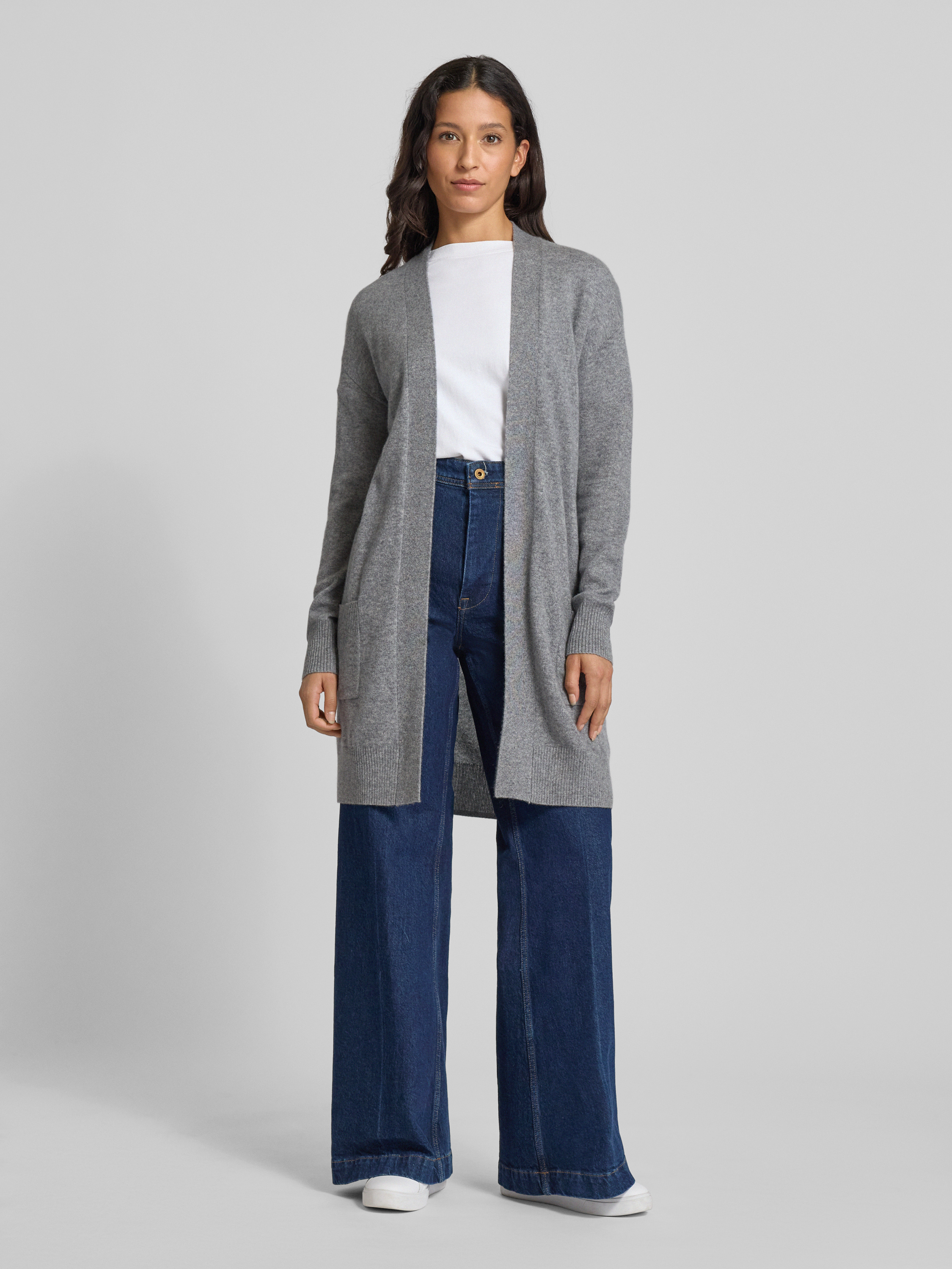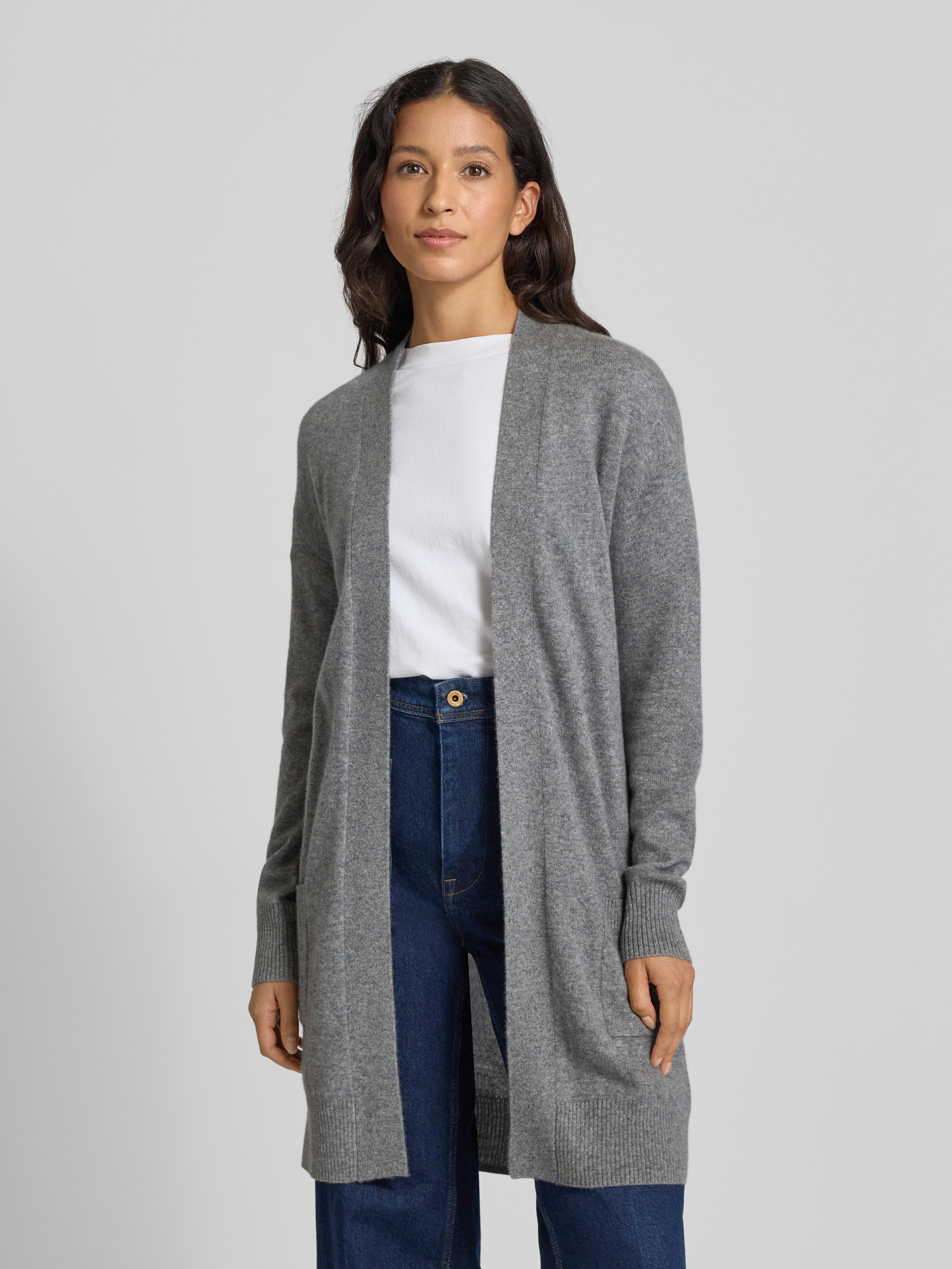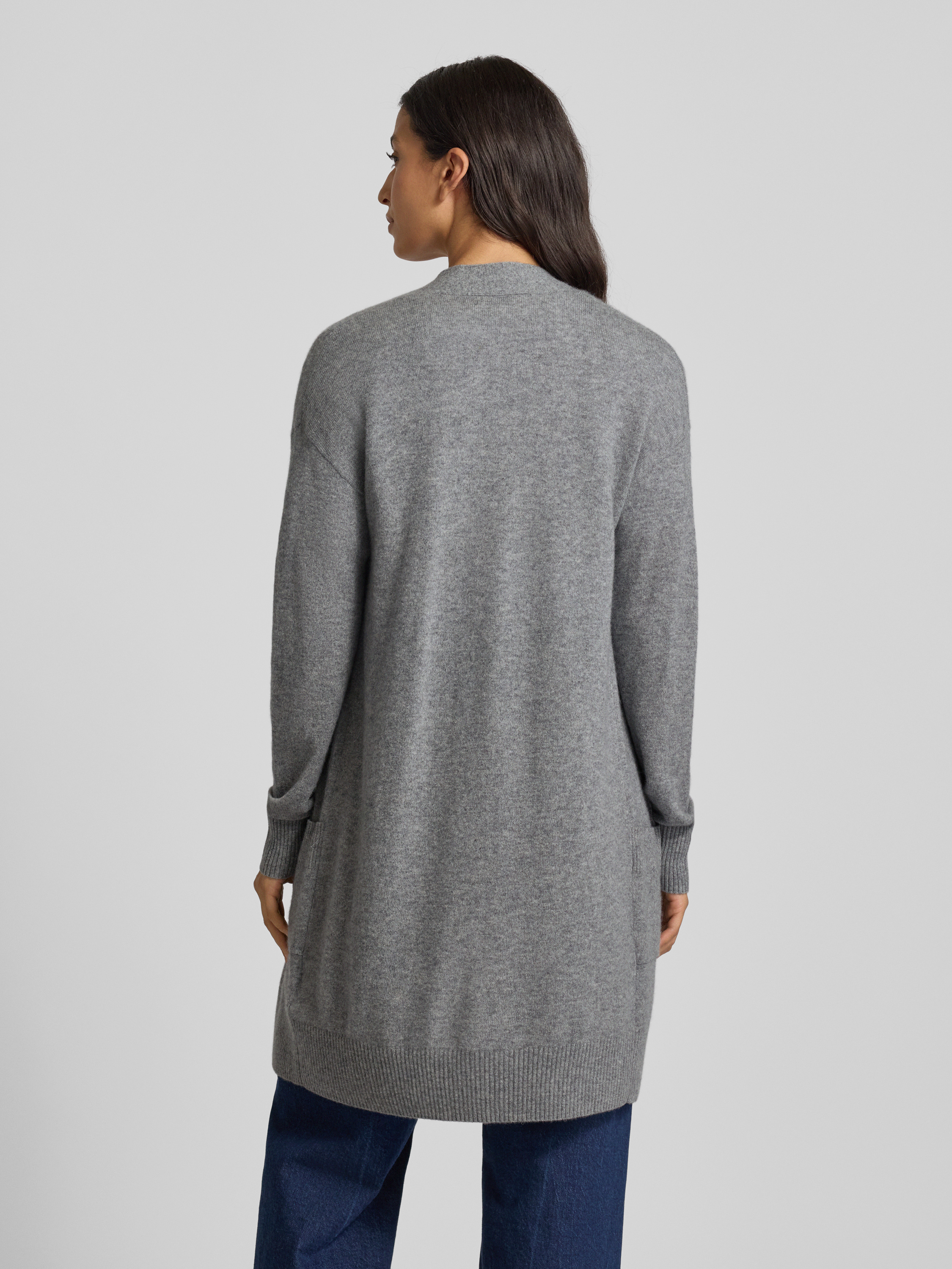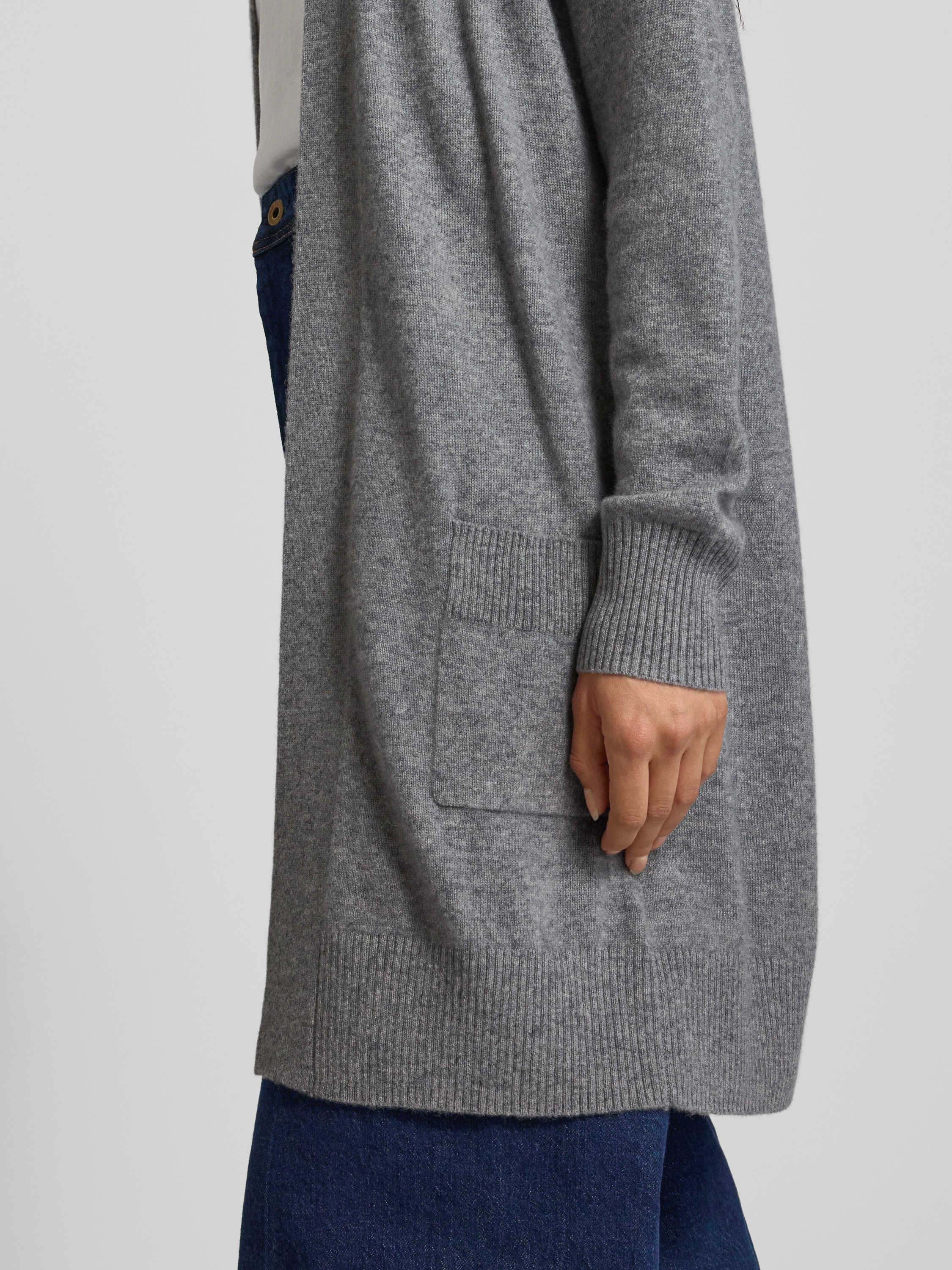 Gebreide lange jas van kasjmier met opgestikte zakken in grafiet gemêleerd