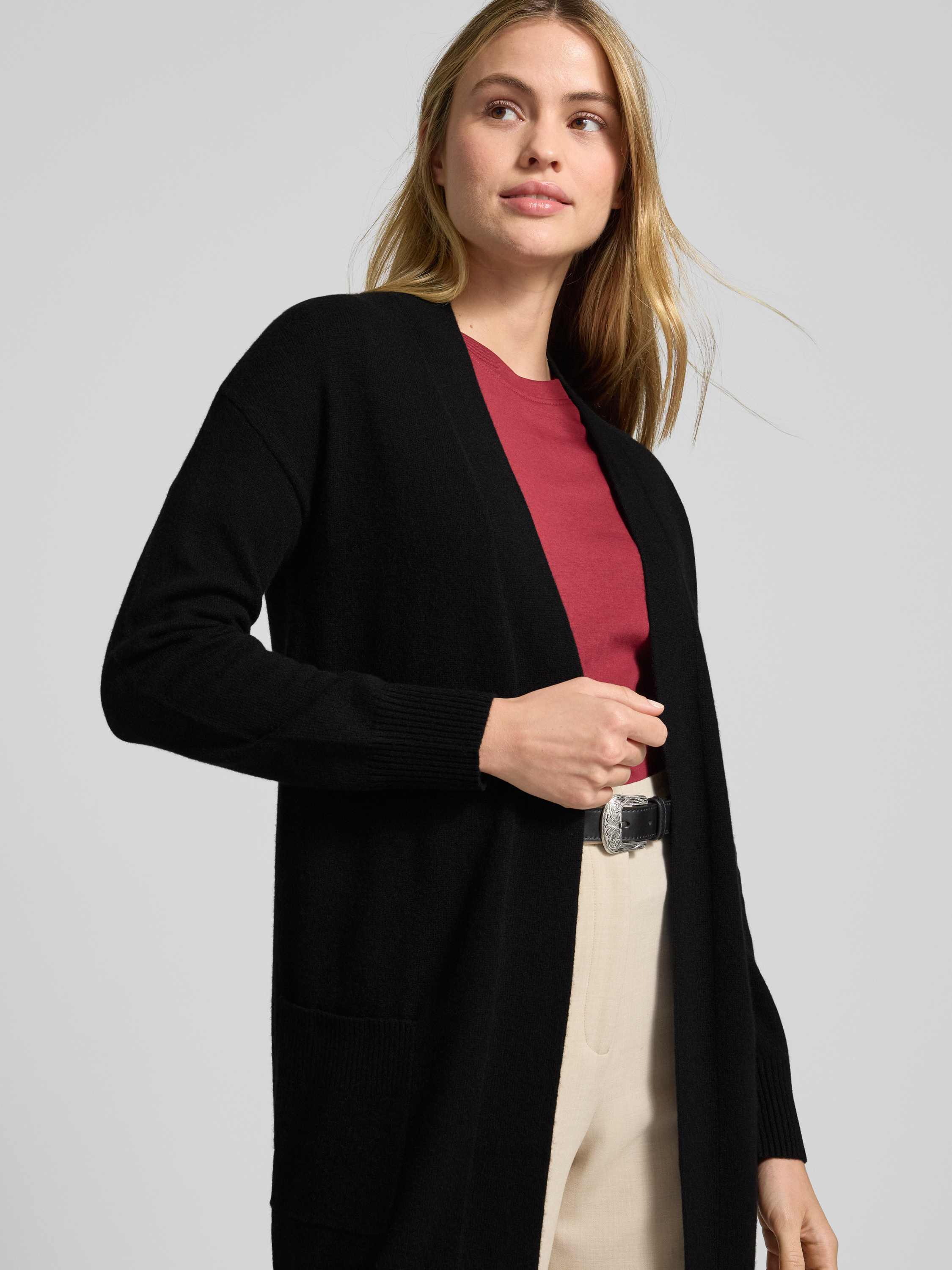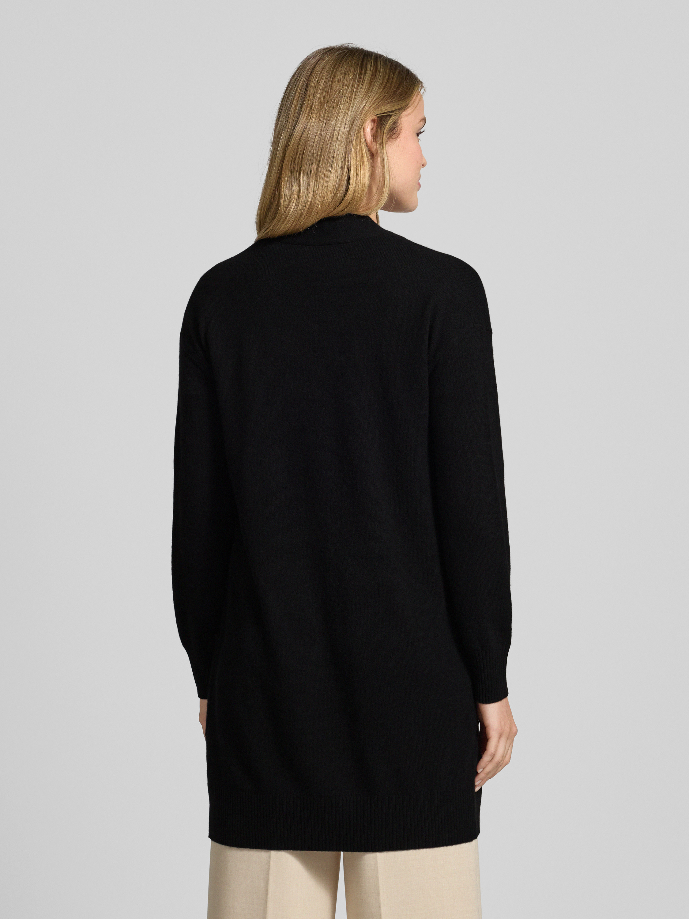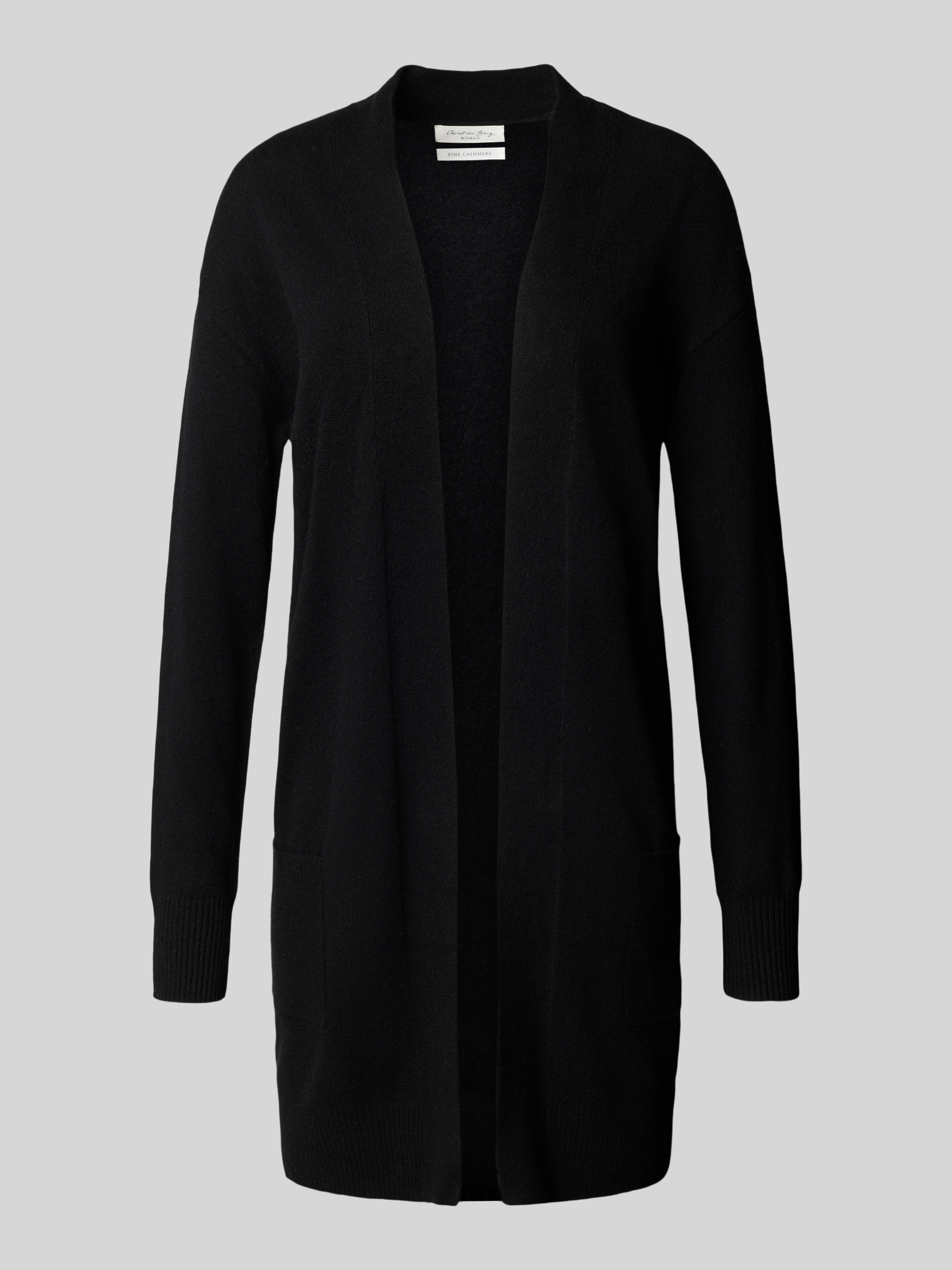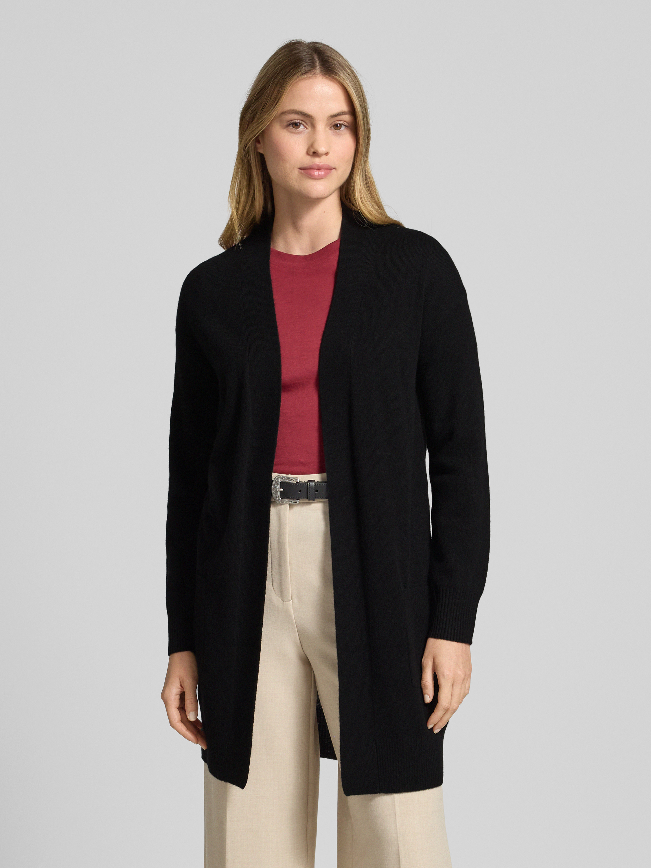 Gebreide lange jas van kasjmier met opgestikte zakken in zwart