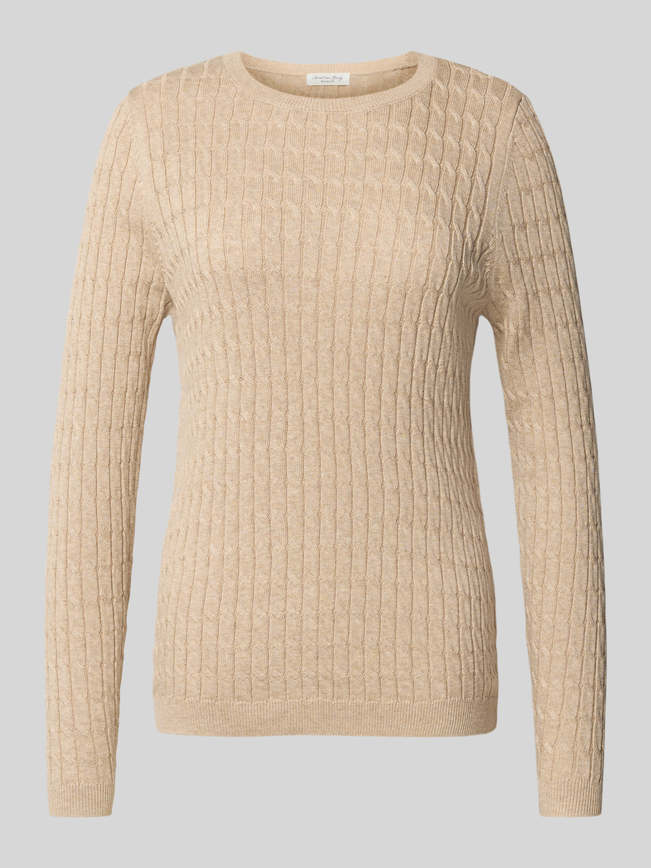 Gebreide pullover met kabelpatroon in zand gemêleerd