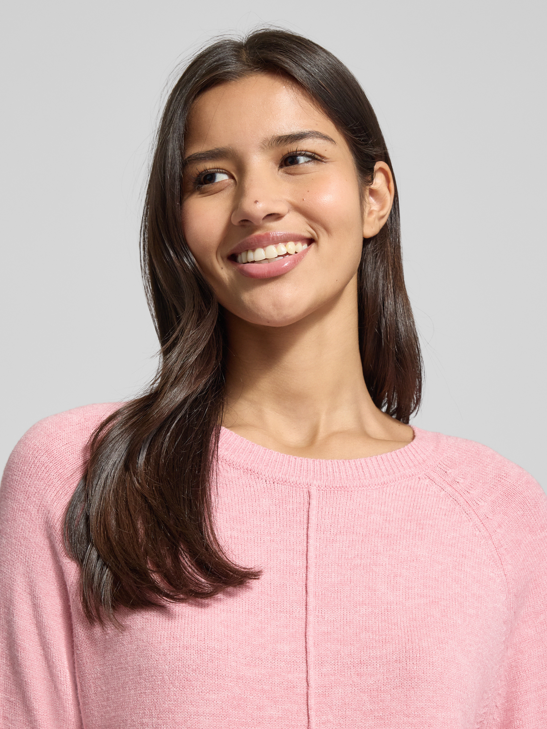 Gebreide pullover met ribboorden in oudroze gemêleerd