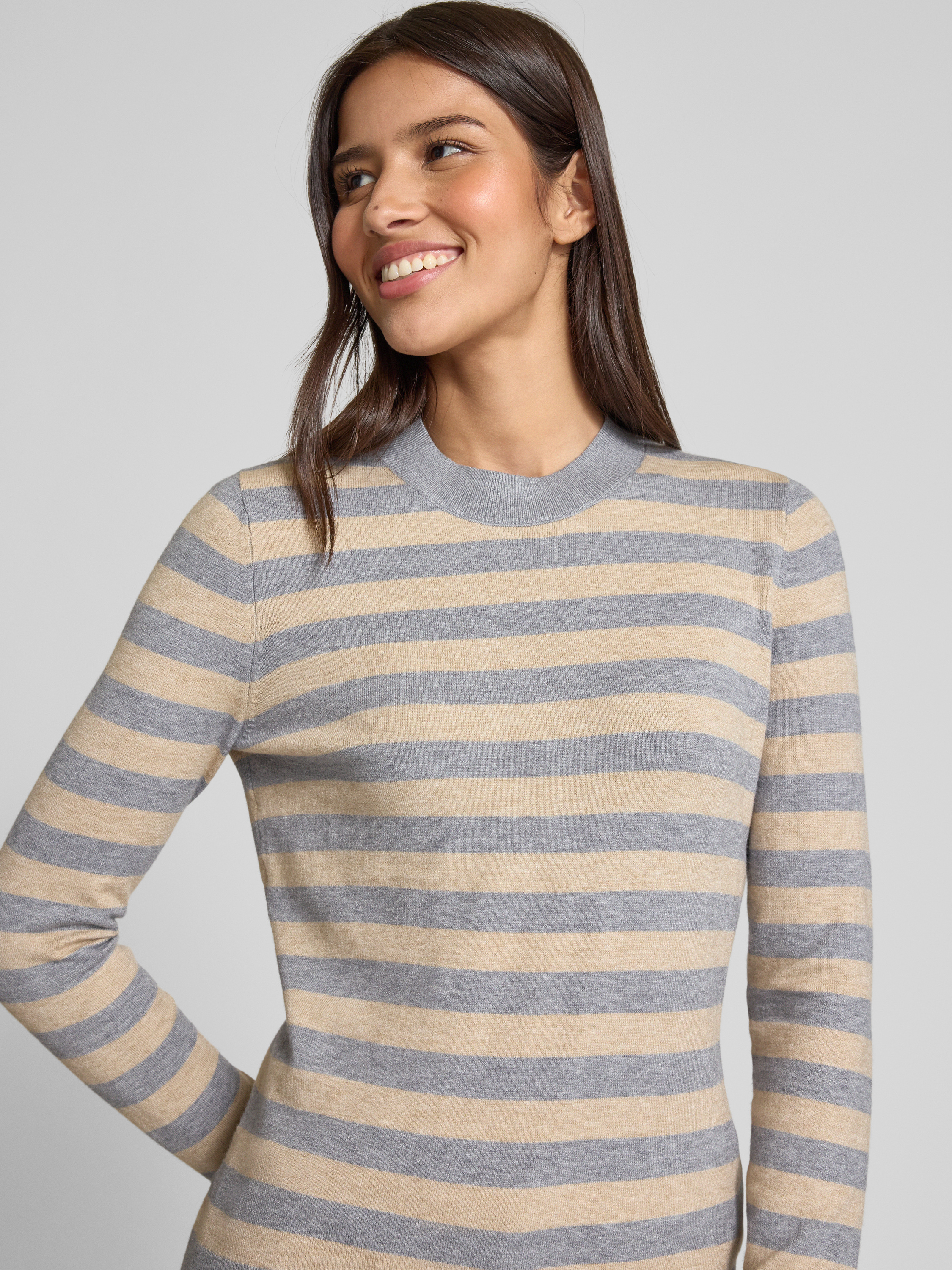 Gebreide pullover met ronde hals in middengrijs gemêleerd