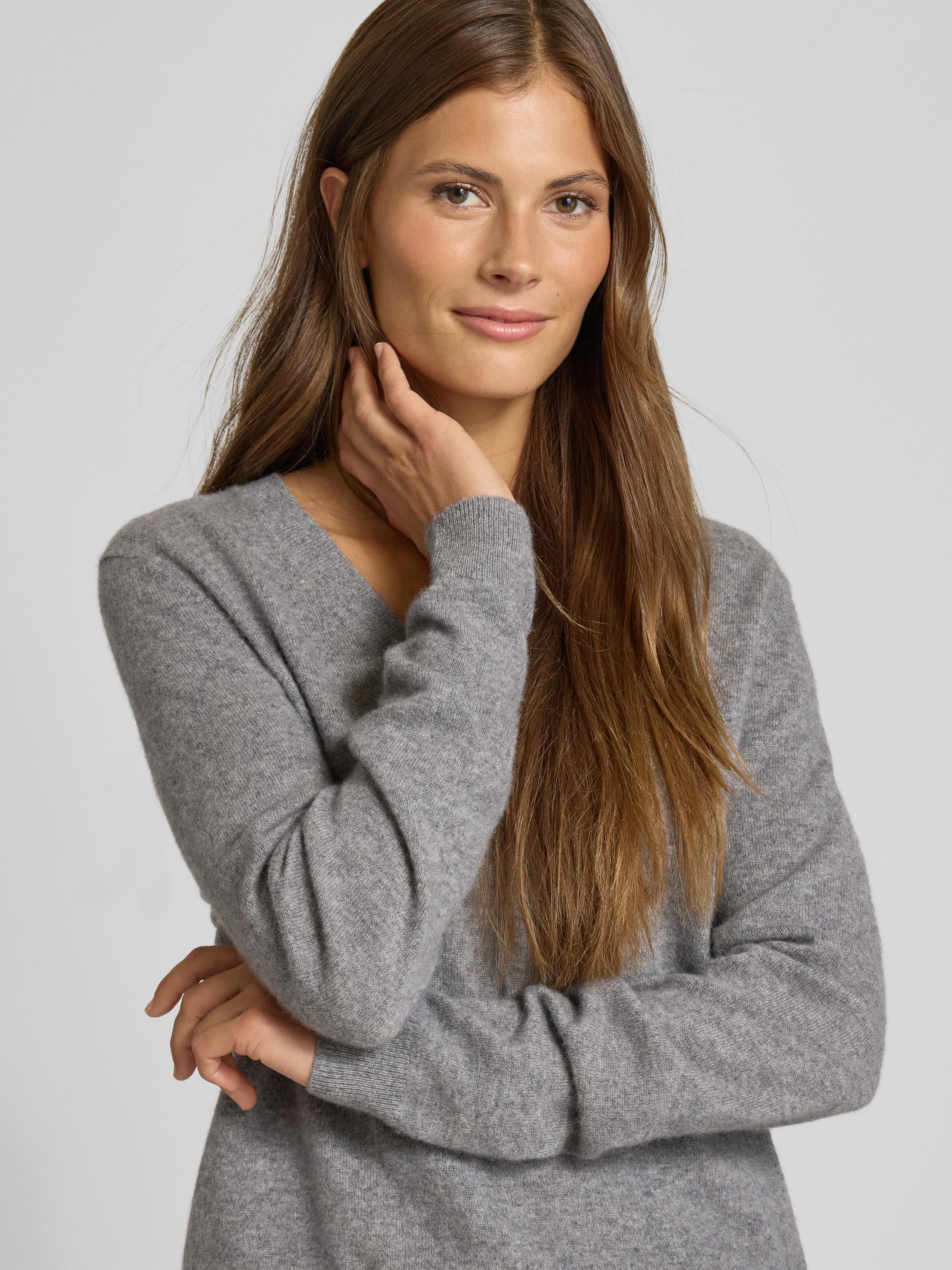 Gebreide pullover met V-hals in grafiet gemêleerd