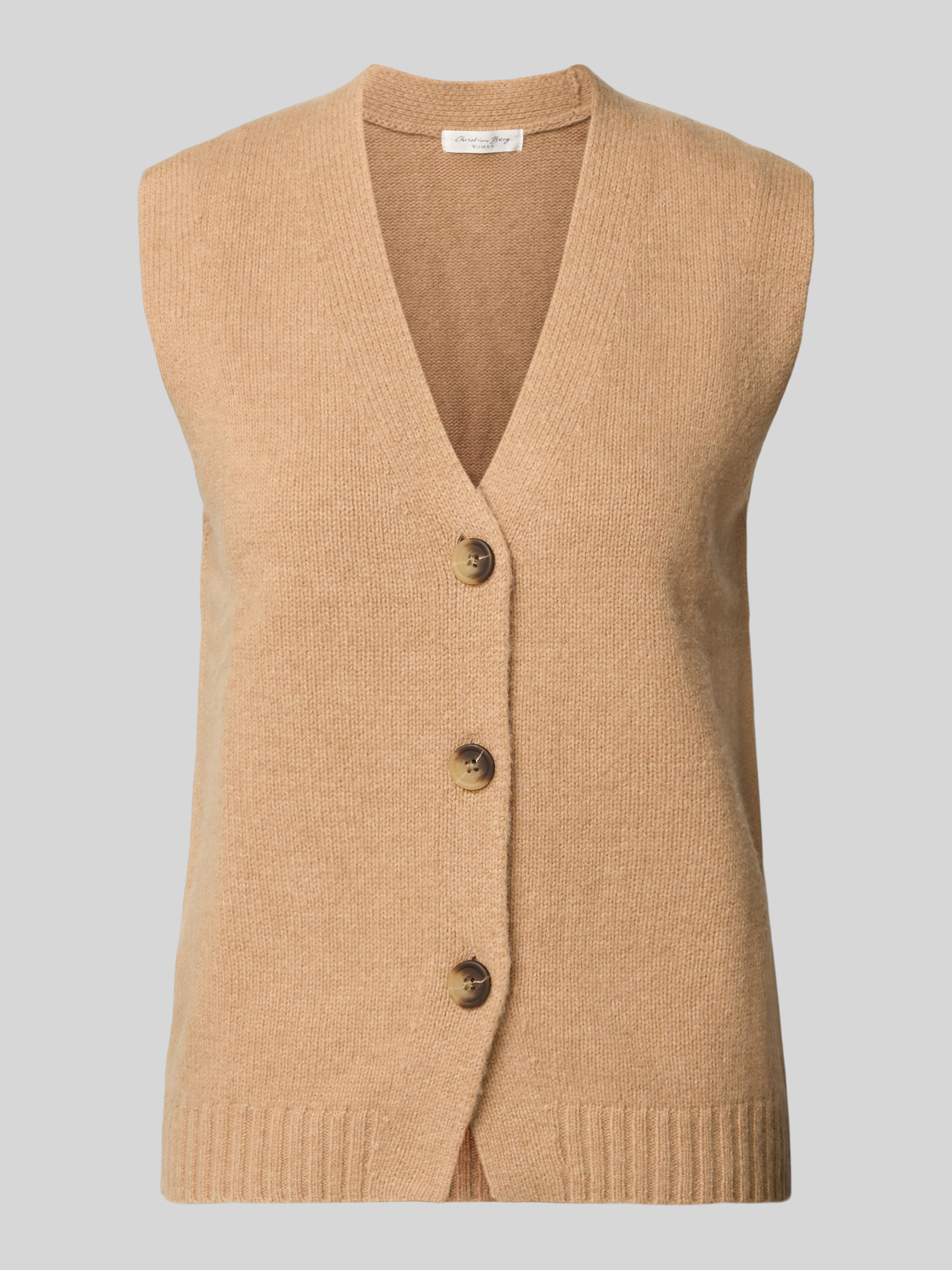 Christian Berg WomanMouwloos vest van wol met V-hals in camel
