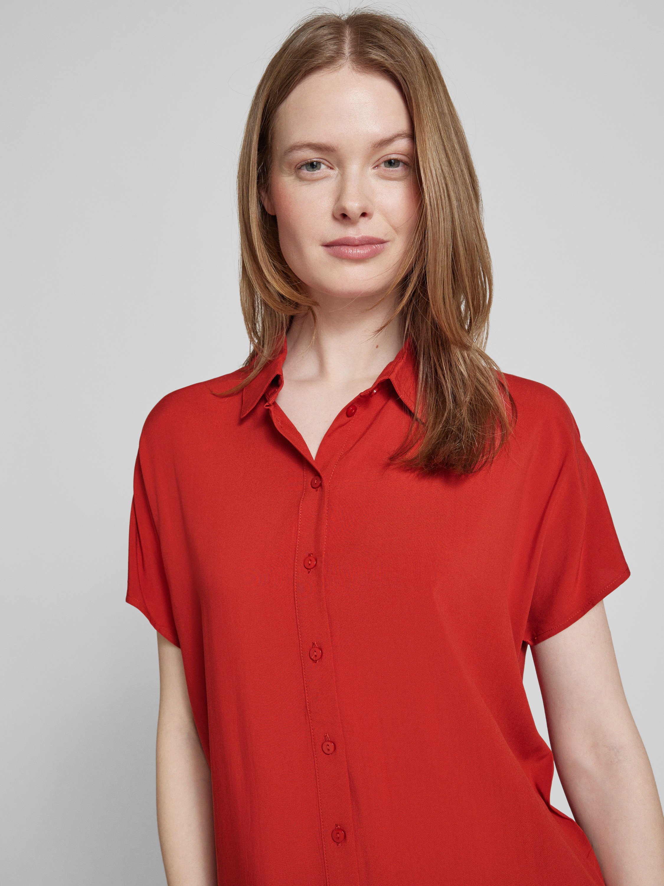 Regular fit overhemdblouse met kapmouwen in donkerrood