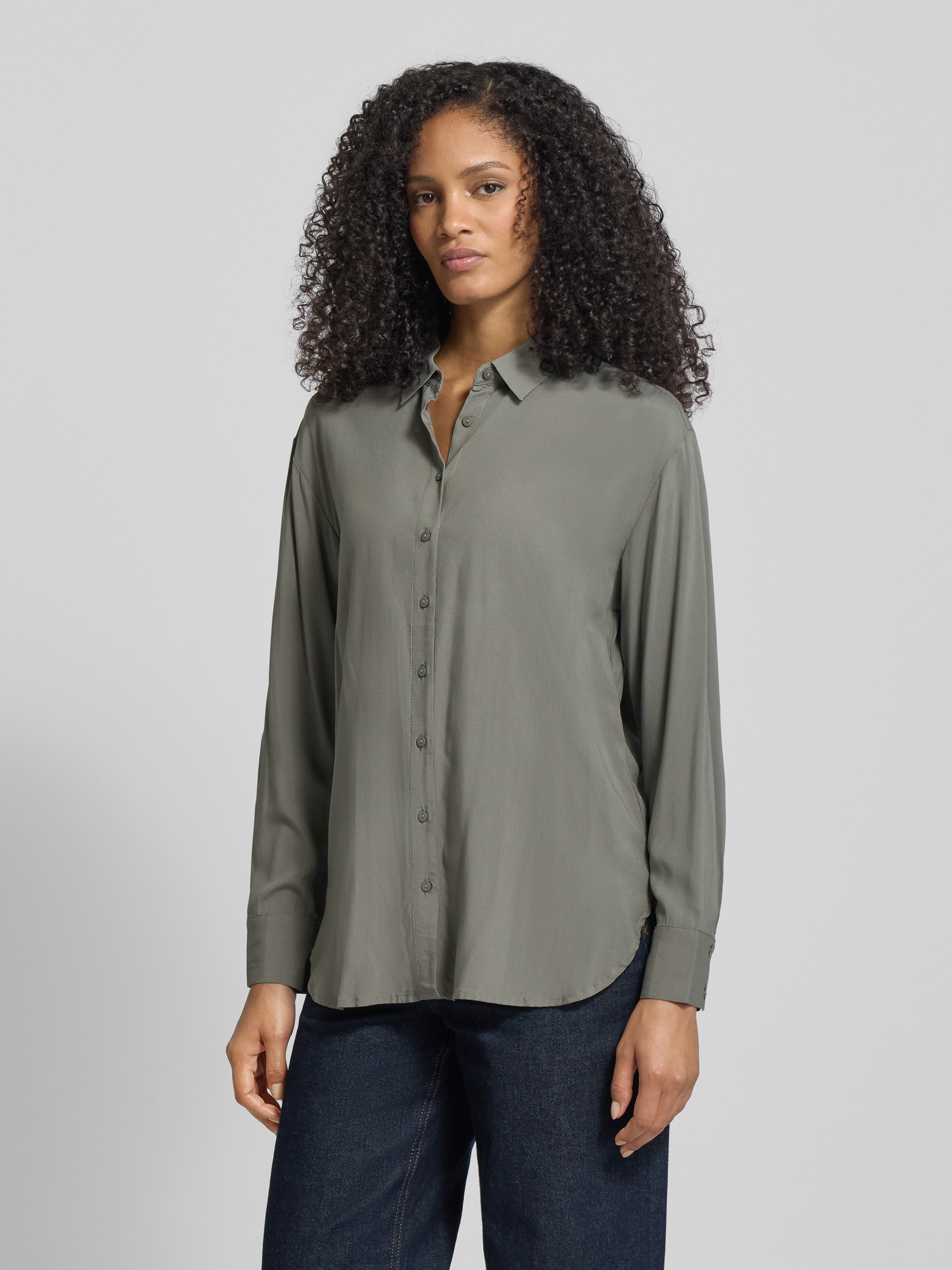 Regular fit overhemdblouse met knoopsluiting in olijfgroen