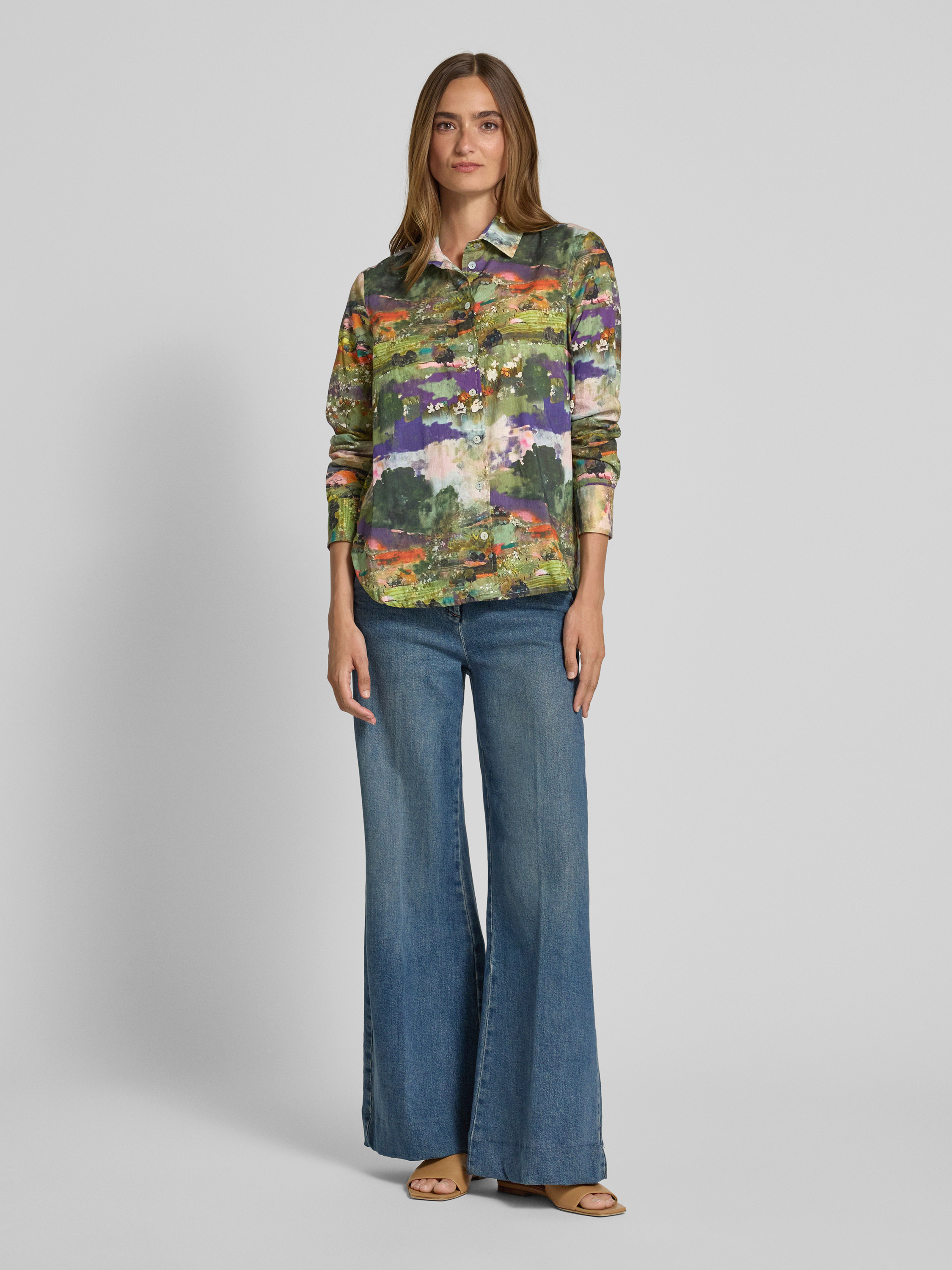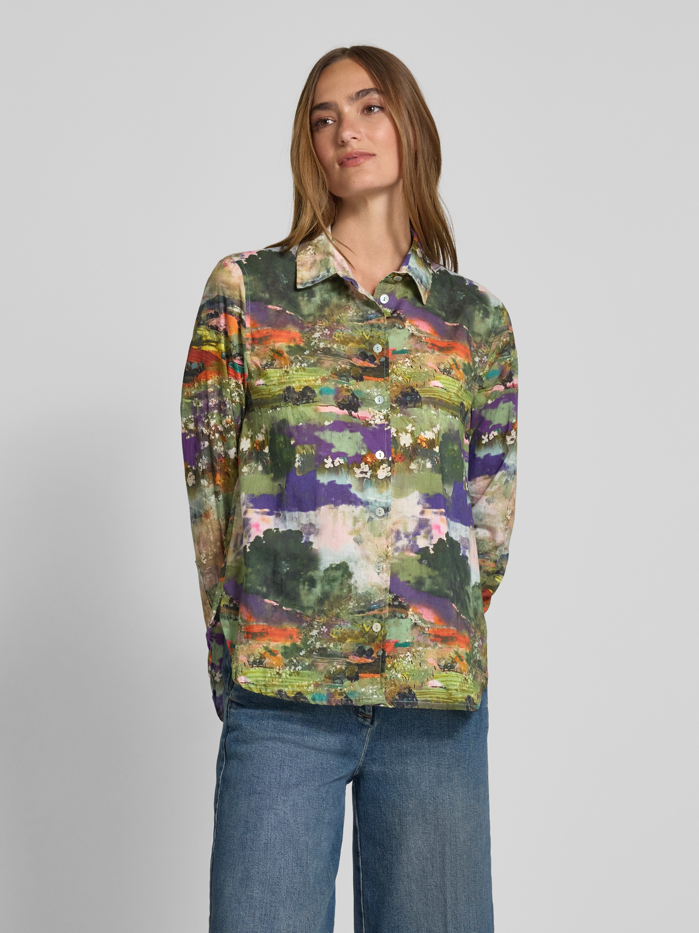 Regular fit overhemdblouse van puur katoen met afgeronde zoom in paars