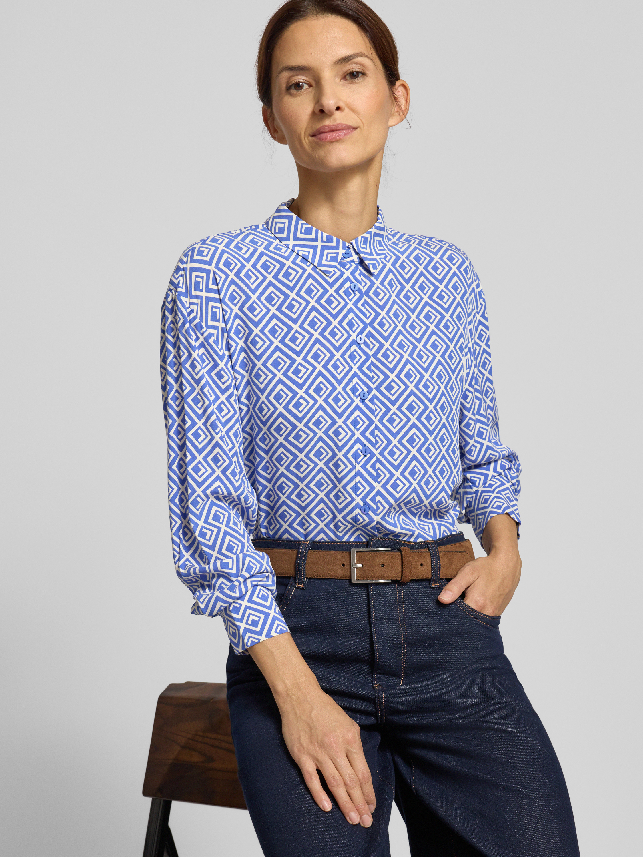 Regular fit overhemdblouse van viscose met grafisch motief in koningsblauw