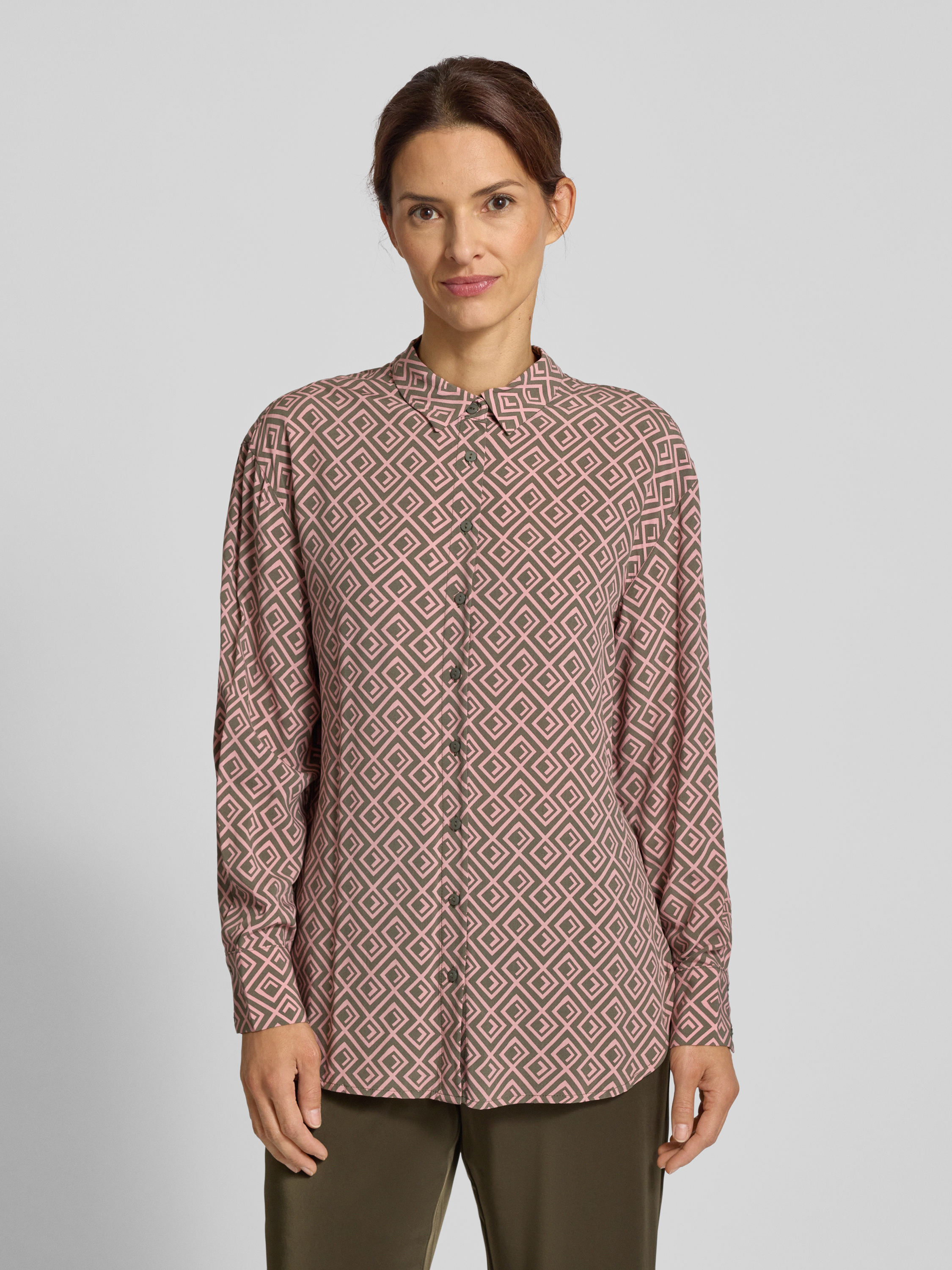 Regular fit overhemdblouse van viscose met grafisch motief in oudroze