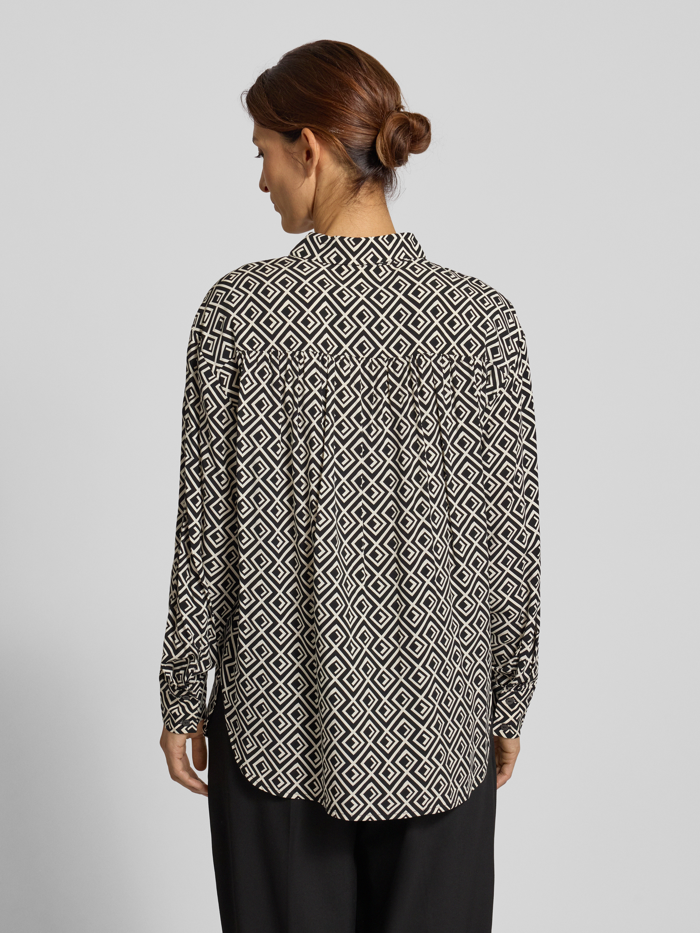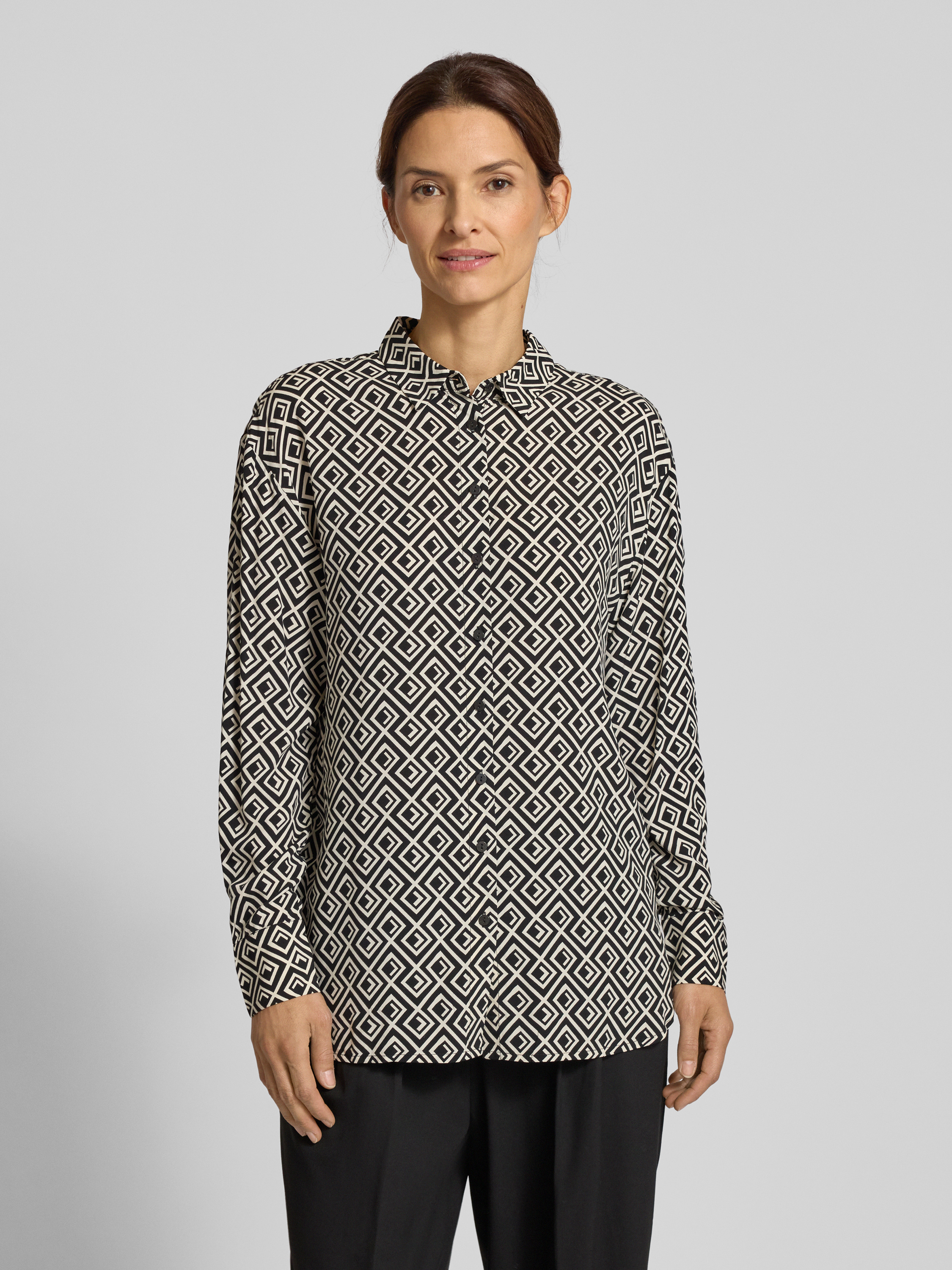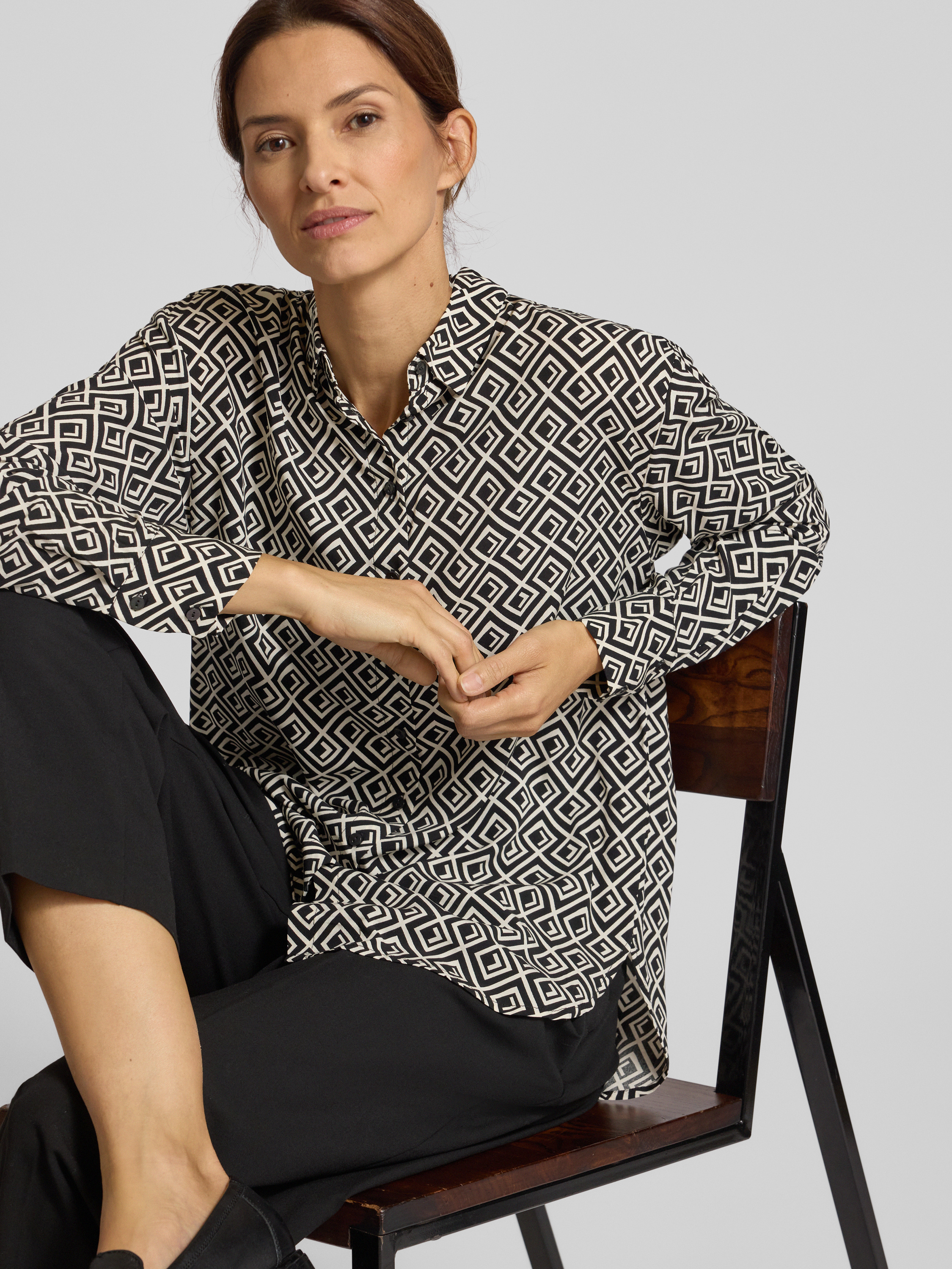 Regular fit overhemdblouse van viscose met grafisch motief in zwart