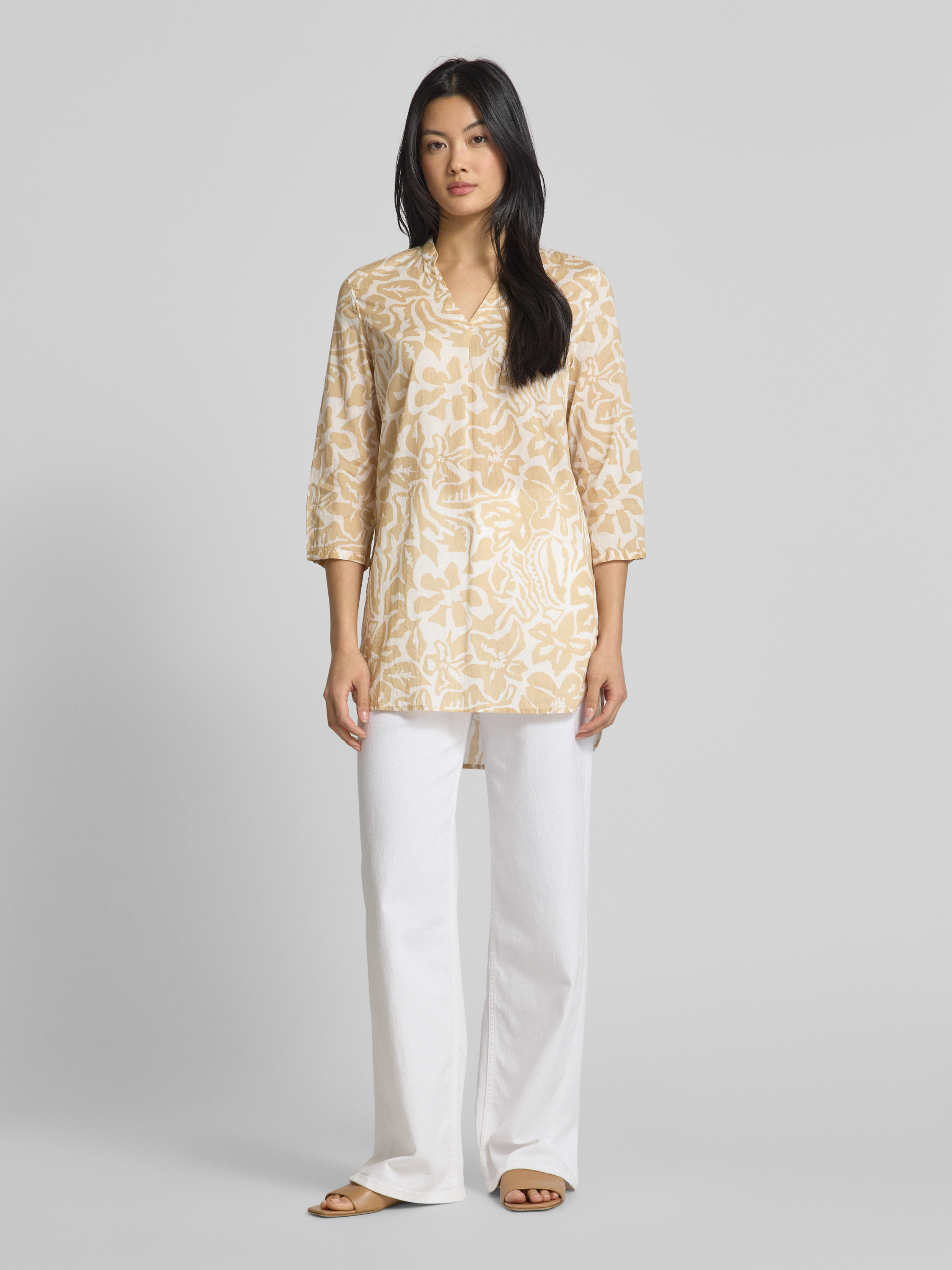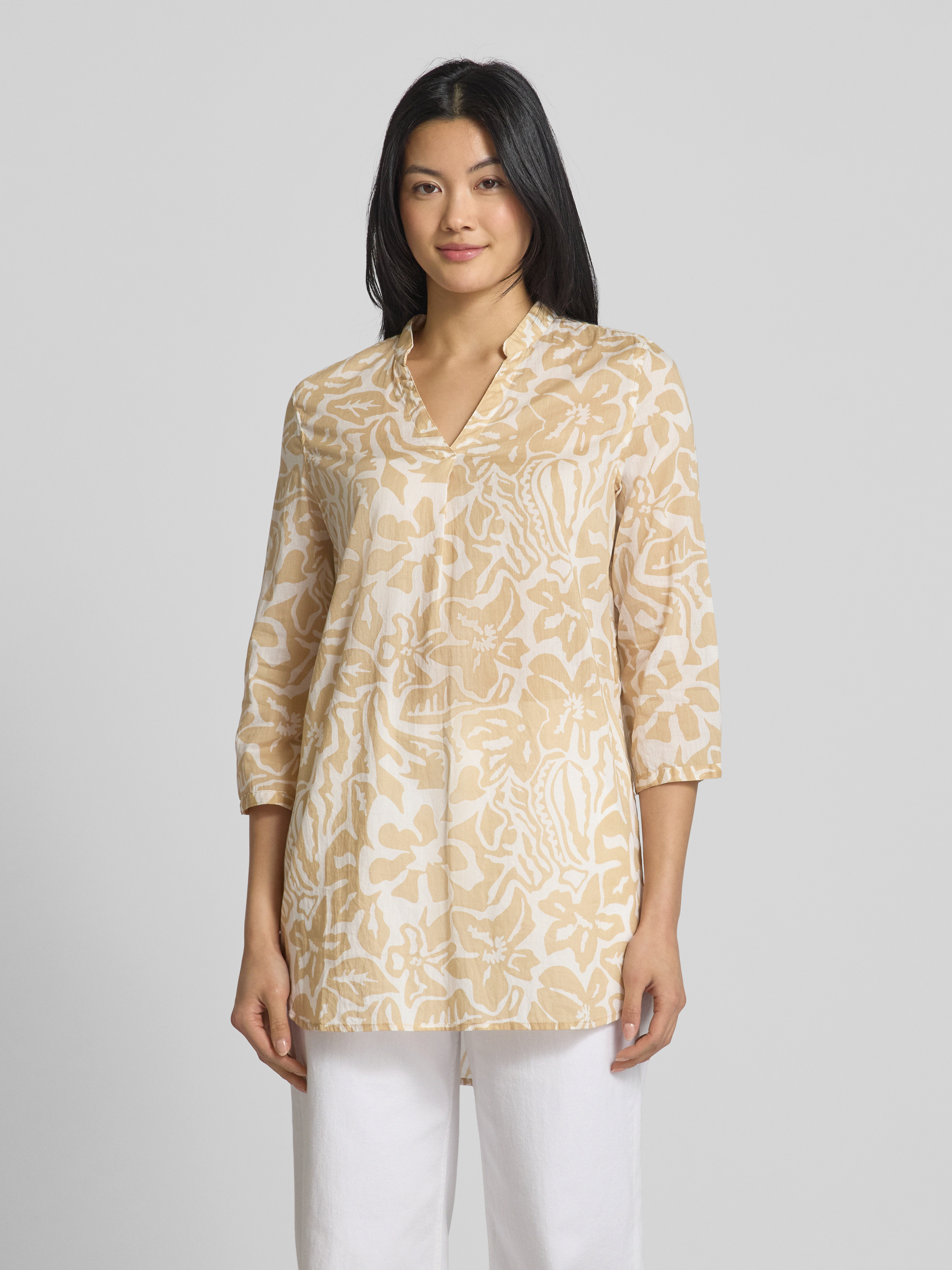 Regular fit tuniek met 3/4-mouwen in middenbruin
