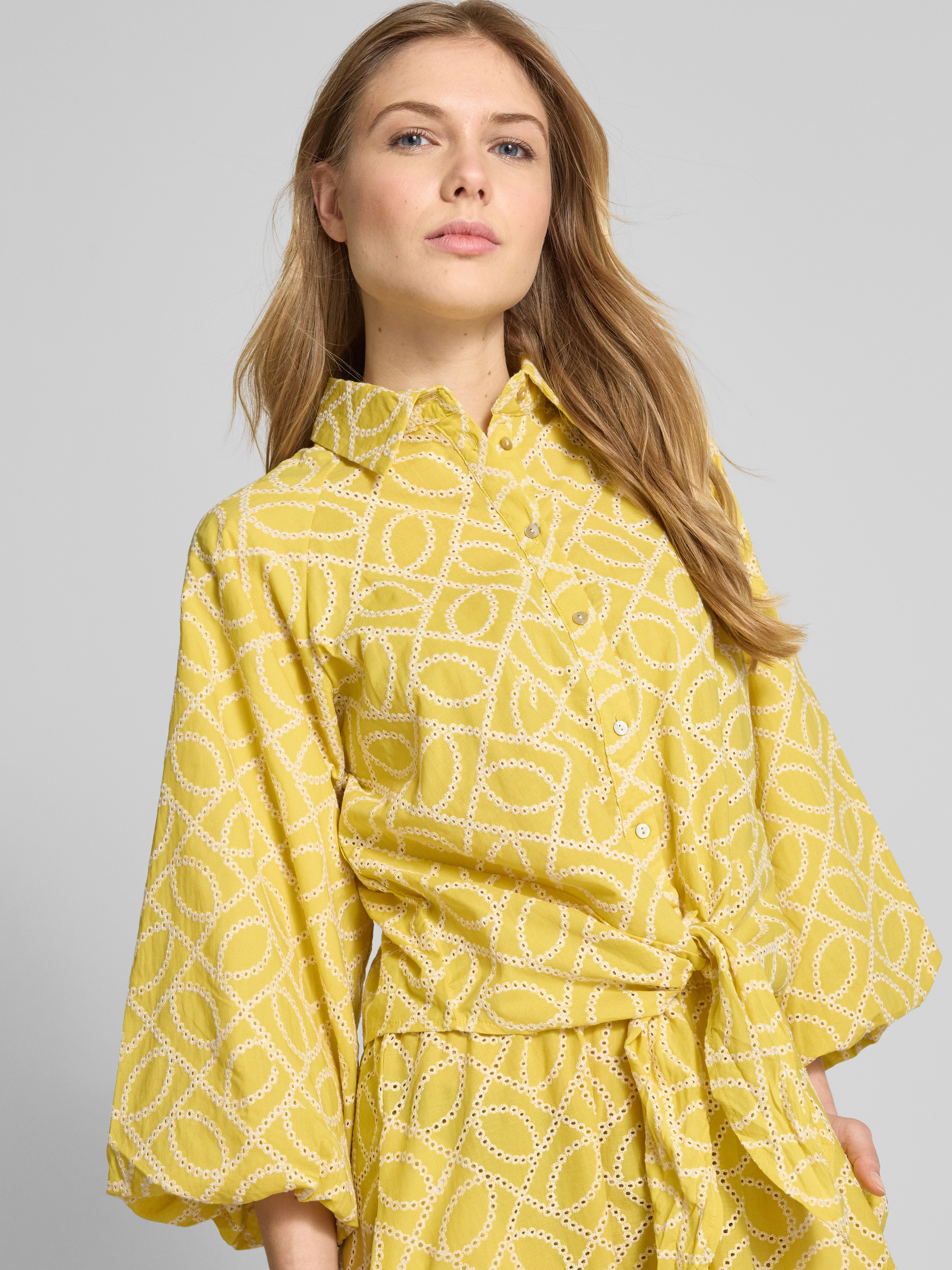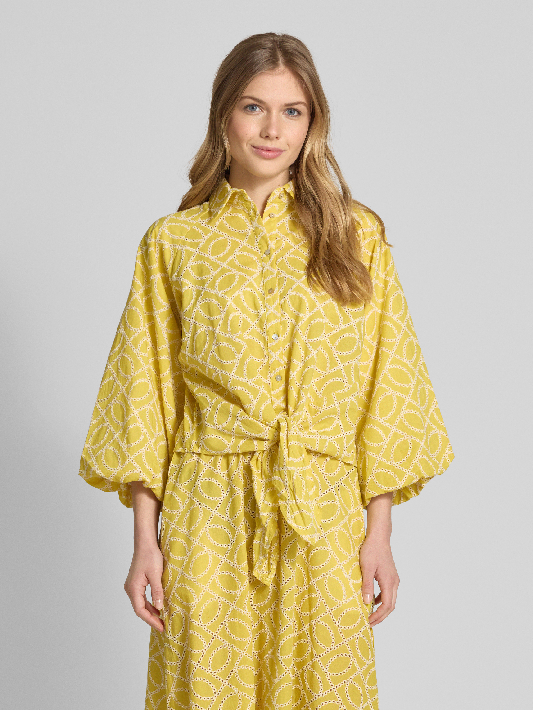 Relaxed fit blouse met 3/4-mouwen in mosterdgeel