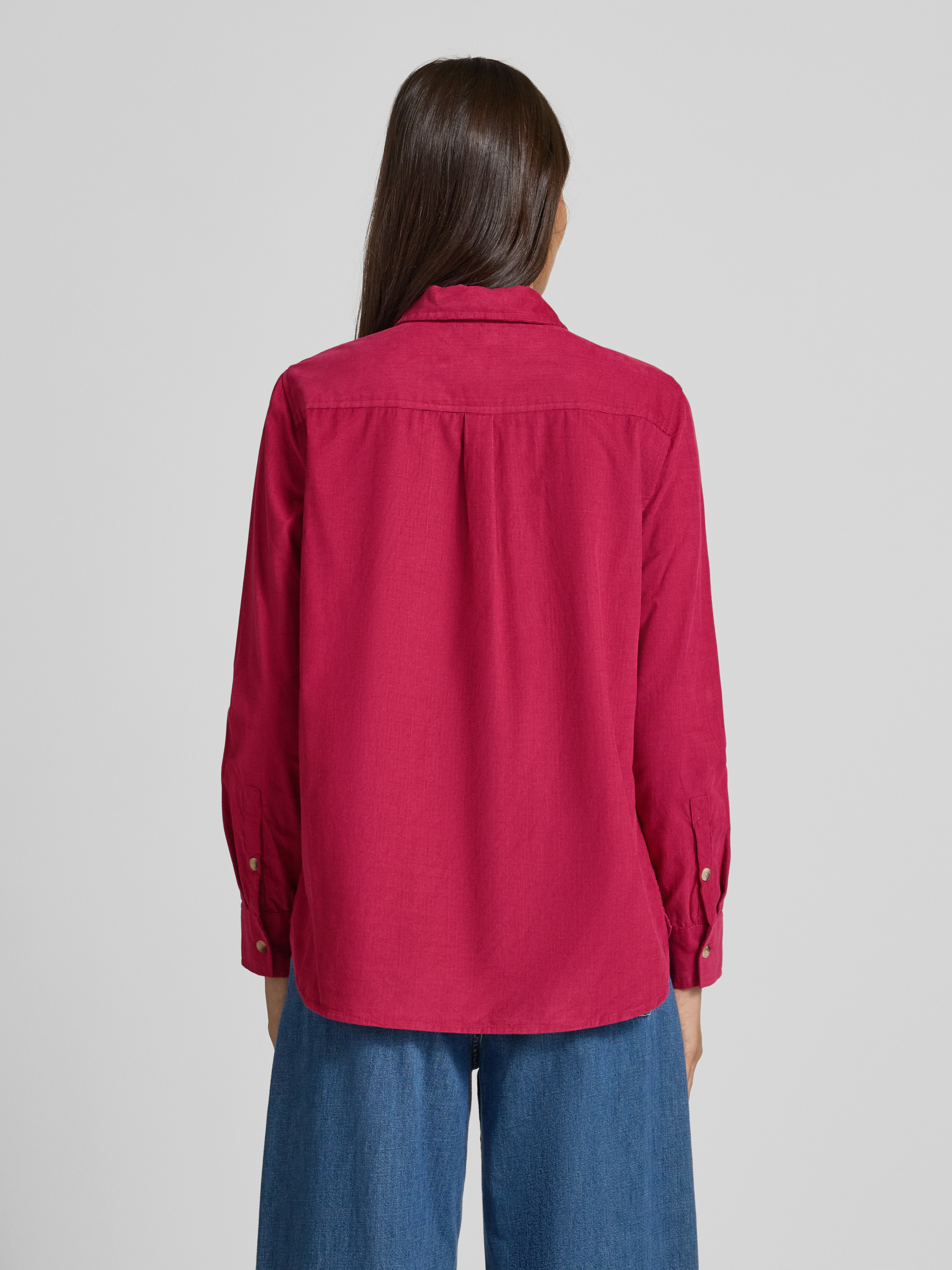 Relaxed fit overhemdblouse in ribcordlook met borstzak in fuchsia