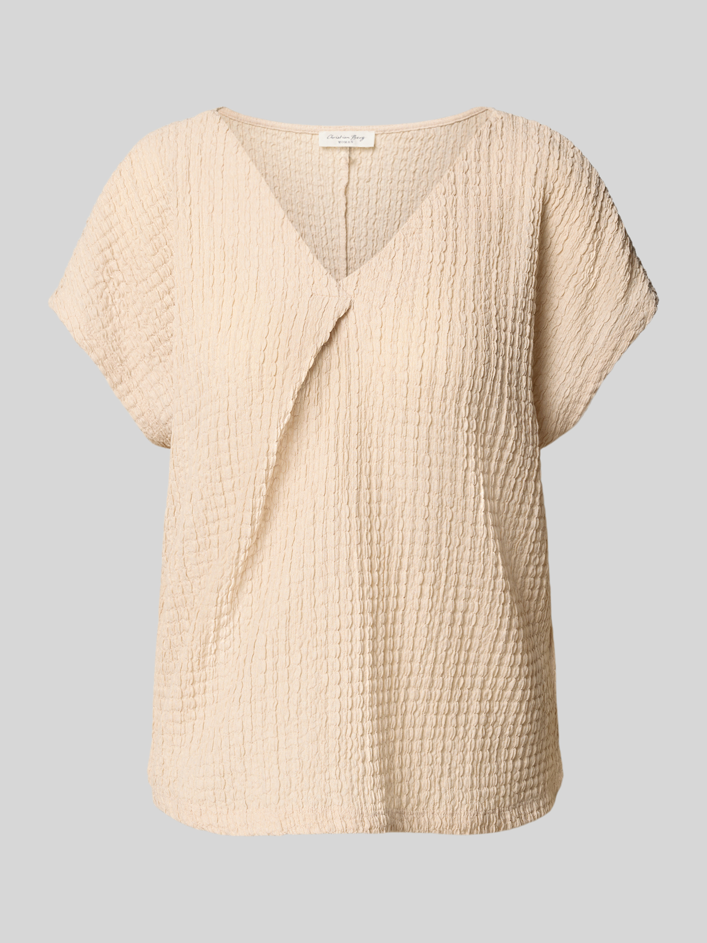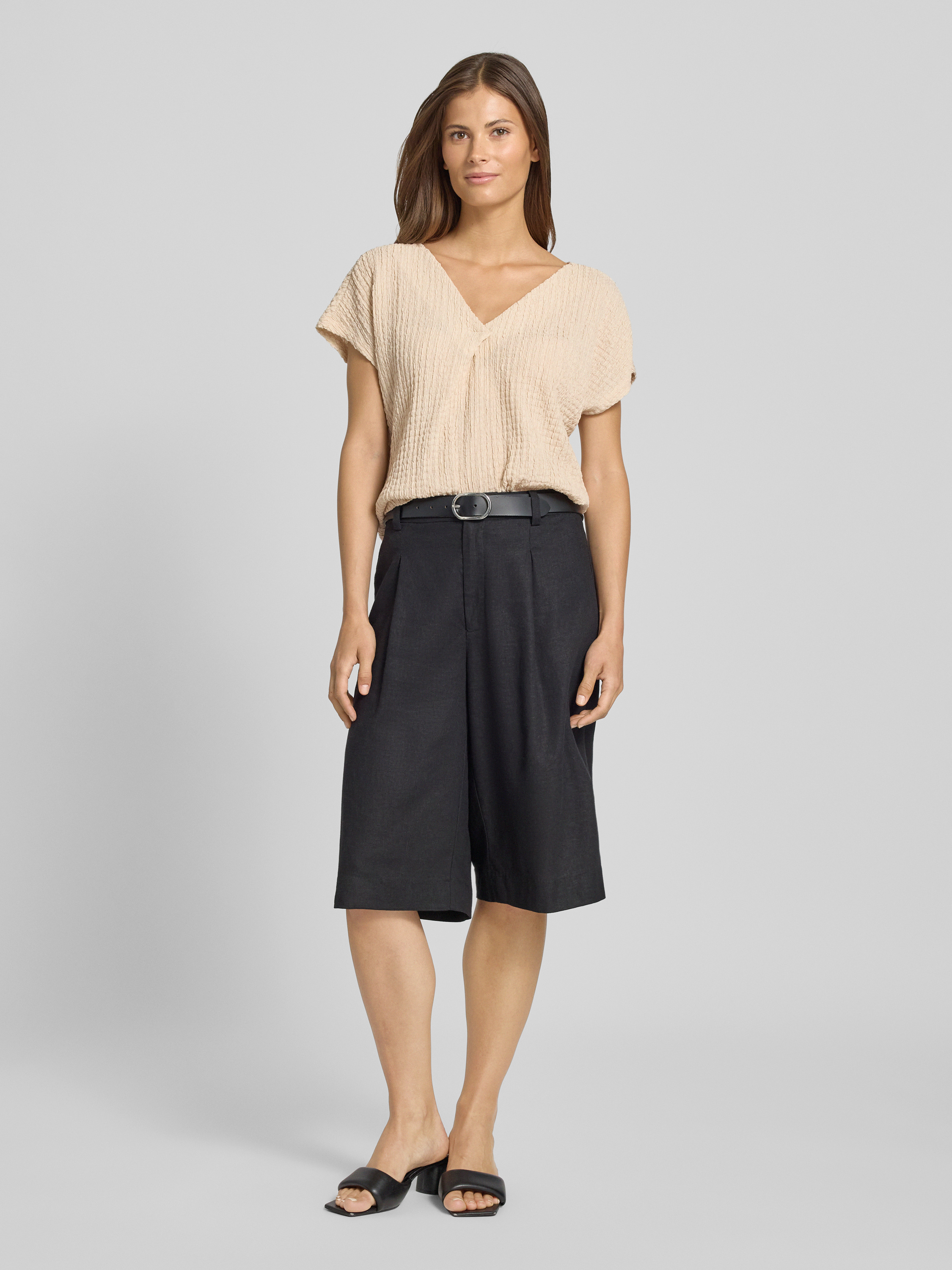 Relaxed fit T-shirt met V-hals en sierplooi in zand
