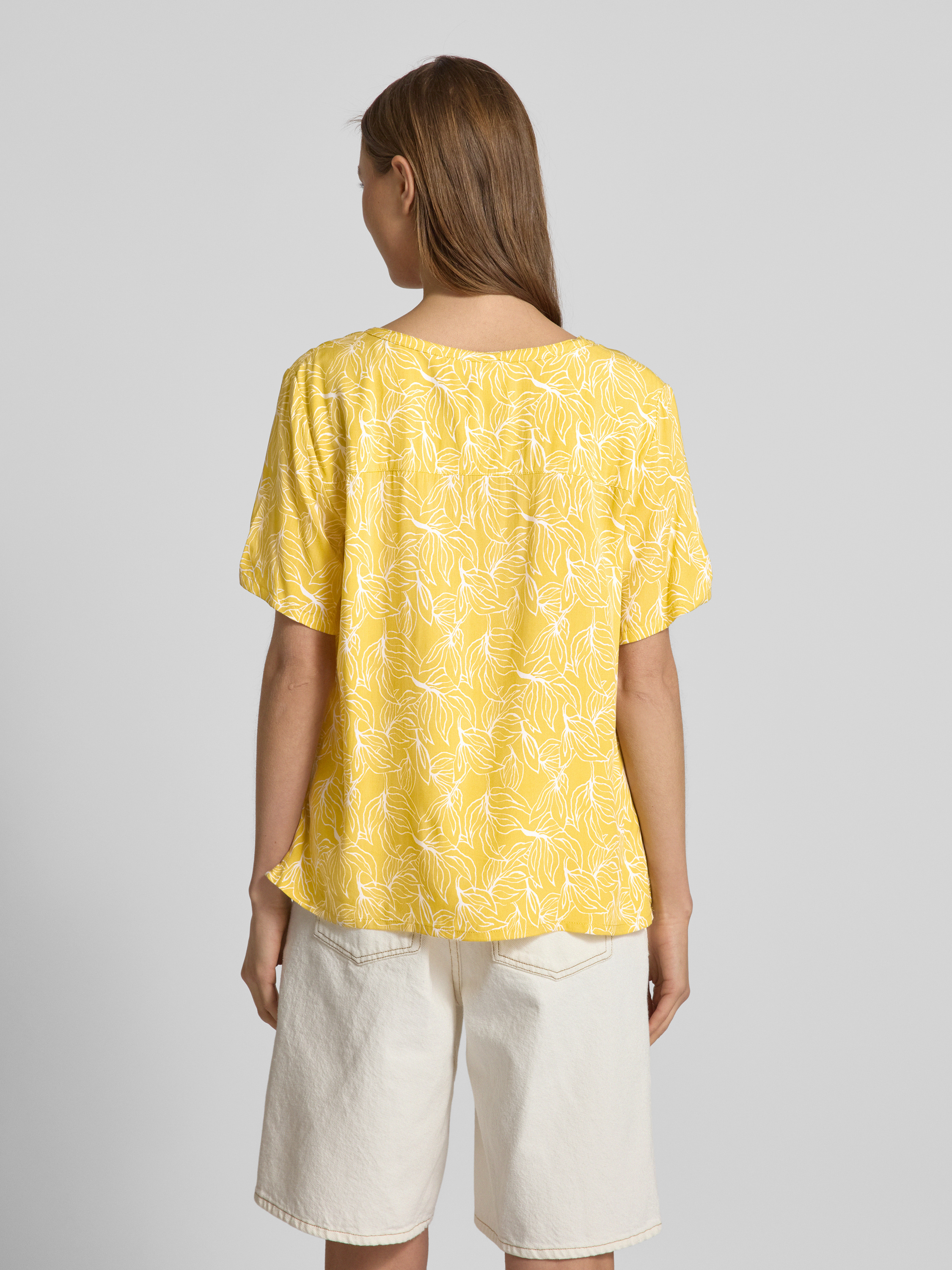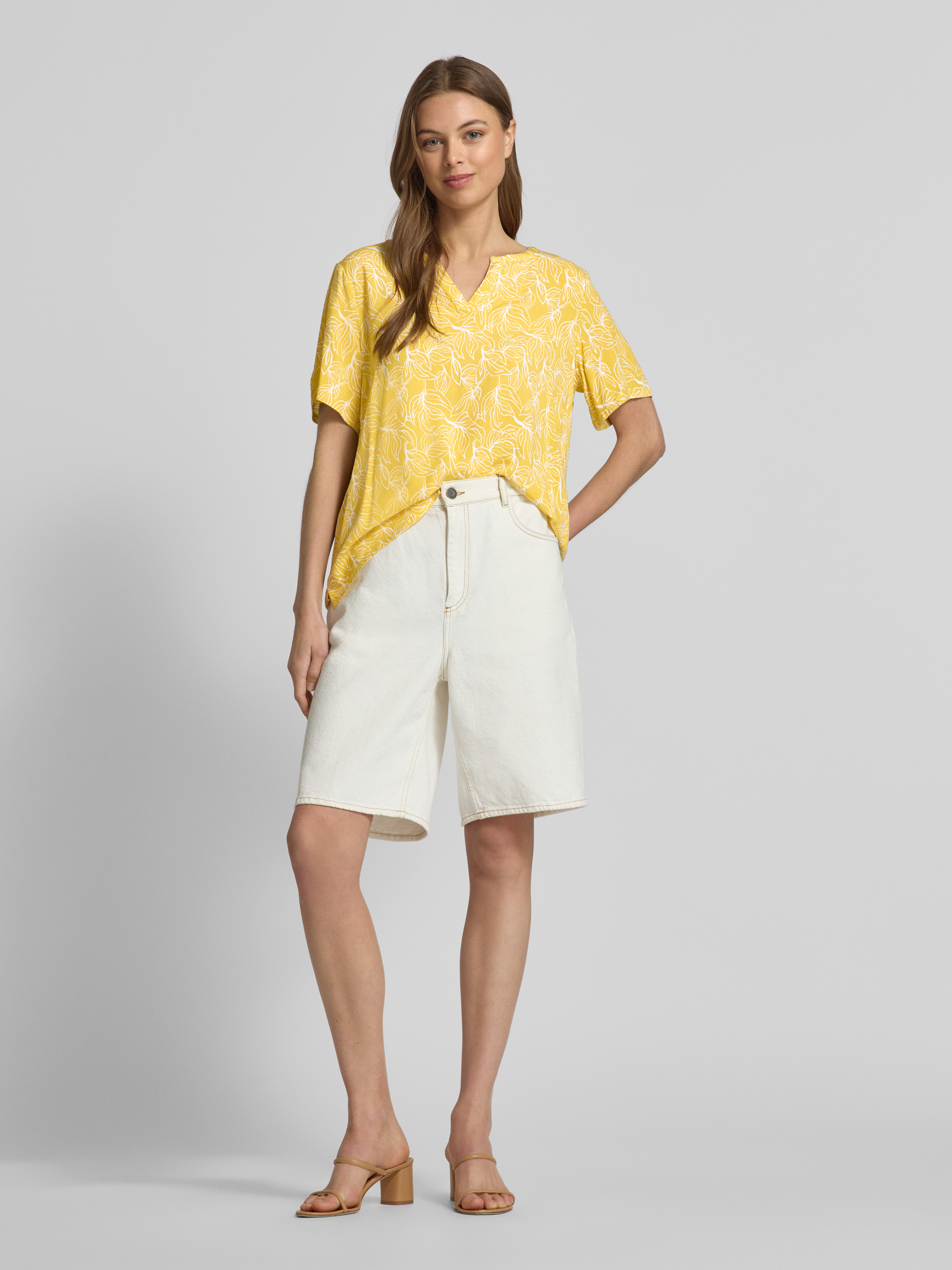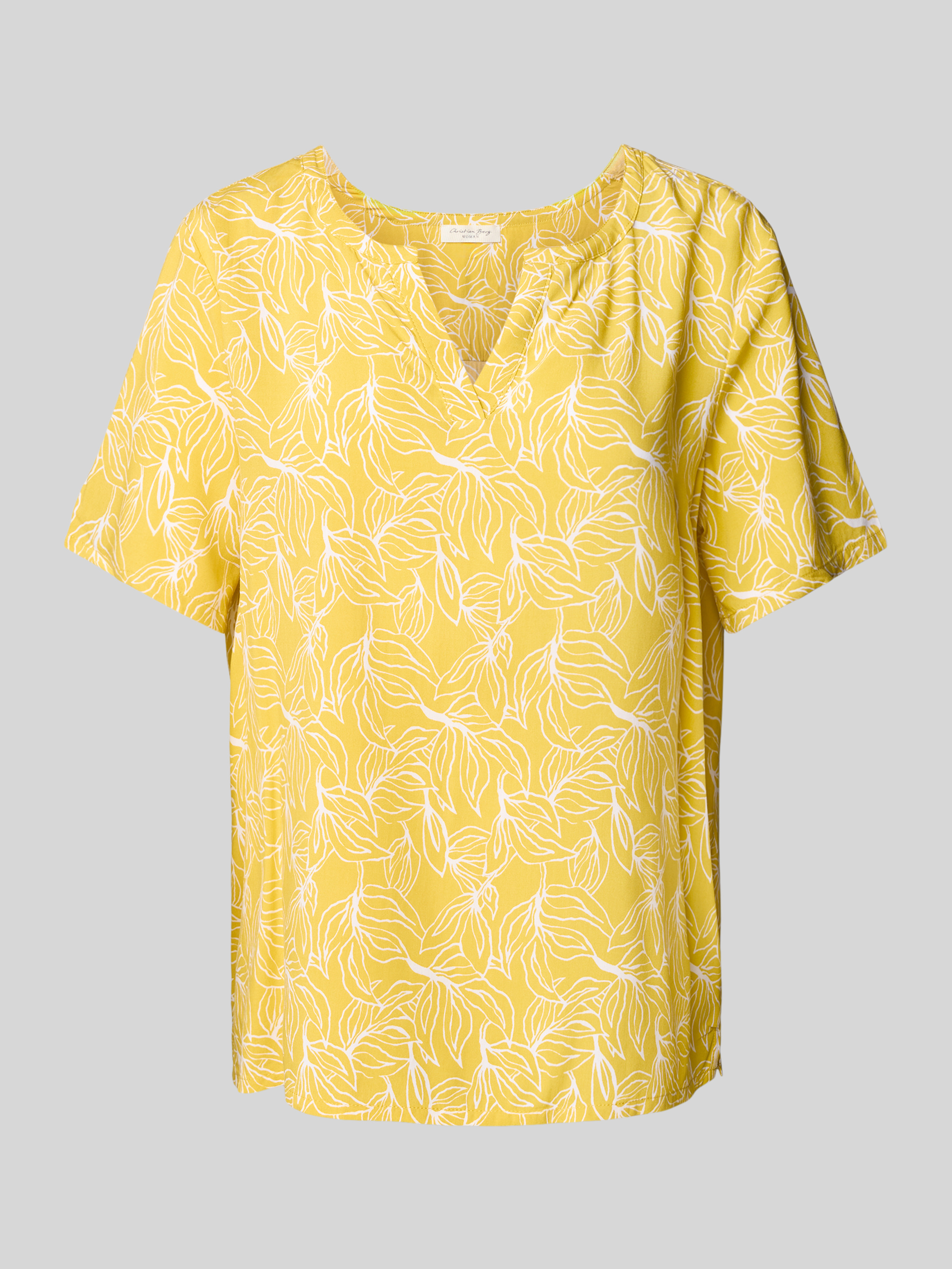 Slim fit blouseshirt met tuniekkraag in mosterdgeel