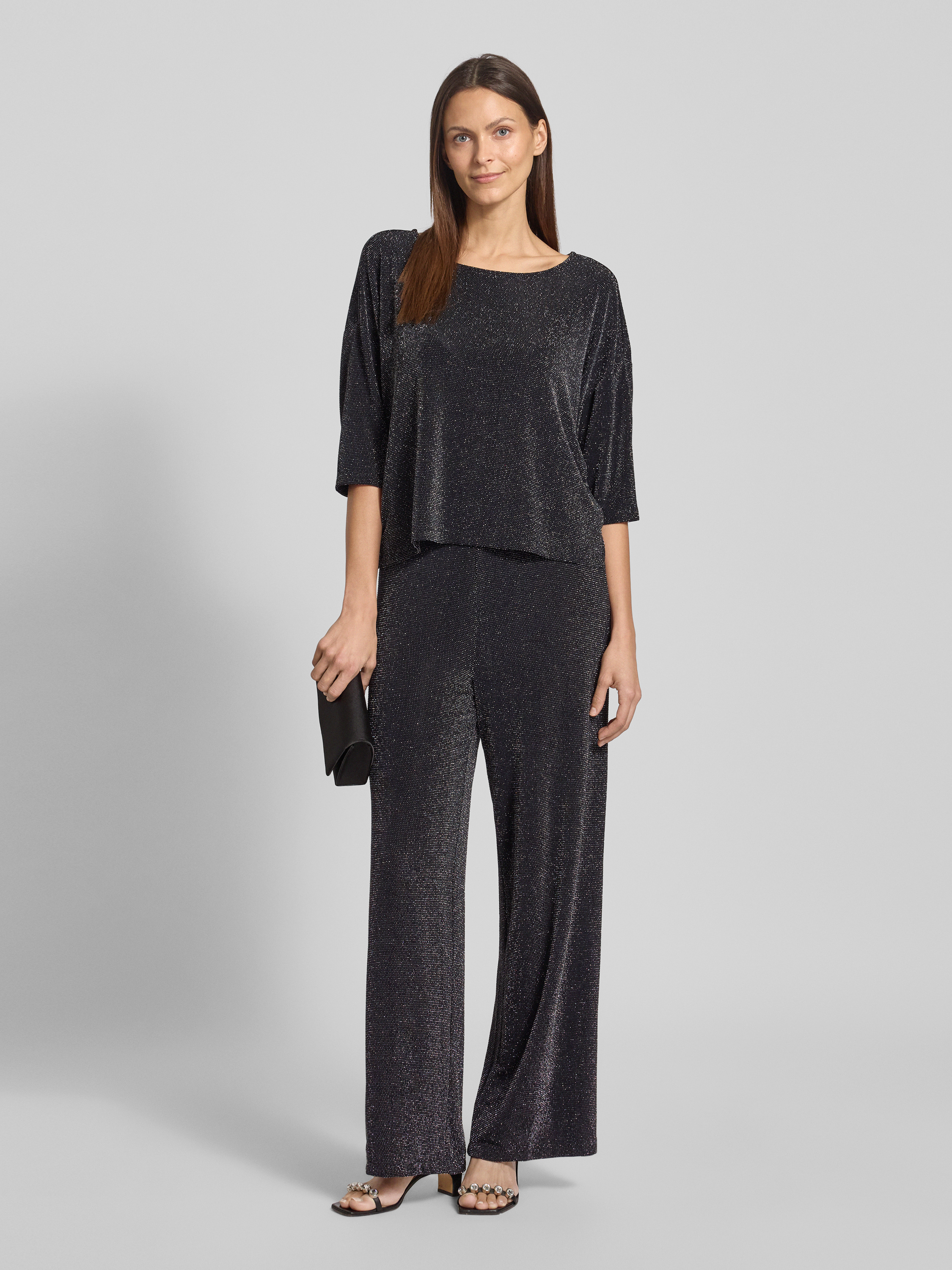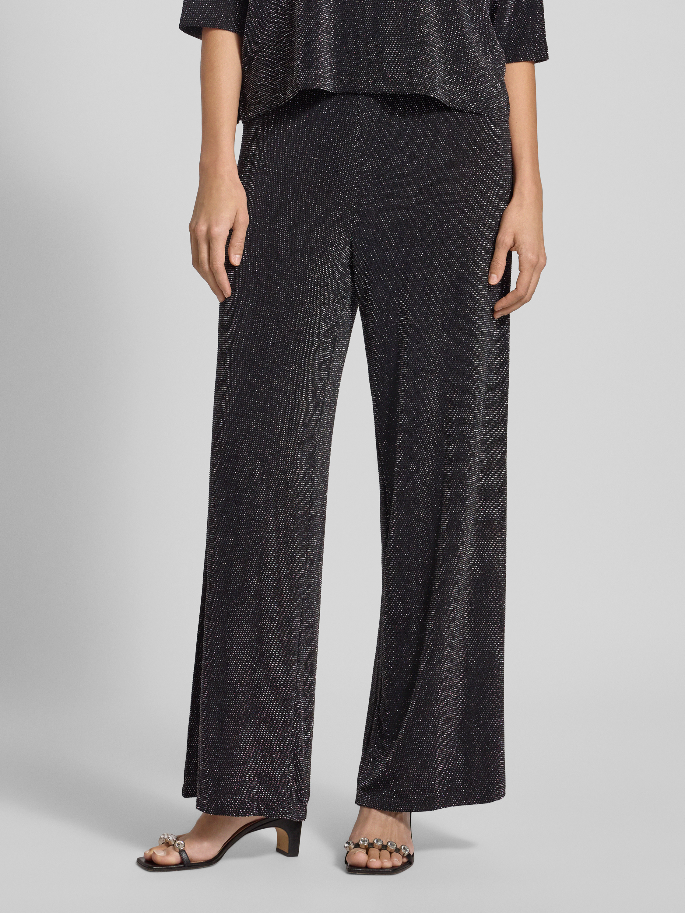 Stoffen broek met glittereffect in zwart