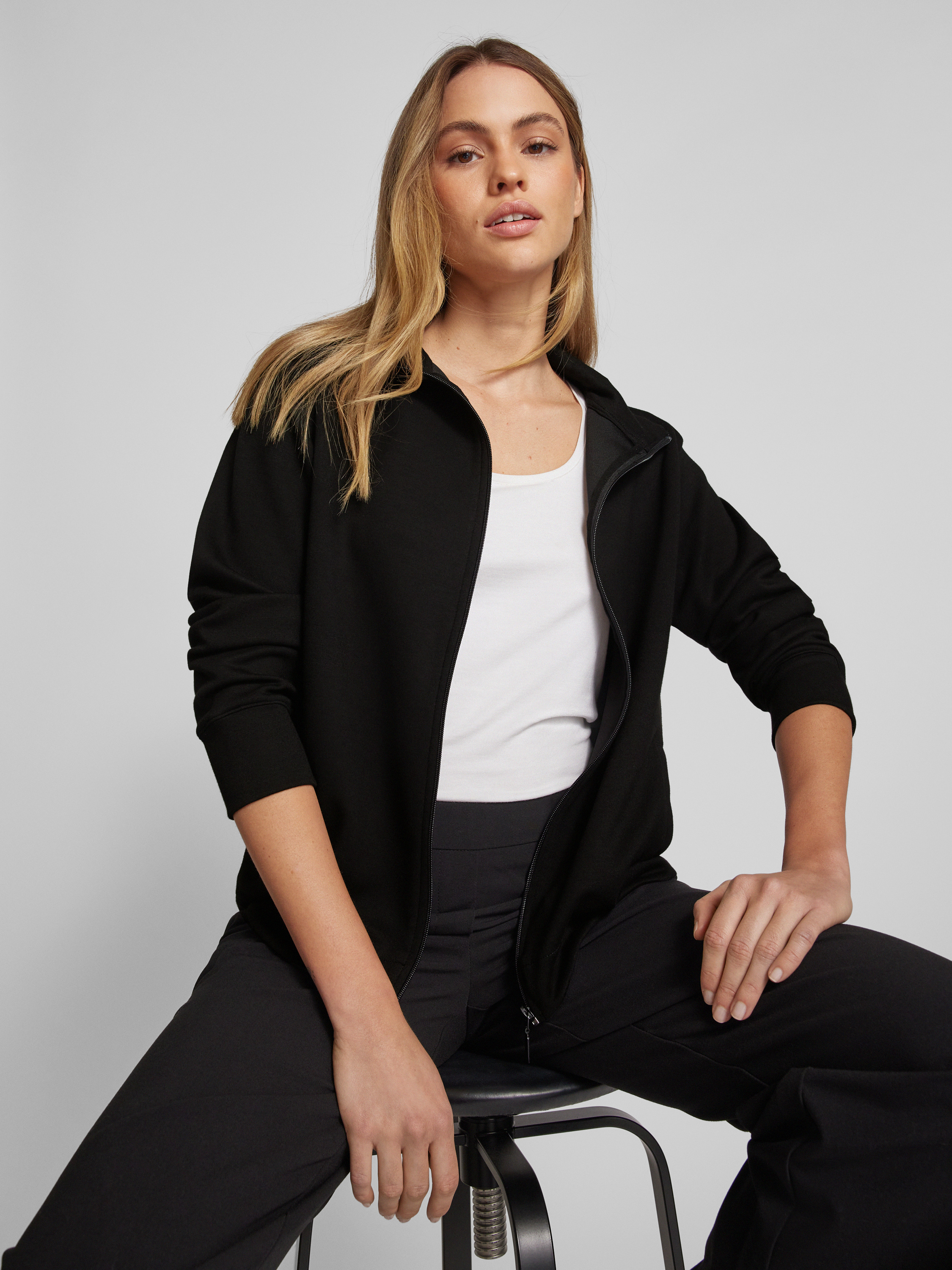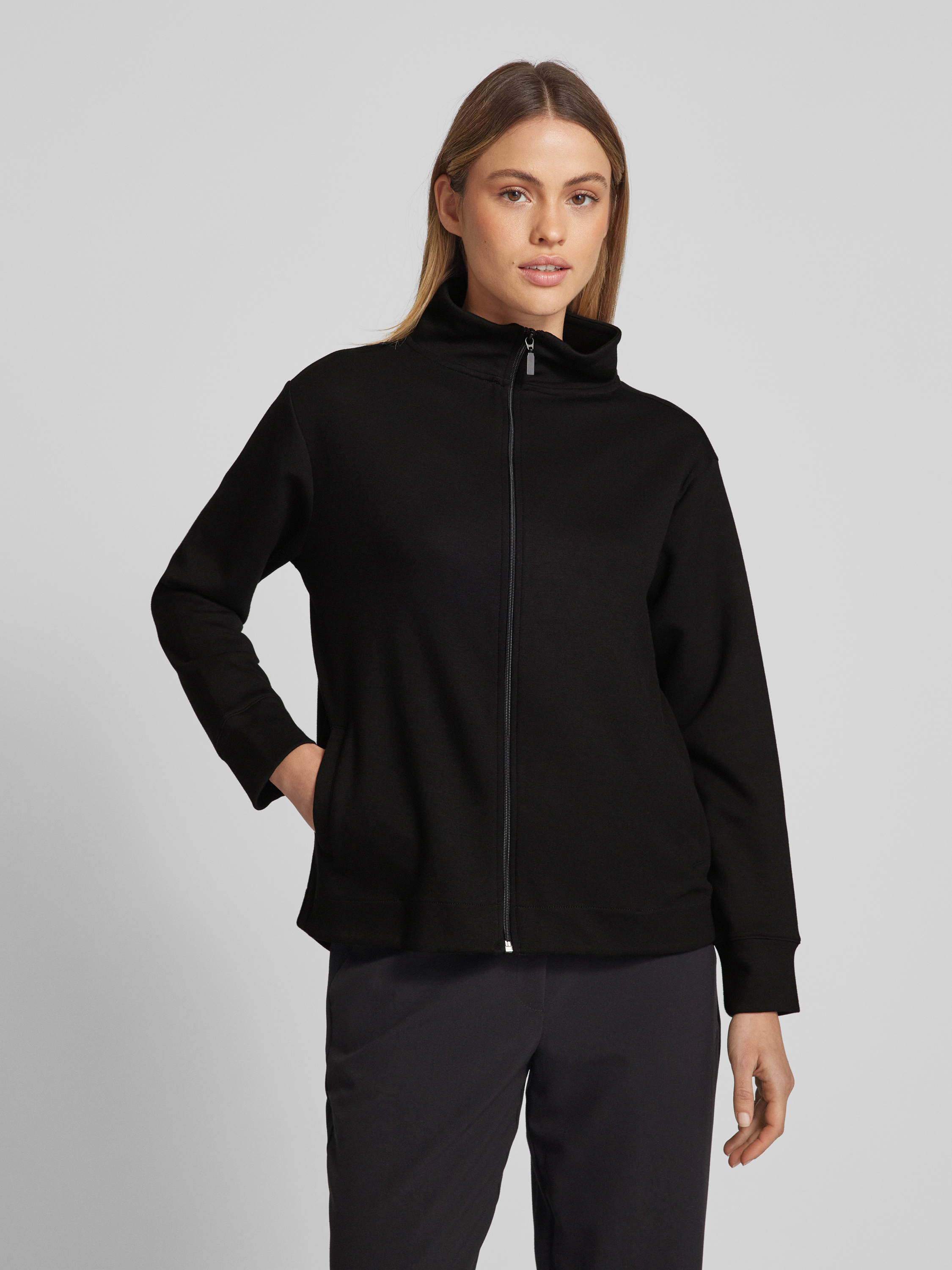 Sweatjack met opstaande kraag in zwart