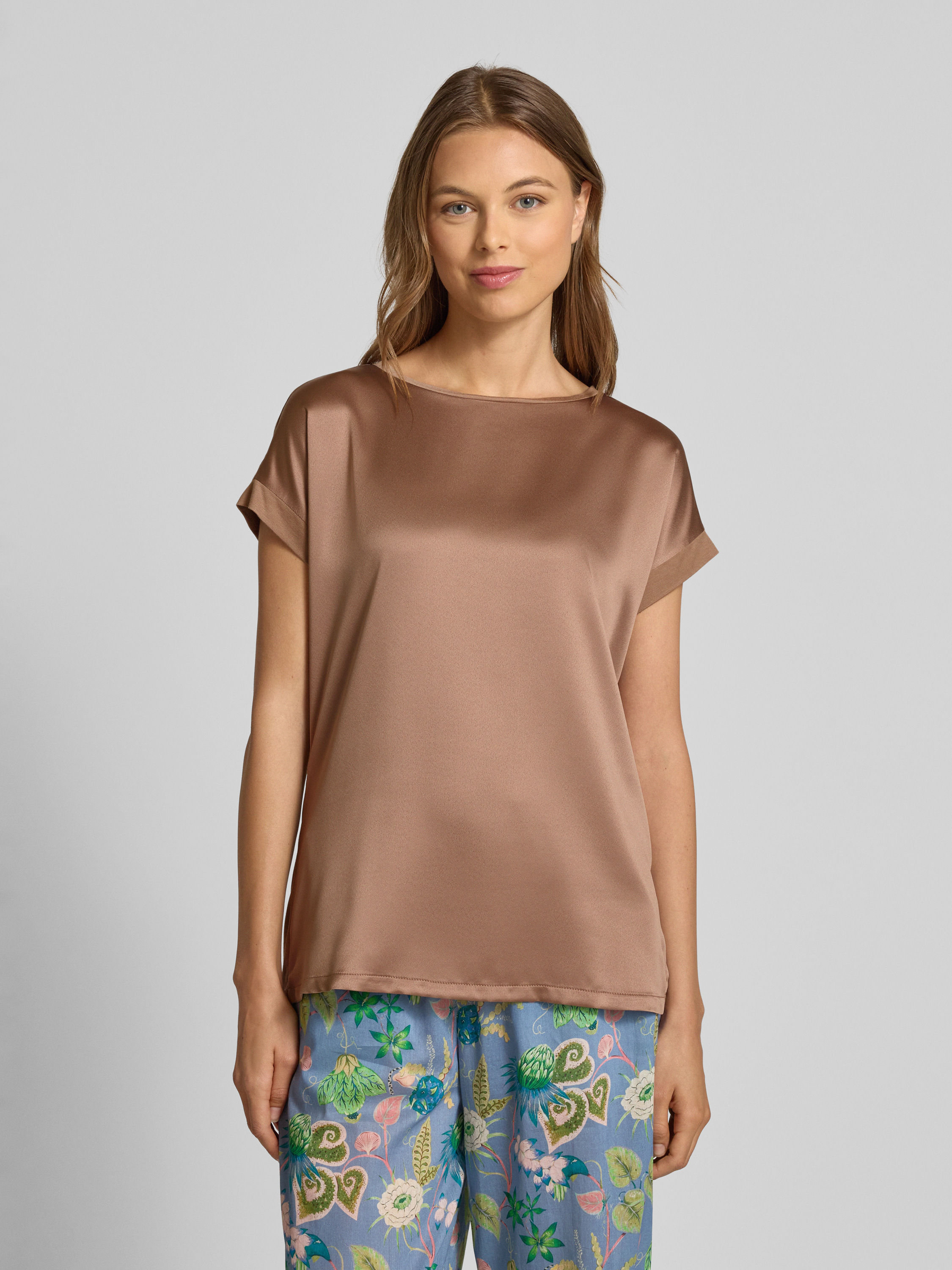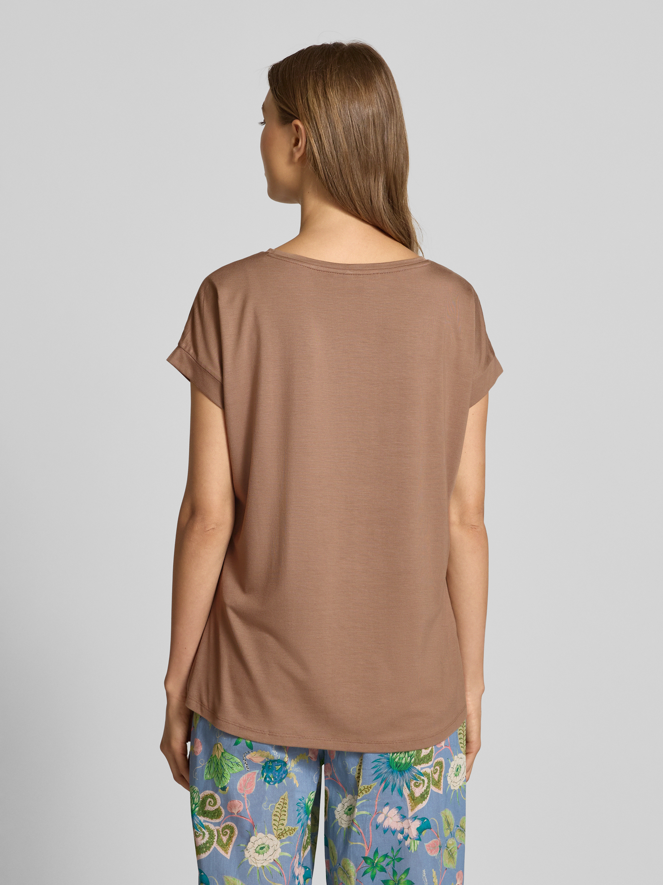 T-shirt met kapmouwen in middenbruin