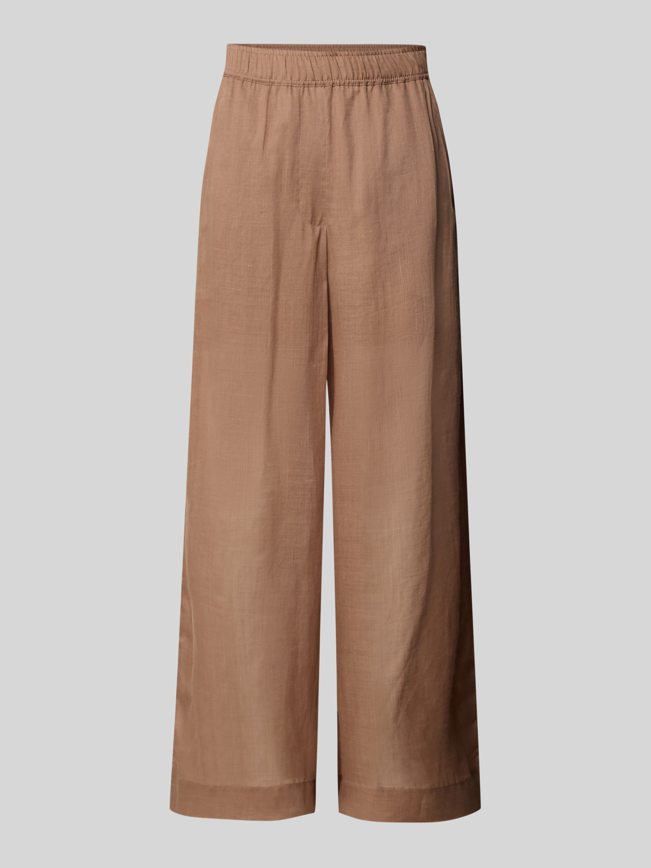 Wide fit stoffen broek met elastische band in middenbruin