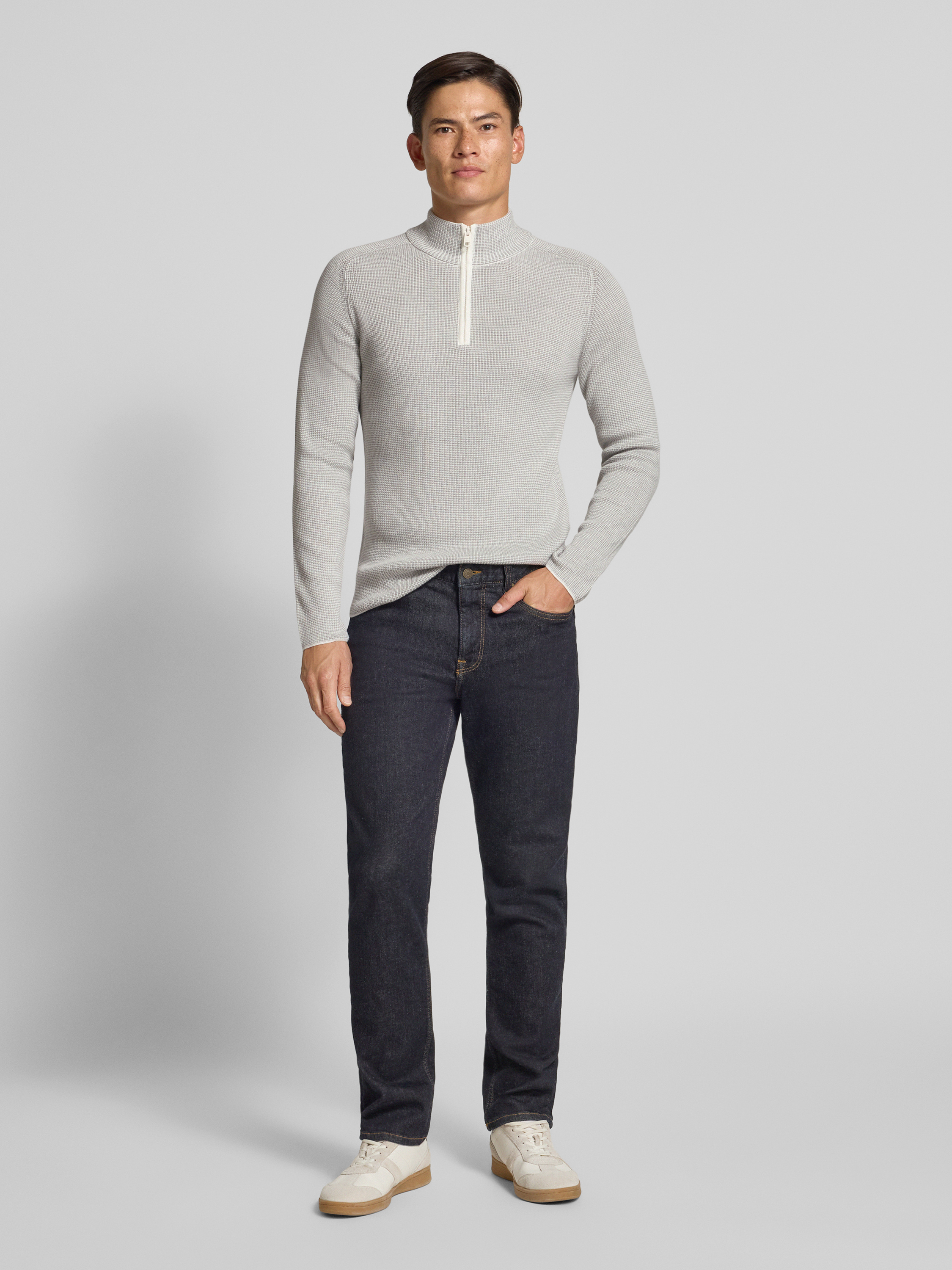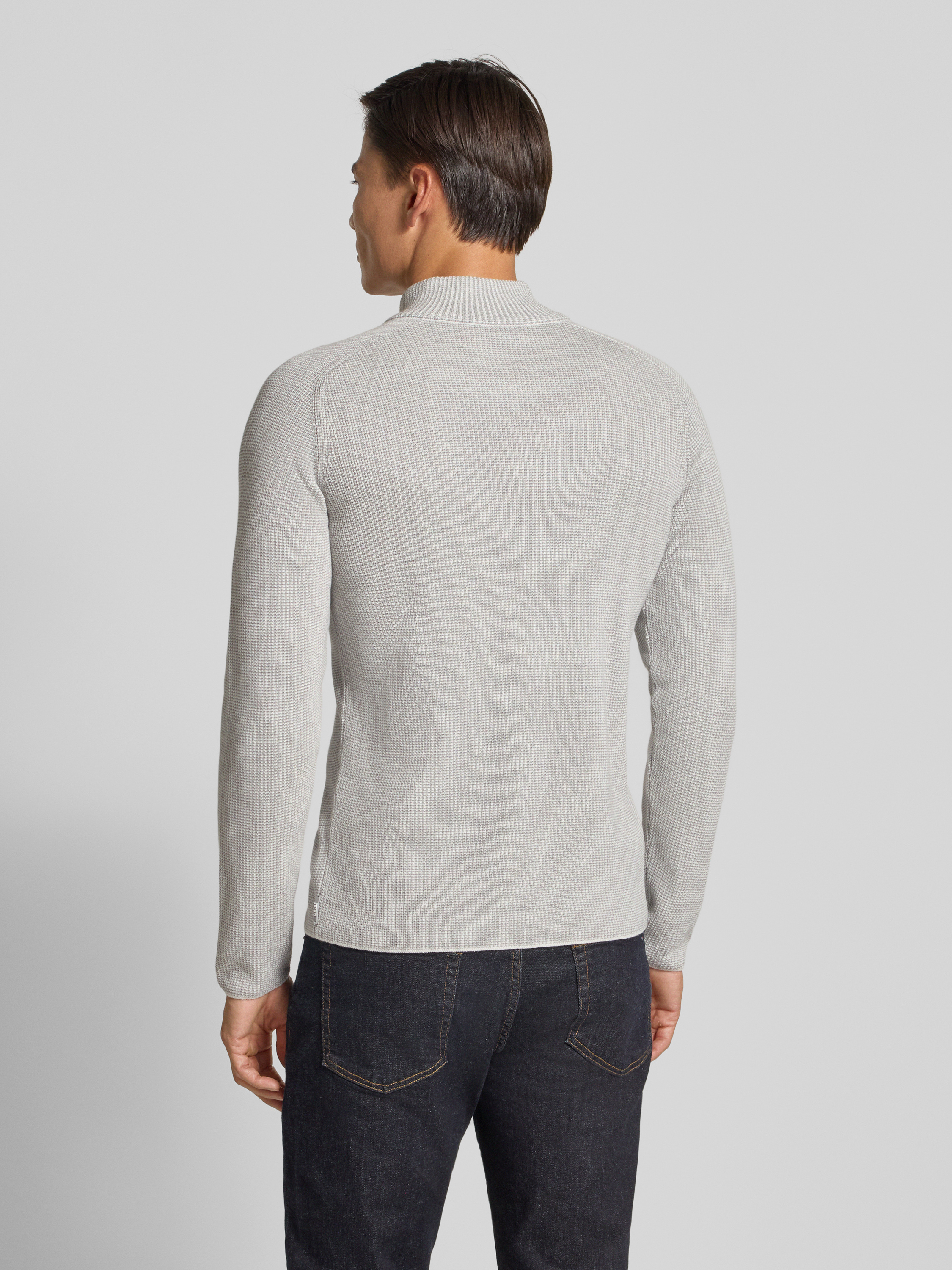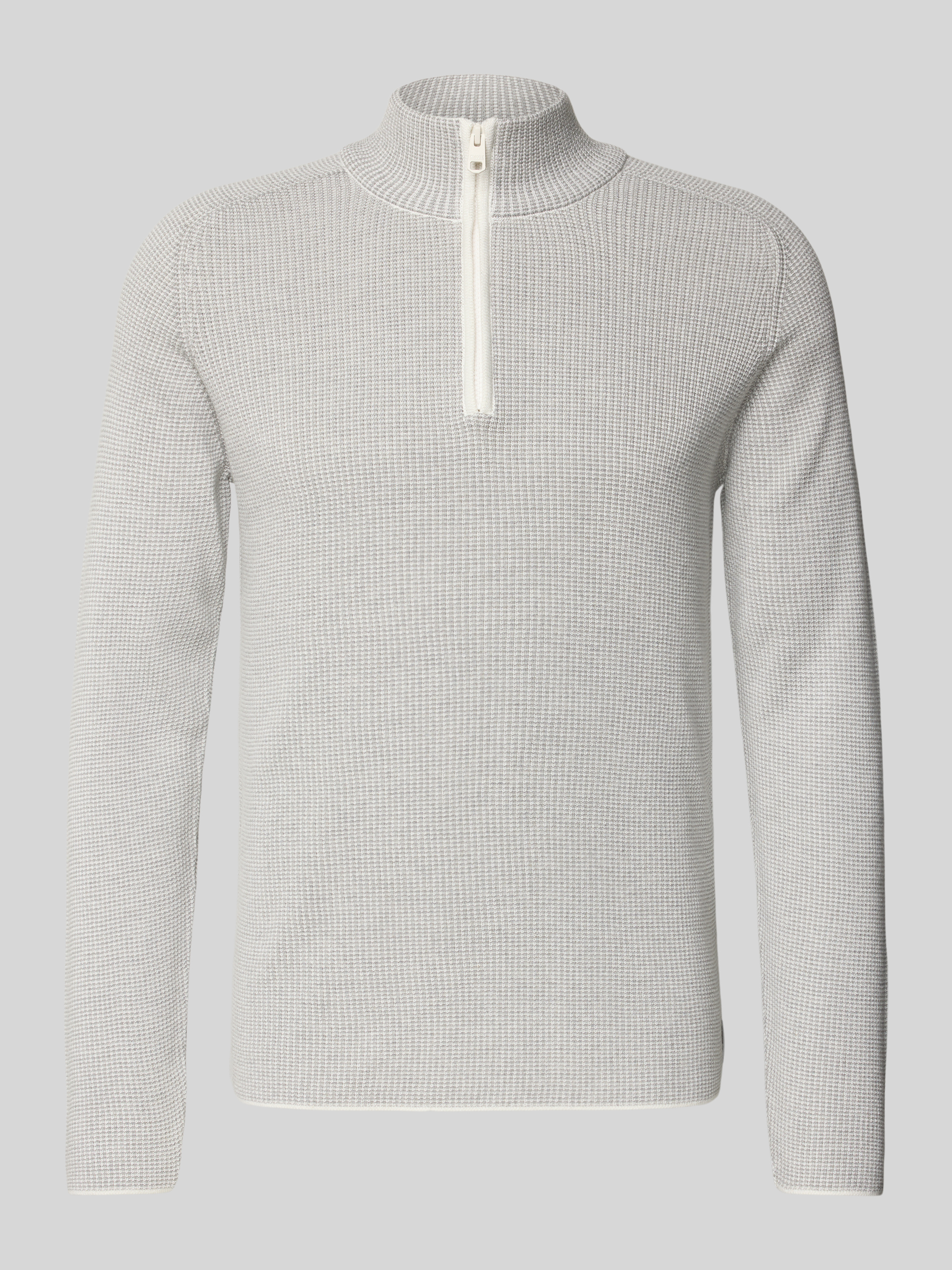 CinqueGebreide pullover met geribde opstaande kraag, model 'FALCINO' in offwhite