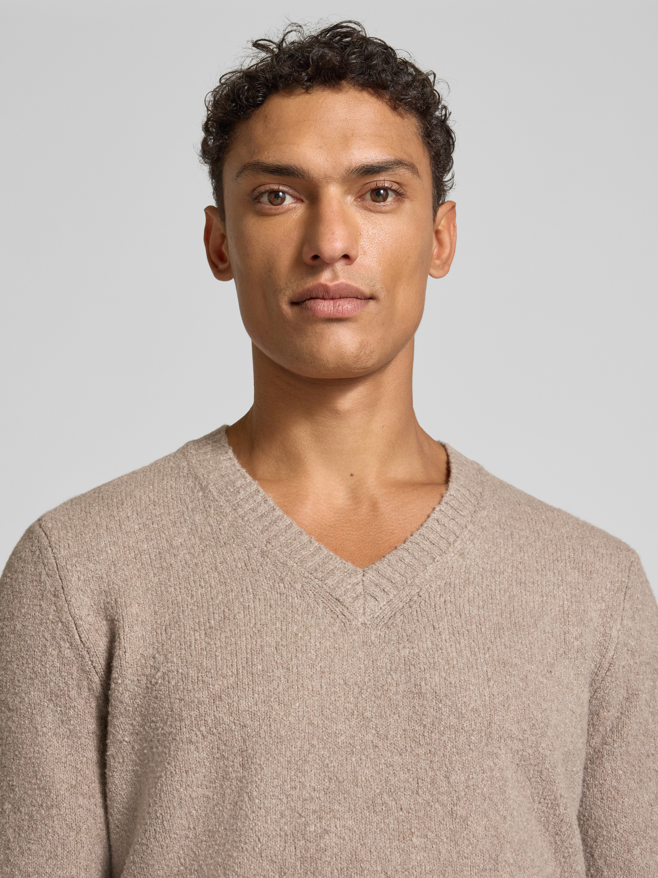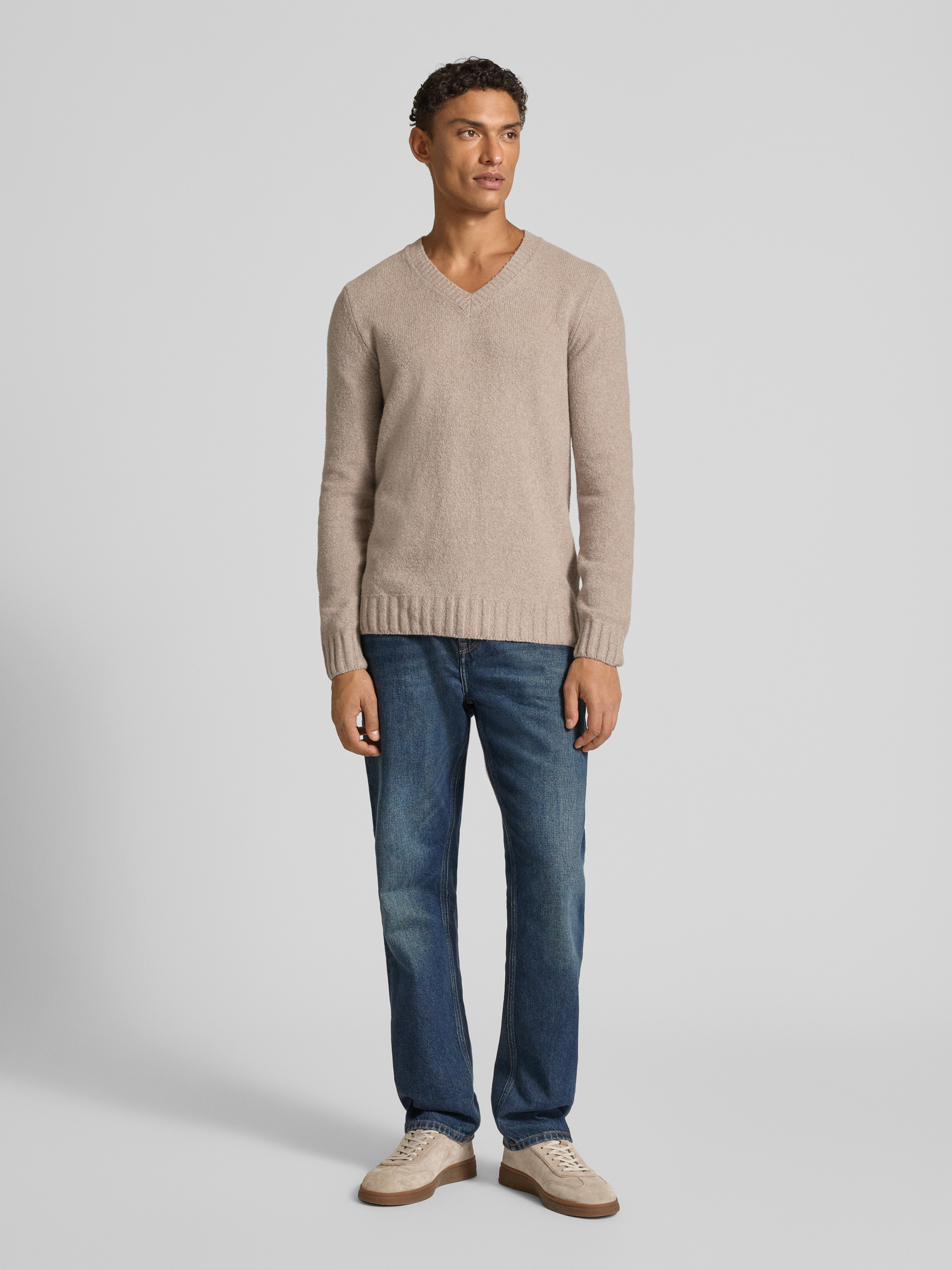 CinqueGebreide pullover met V-hals, model 'UPO' in beige