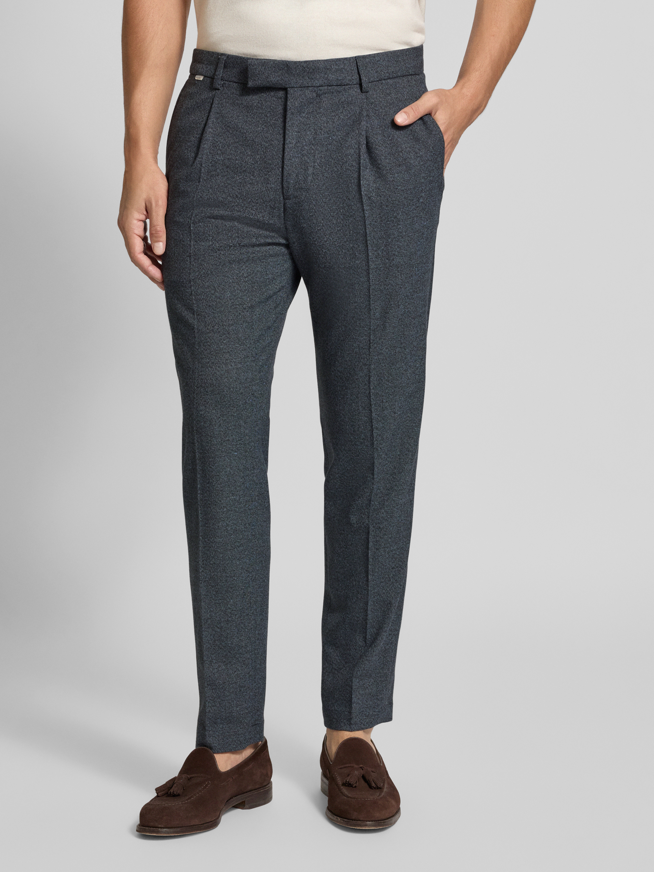 CinqueRegular fit stoffen broek met persplooien, model 'CiSalto' in marineblauw