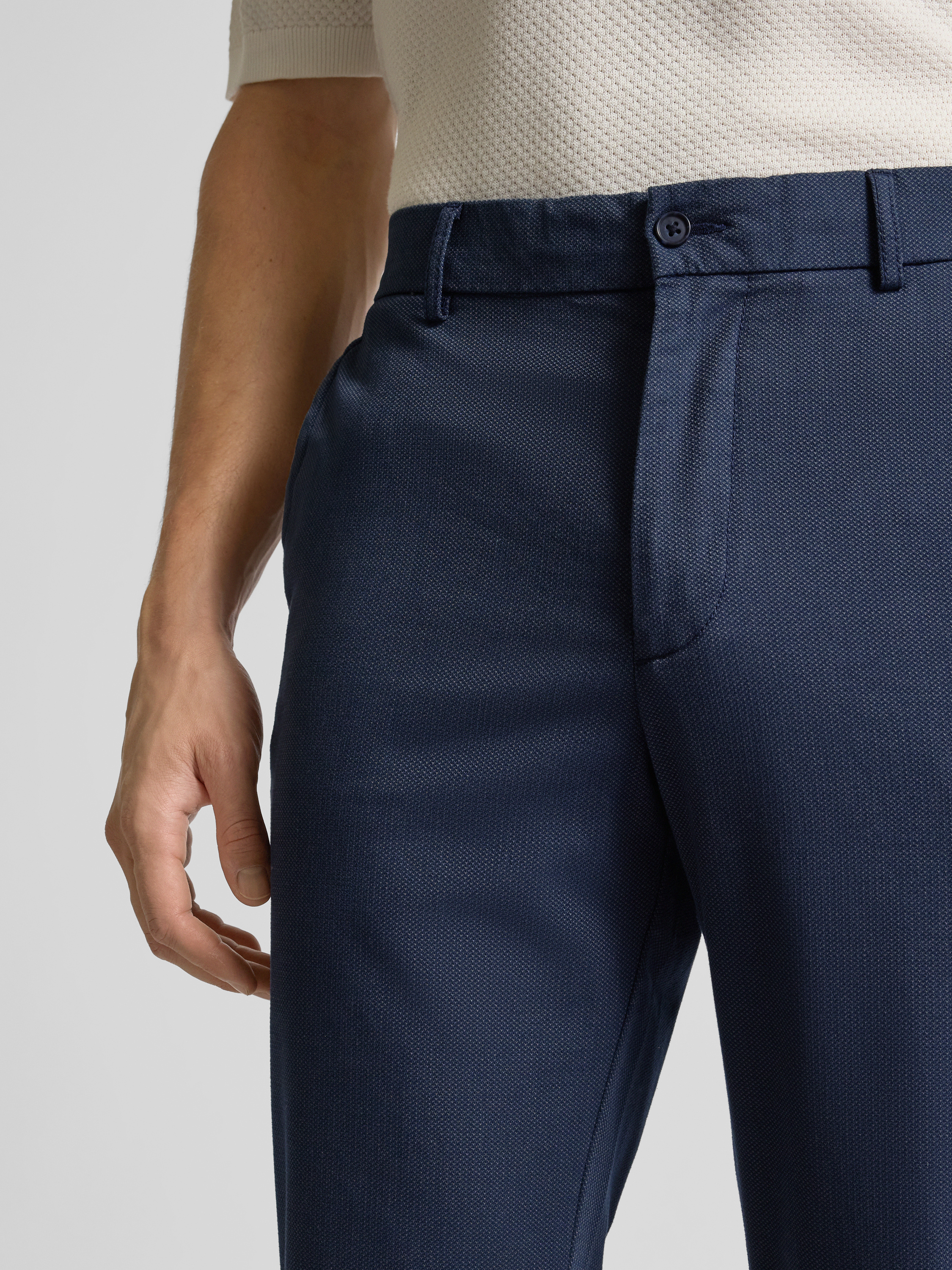 Slim fit stoffen broek met achterzakken, model 'Brody' in marineblauw