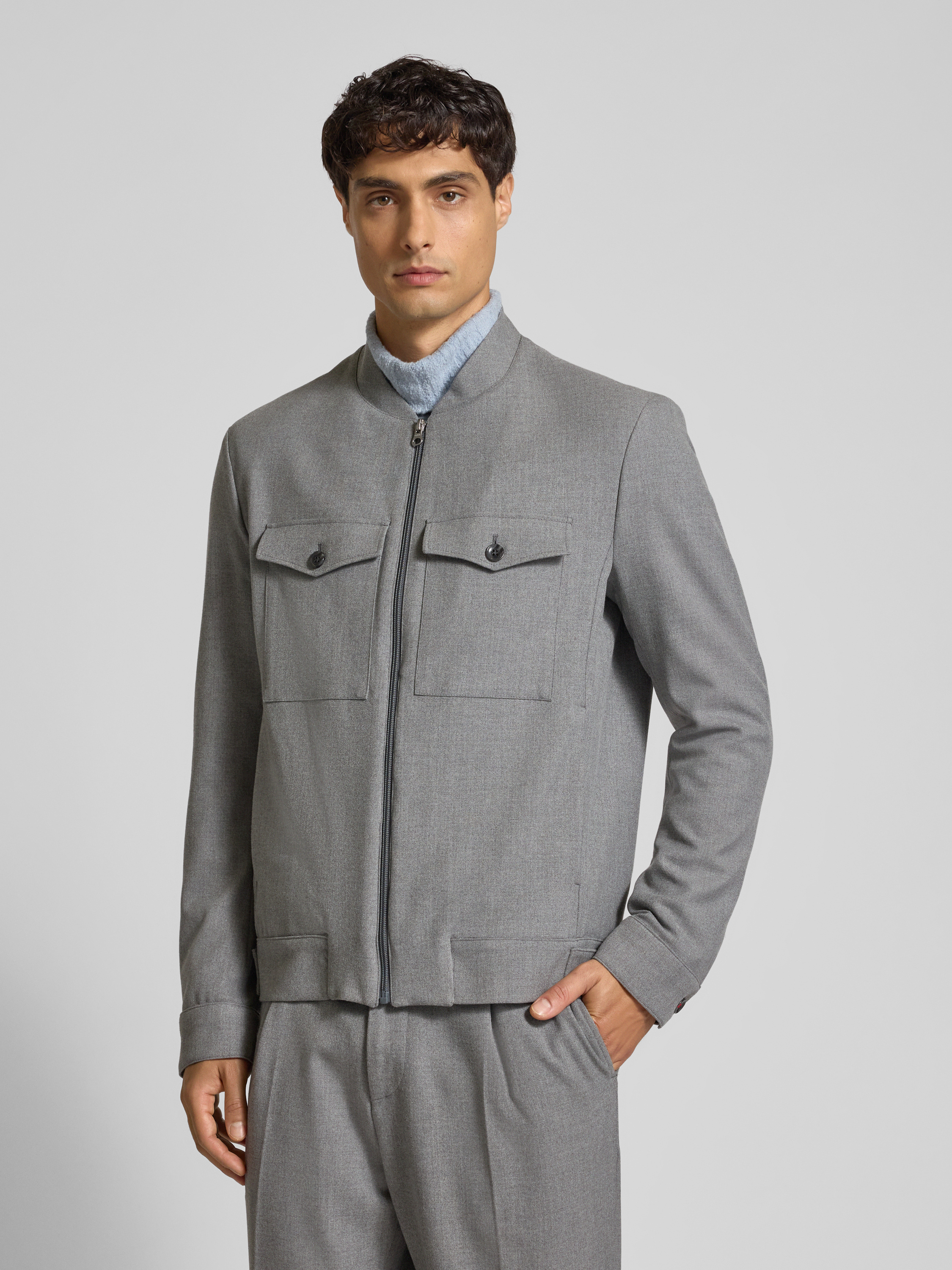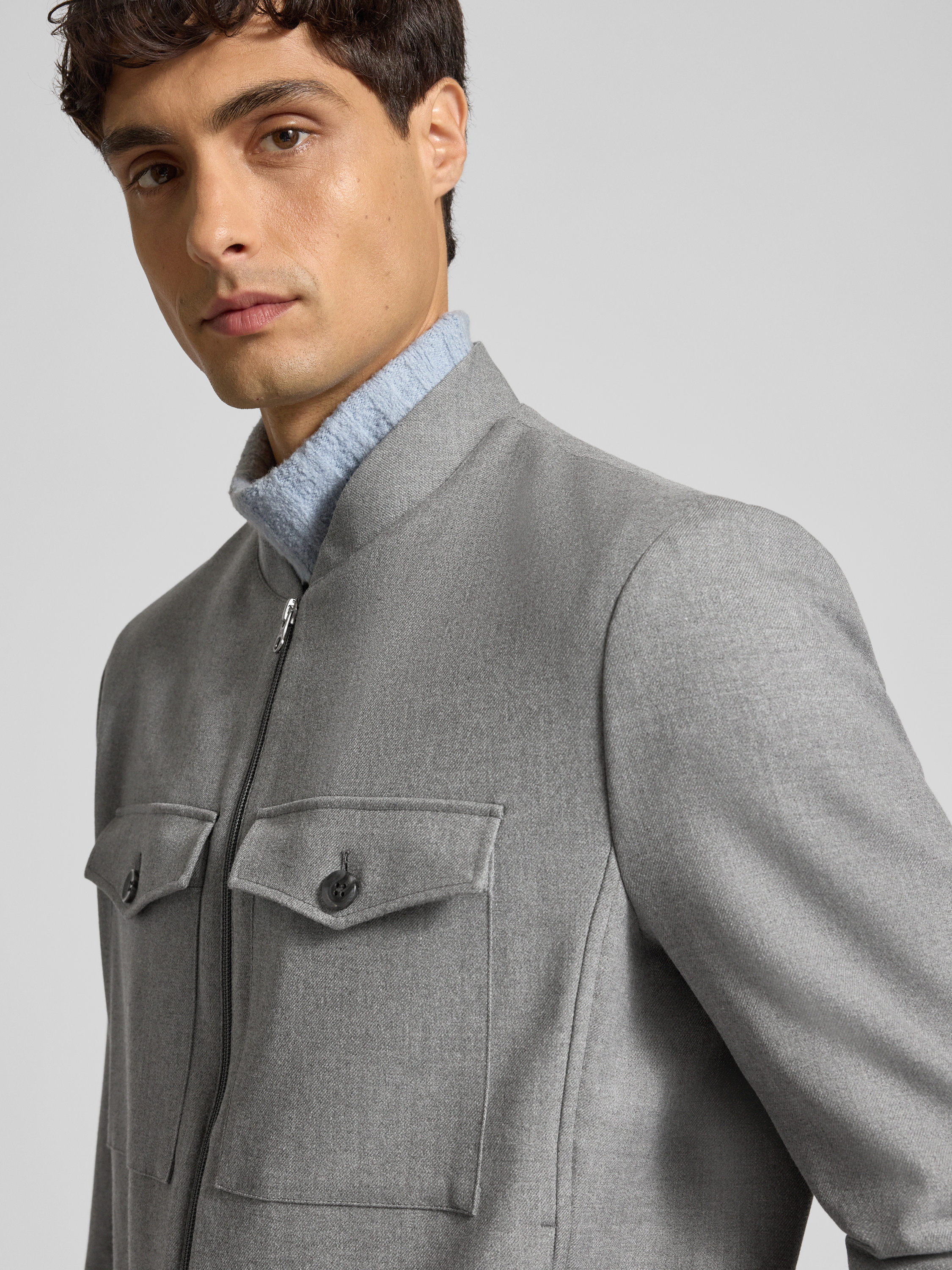 CinqueJack met opstaande kraag en borstzakken in lichtgrijs