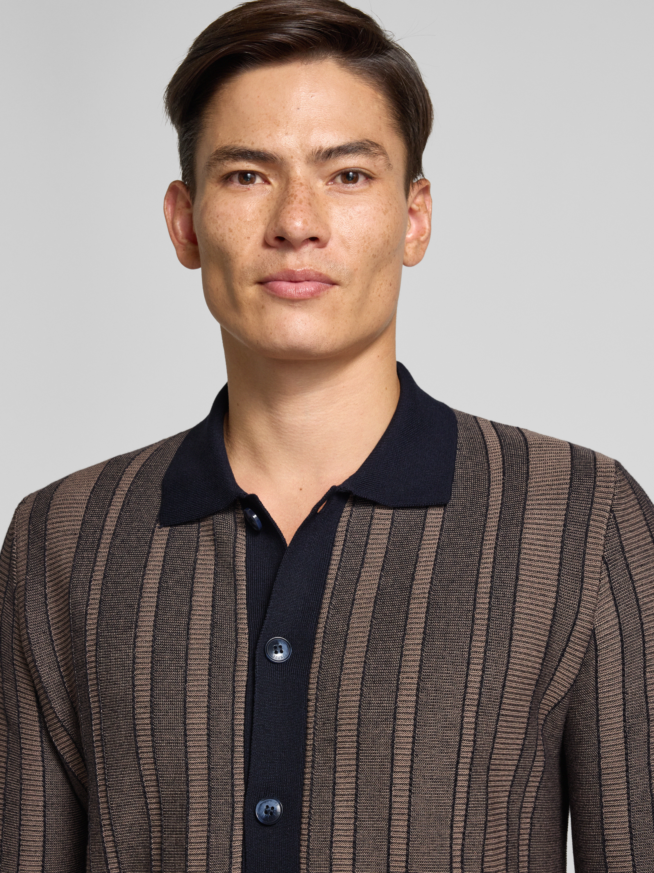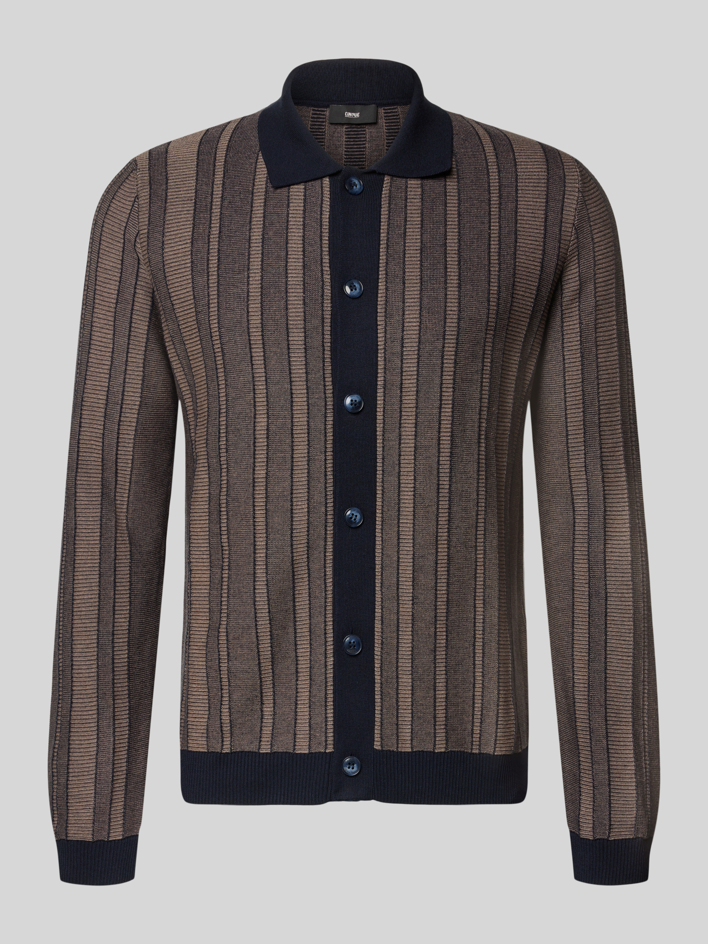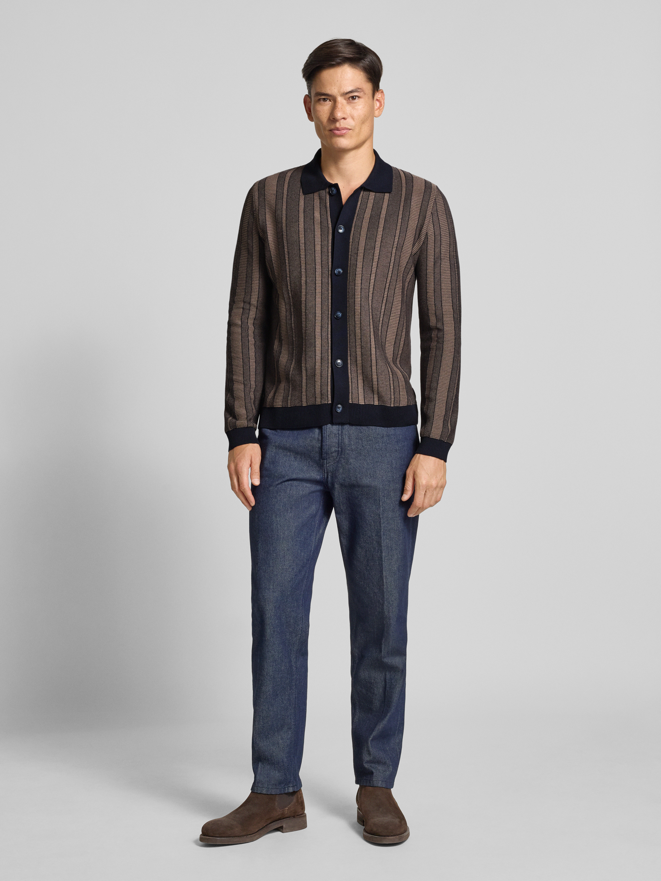 CinqueSlim fit gebreid jack met platte kraag, model 'Cijanni' in donkerblauw