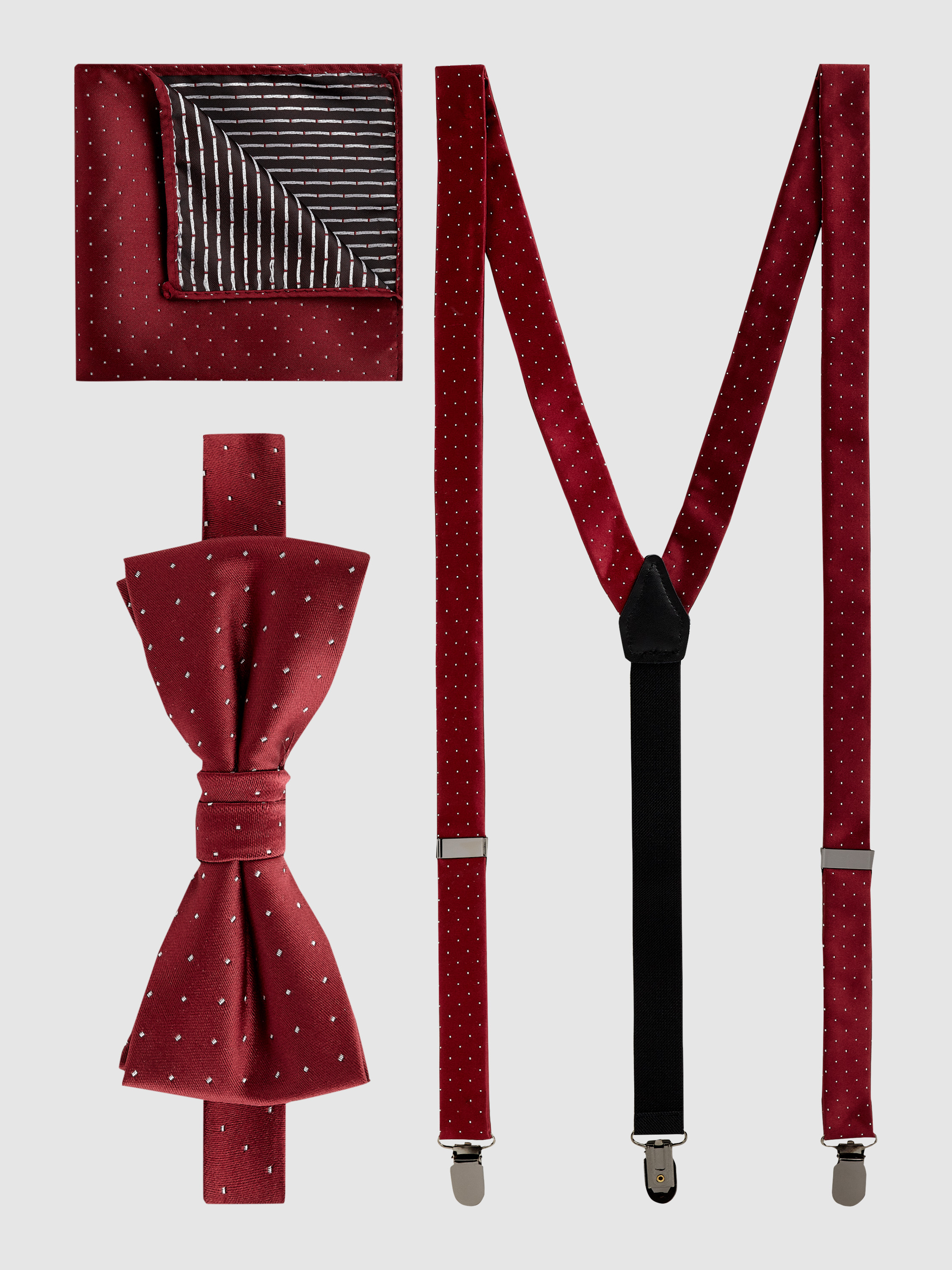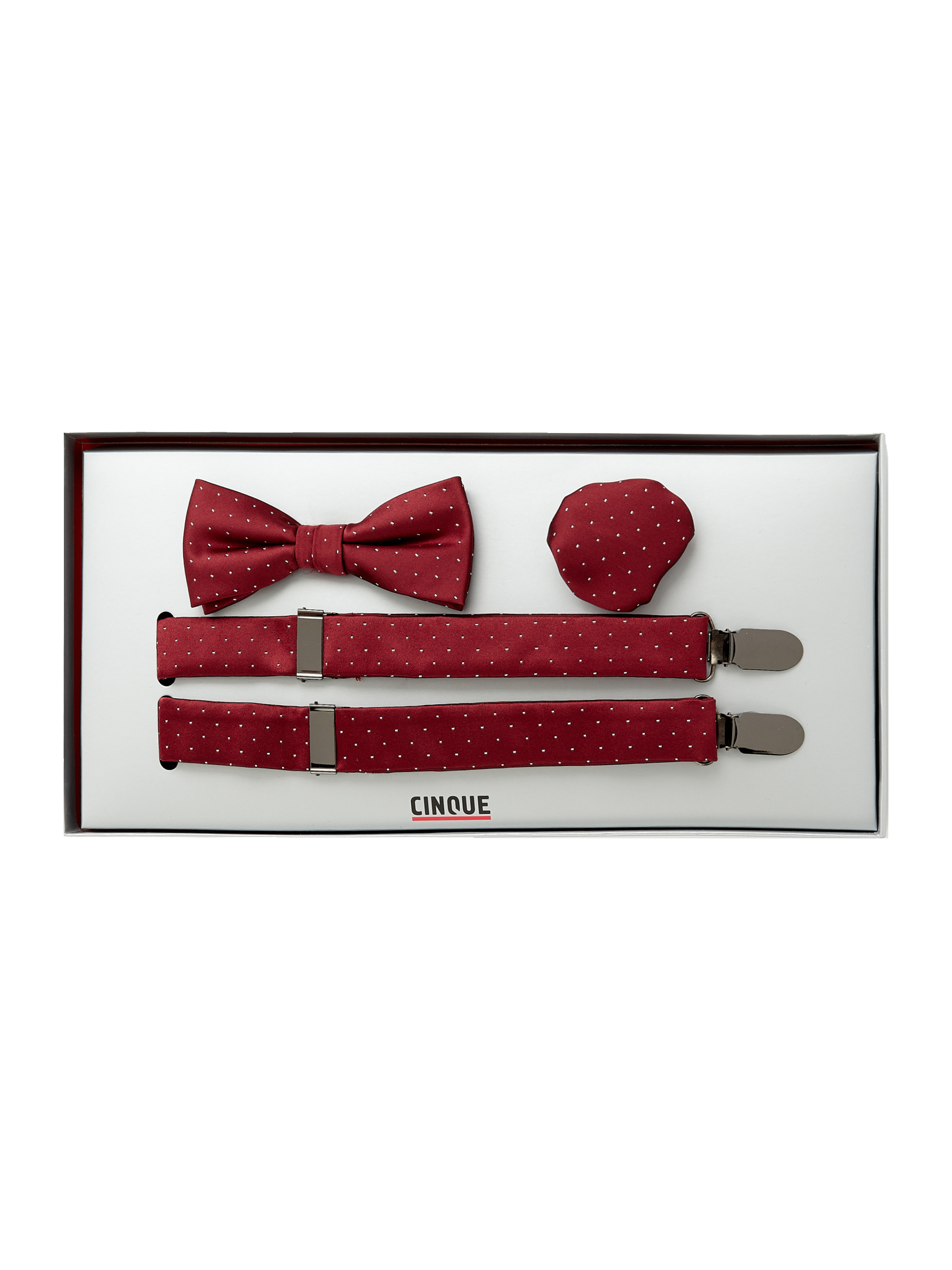 Strik, pochet en bretels in een set, model 'Carlo' in bordeaux