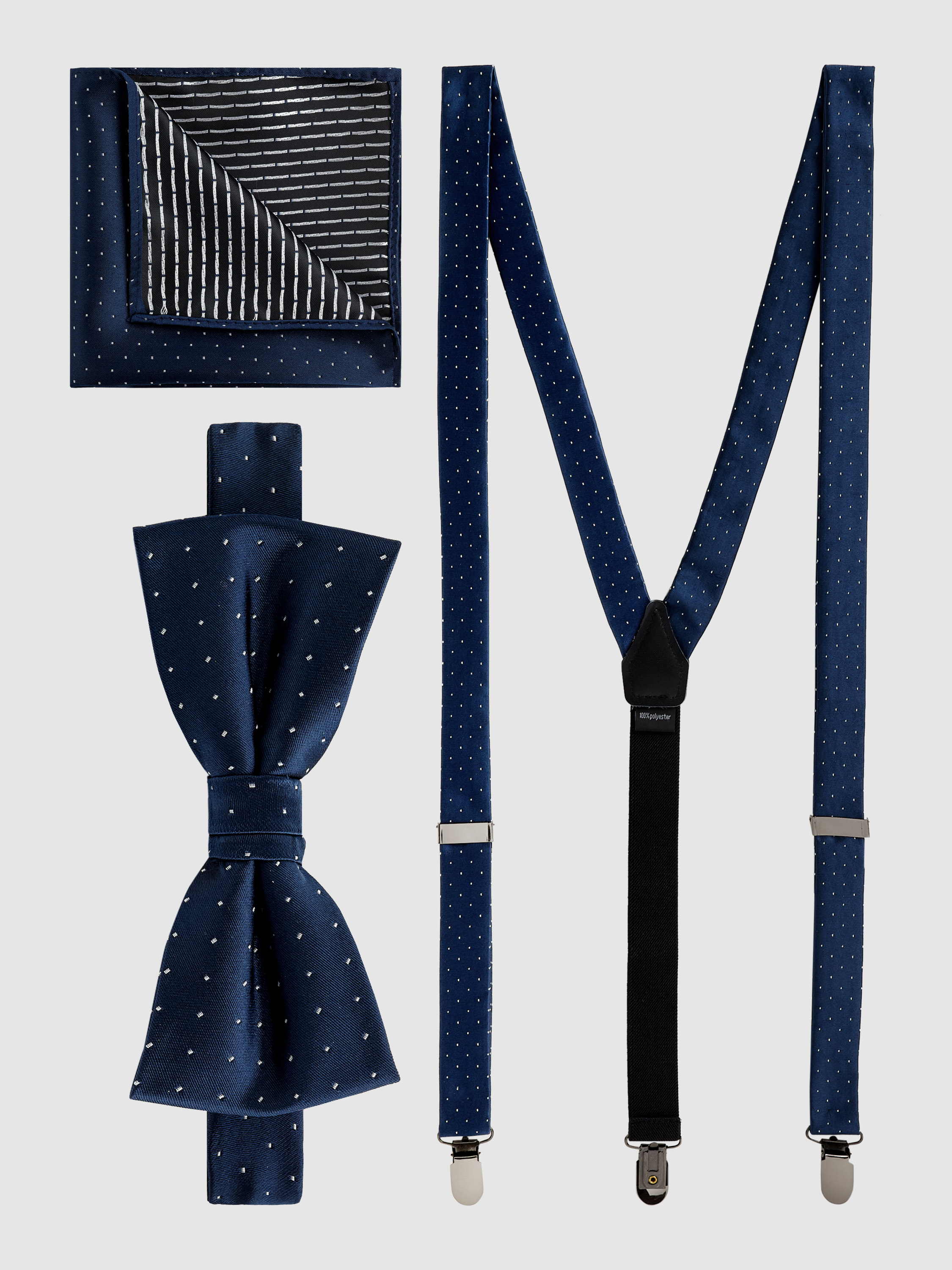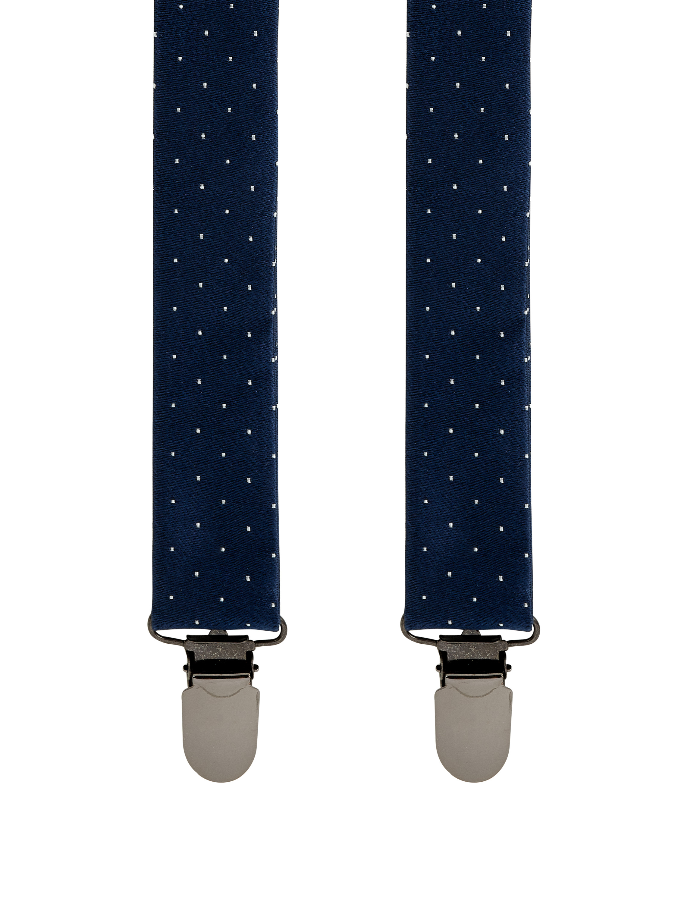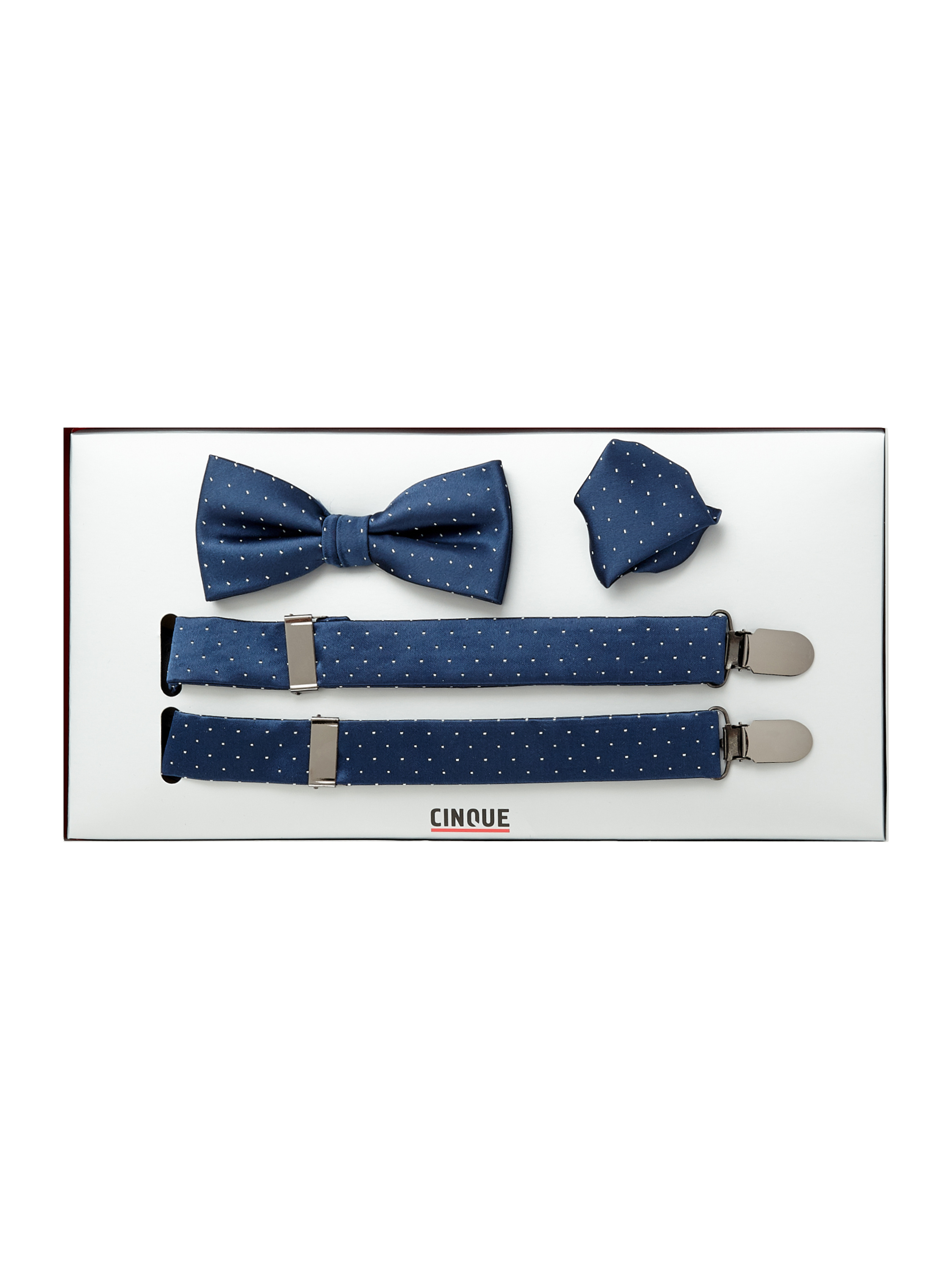Strik, pochet en bretels in een set, model 'Carlo' in marineblauw
