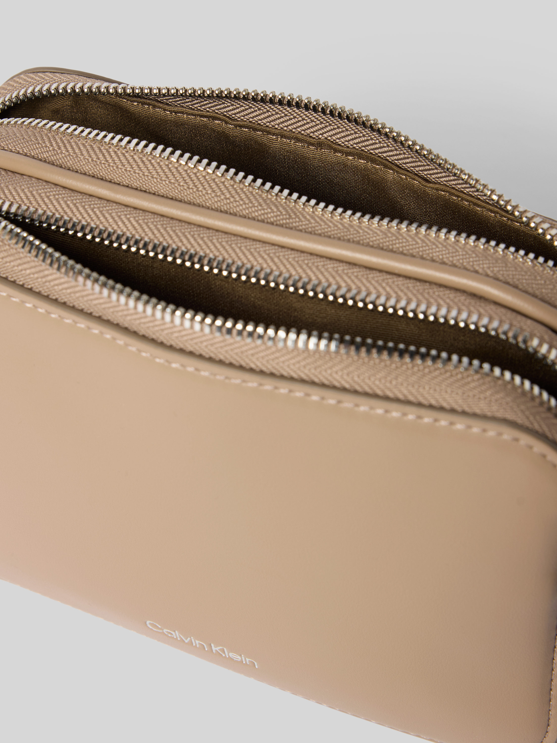 Crossbodytas met reliëflogo, model 'Webbing' in beige
