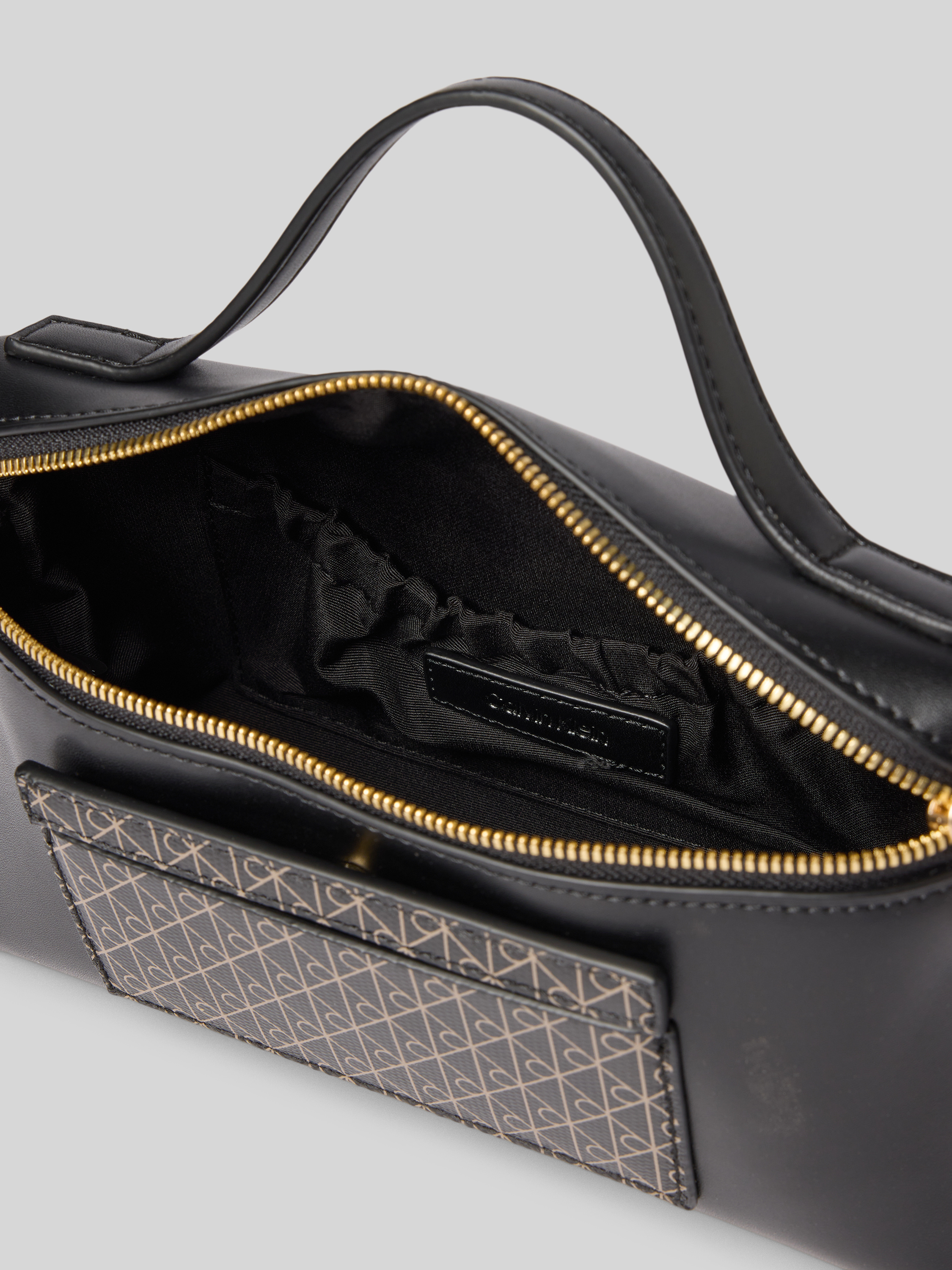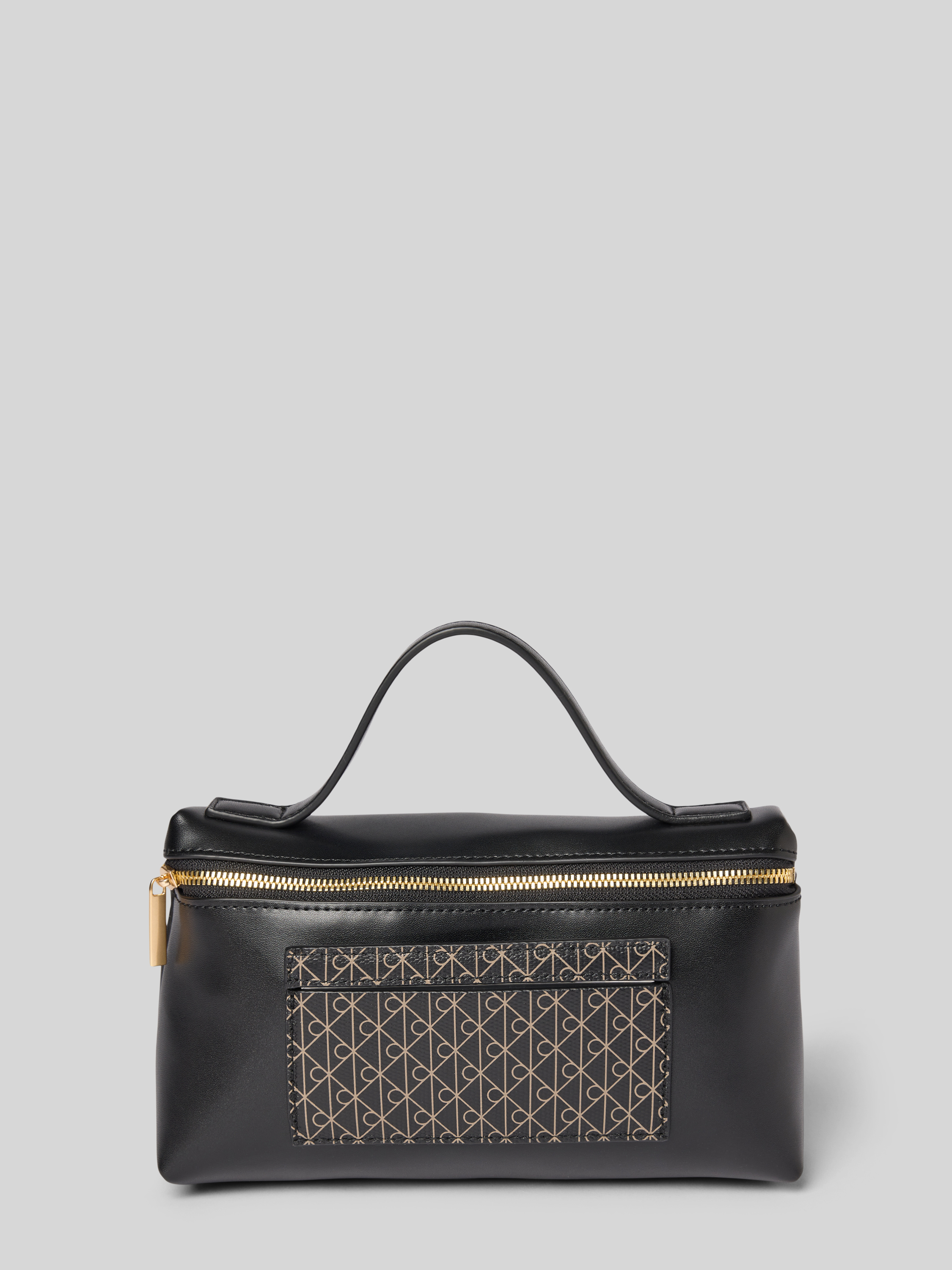 Make-uptasje met logomotief en draagband in zwart