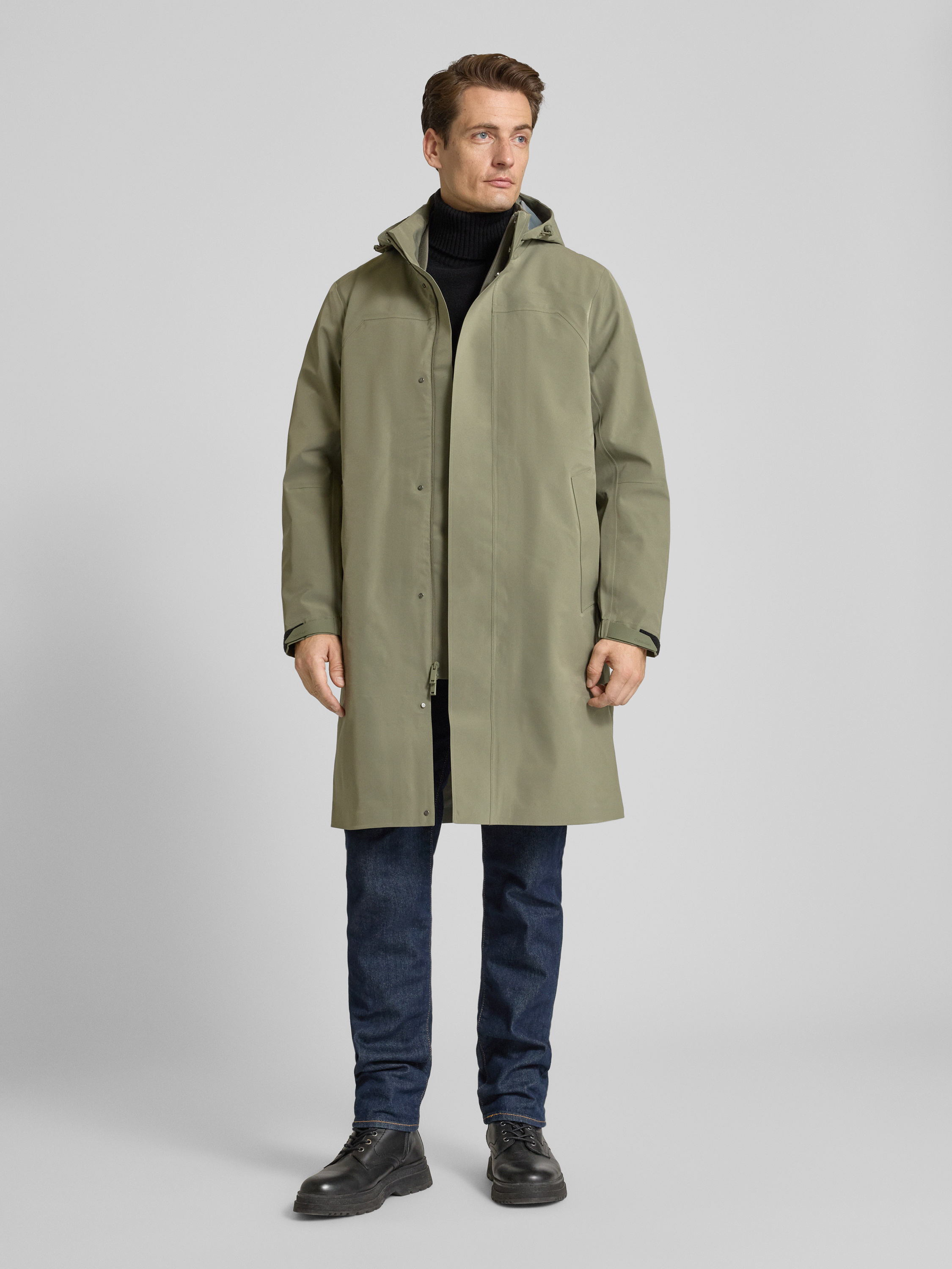 Parka met capuchon en mouwtrensjes in olijfgroen