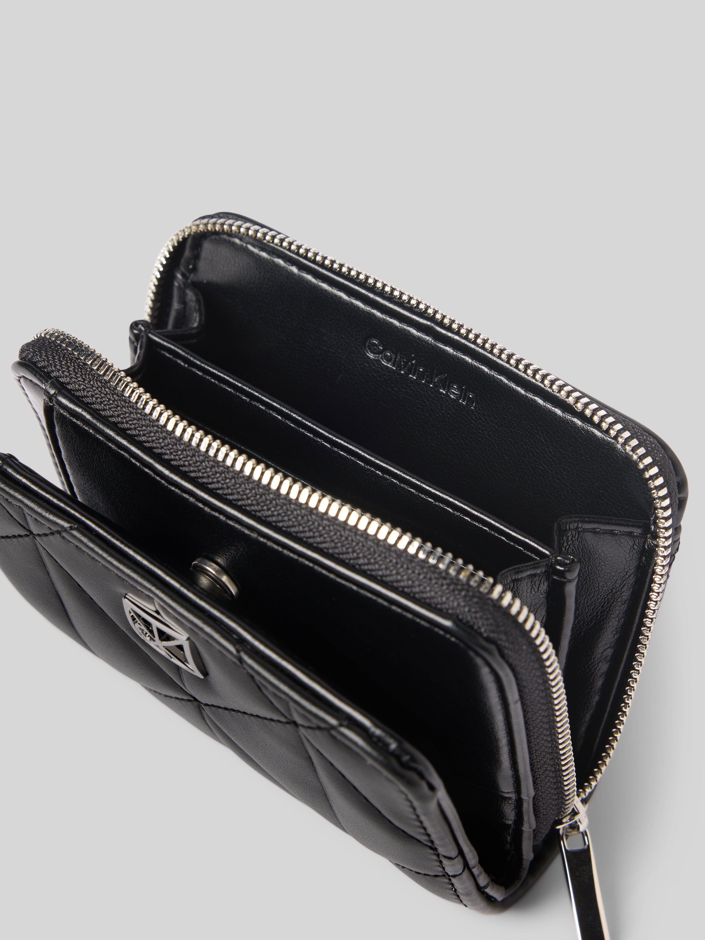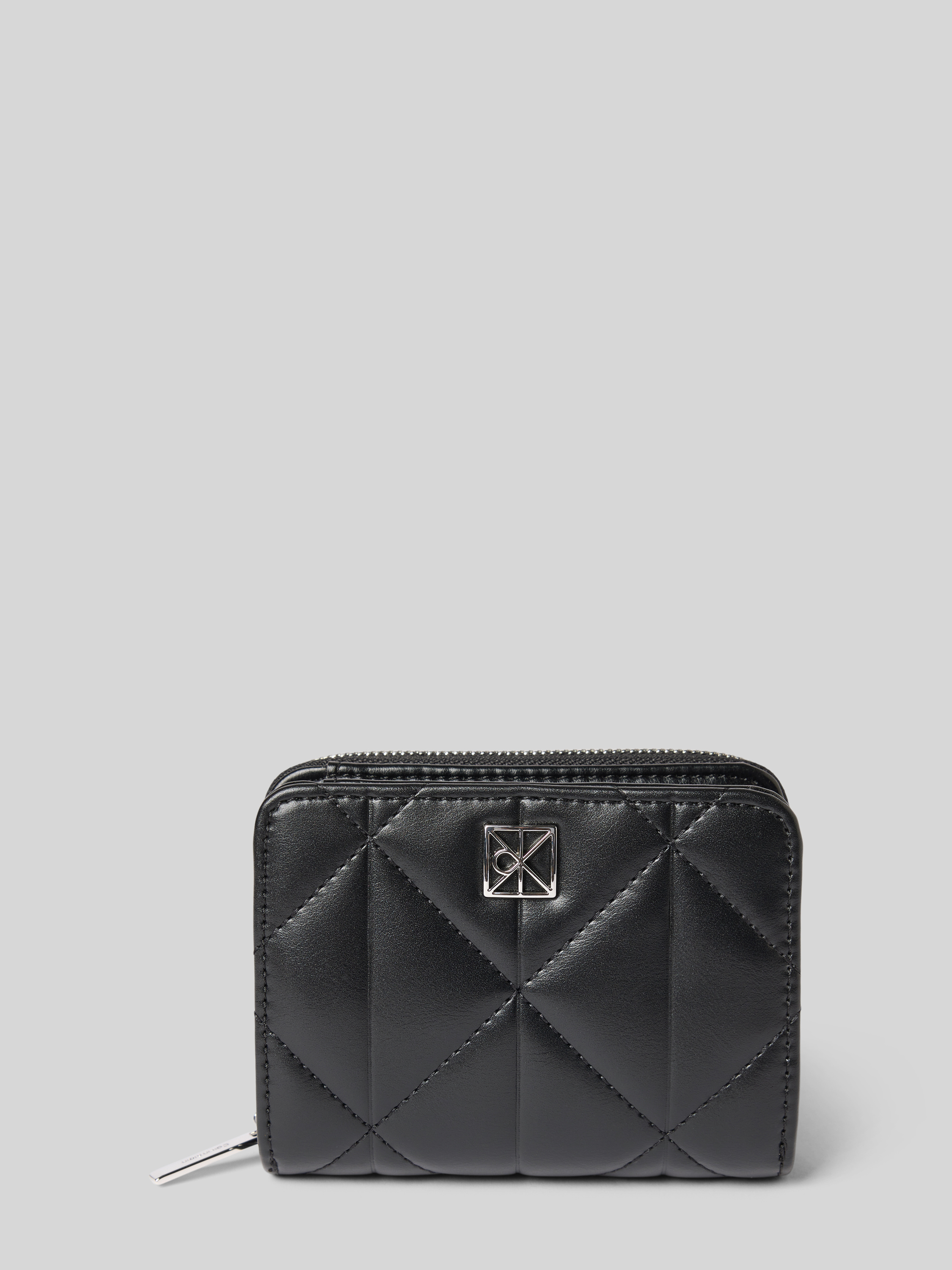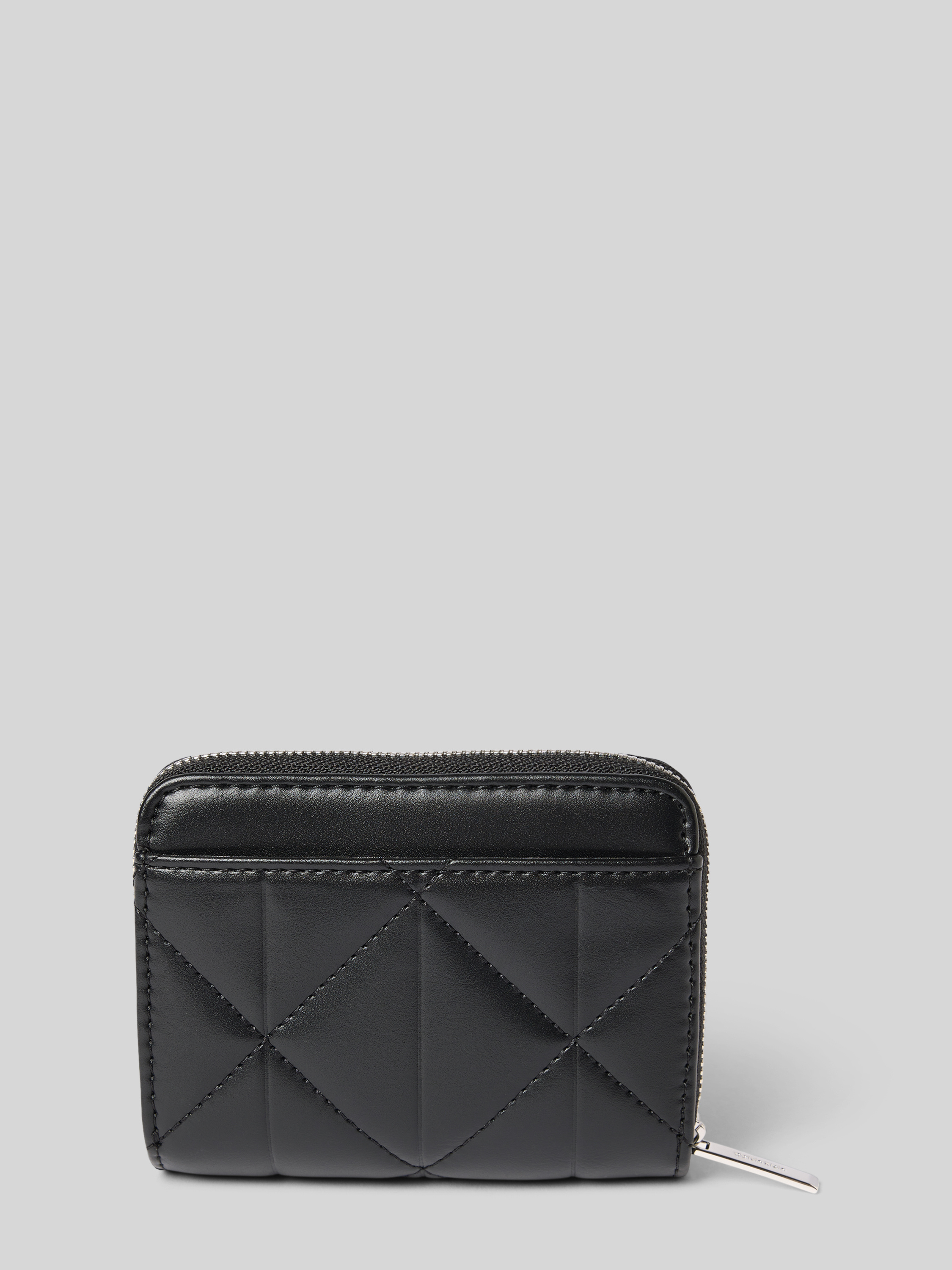 Portemonnee met doorgestikte naden en labelapplicatie in zwart