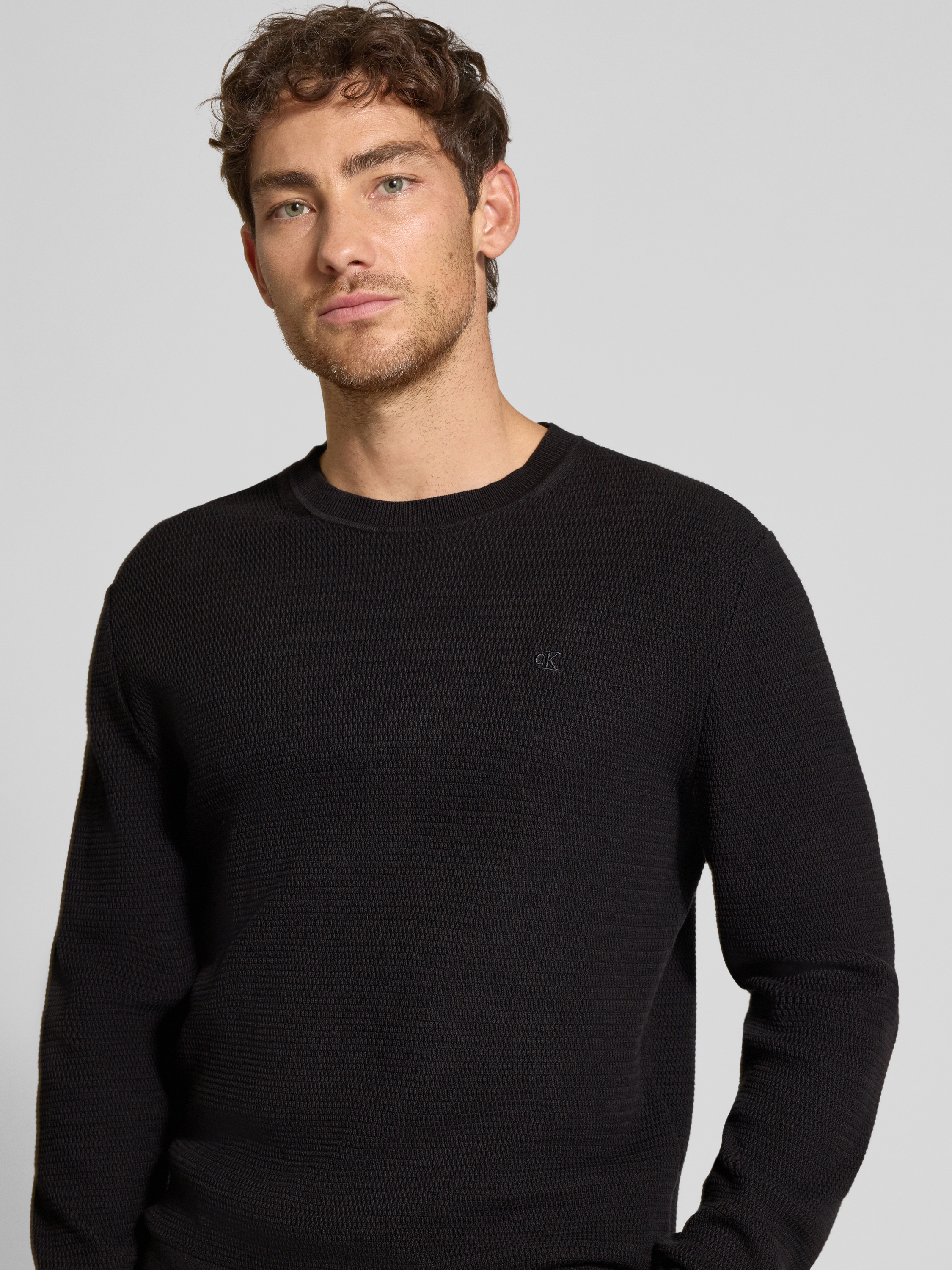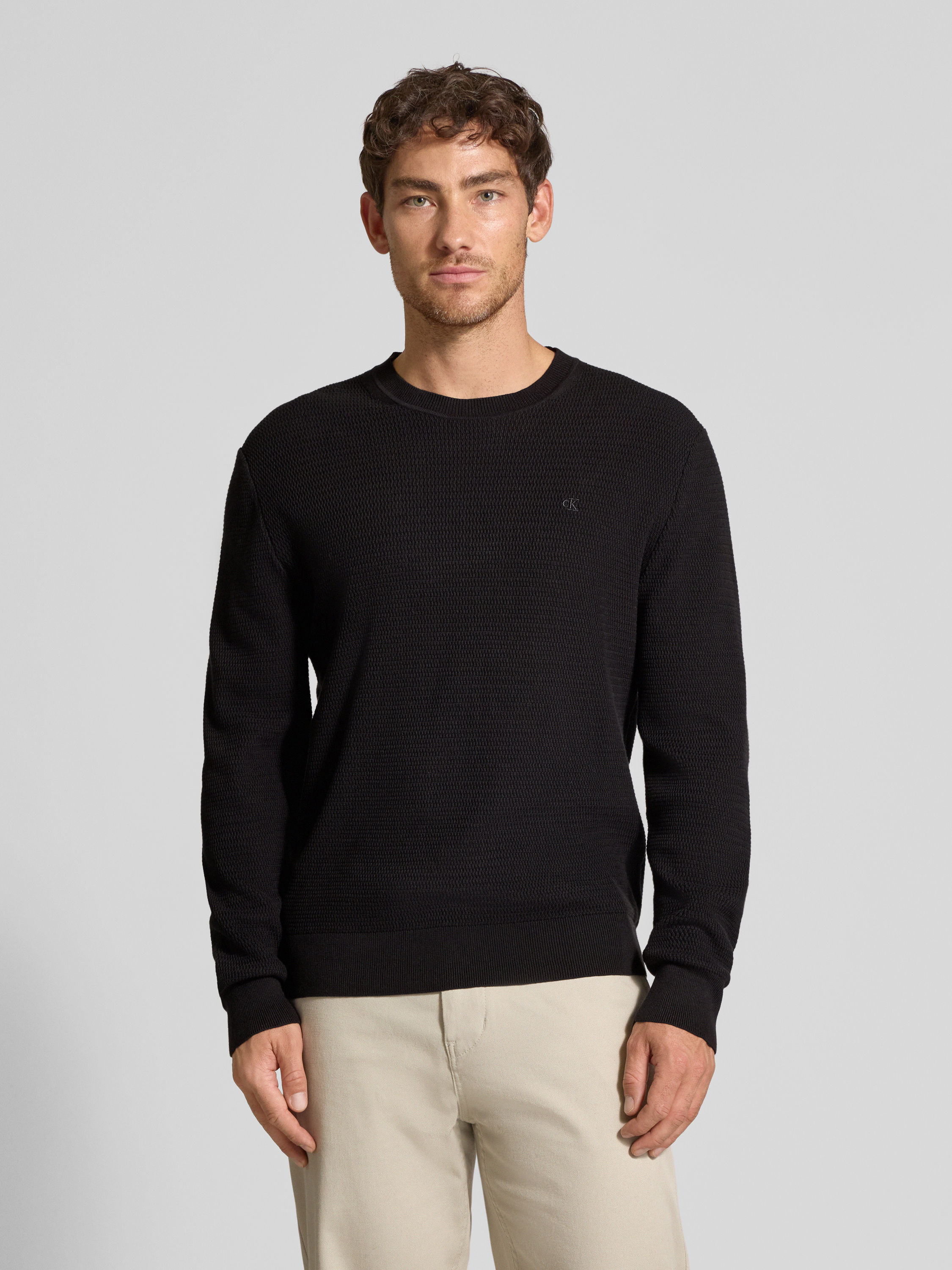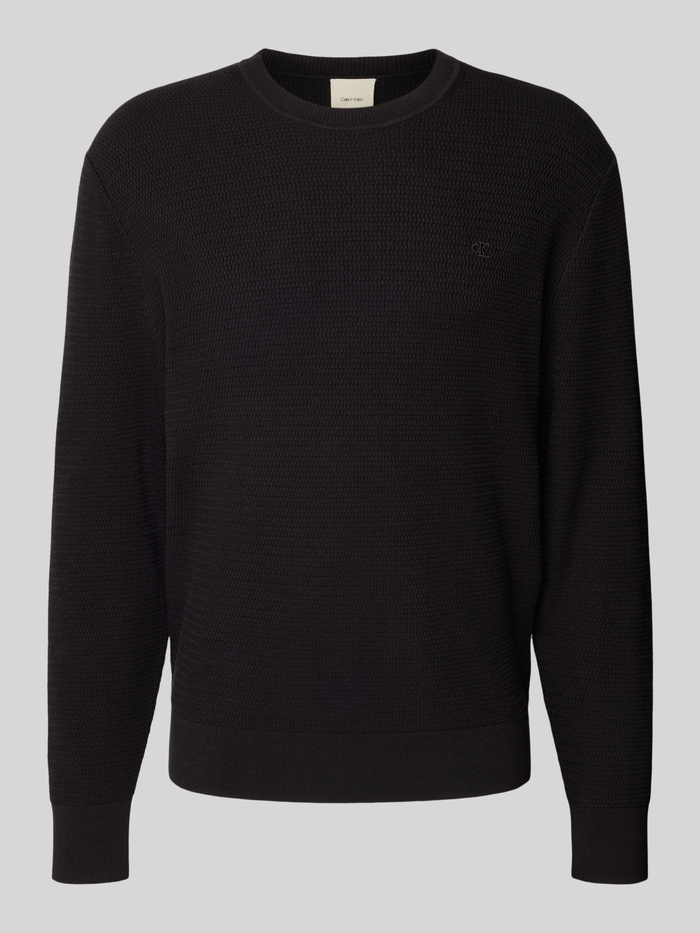Relaxed fit pullover in gebreide look, model 'Texture' in zwart