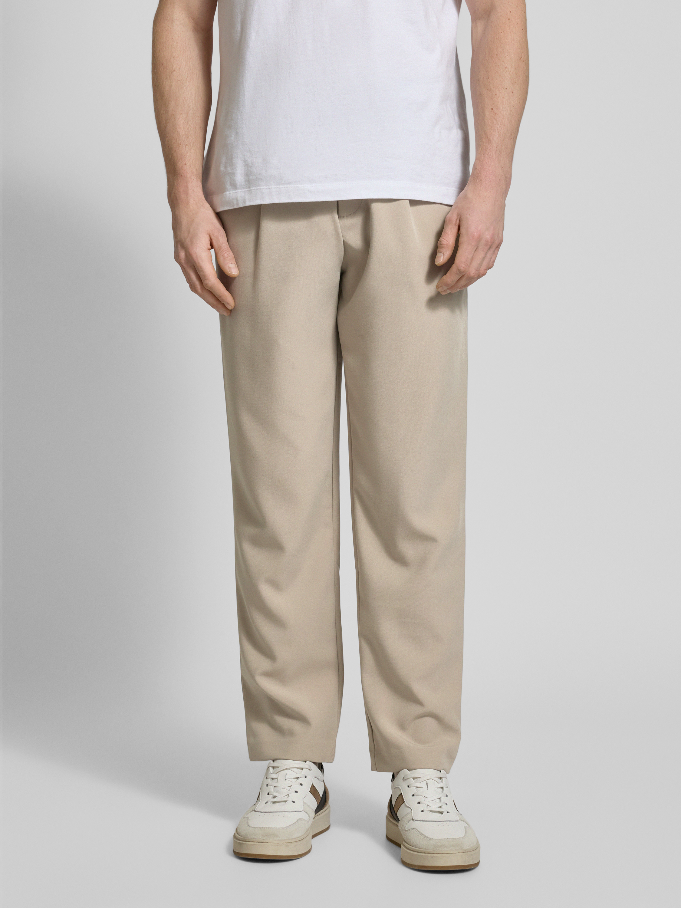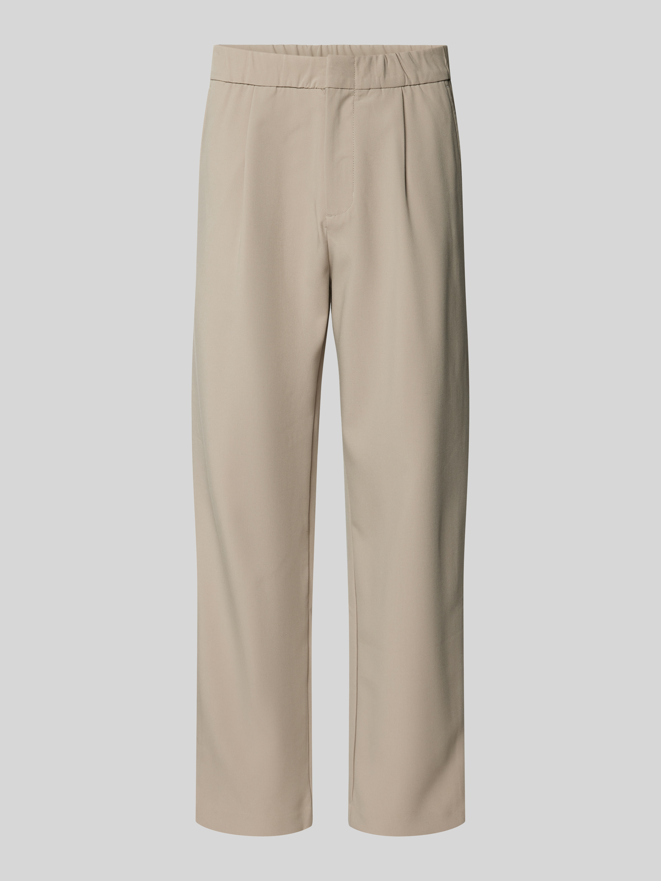 Relaxed tapered fit bandplooibroek met elastische band in kaki