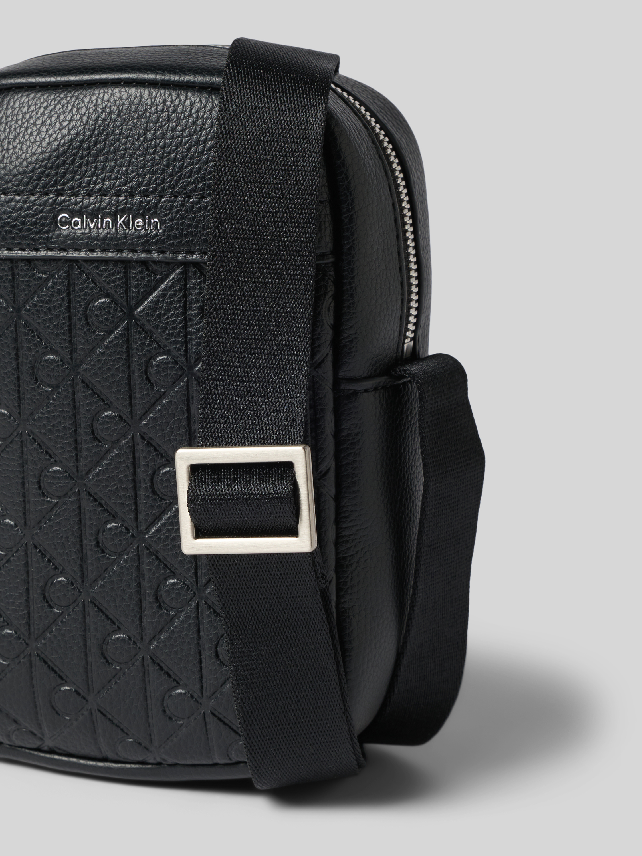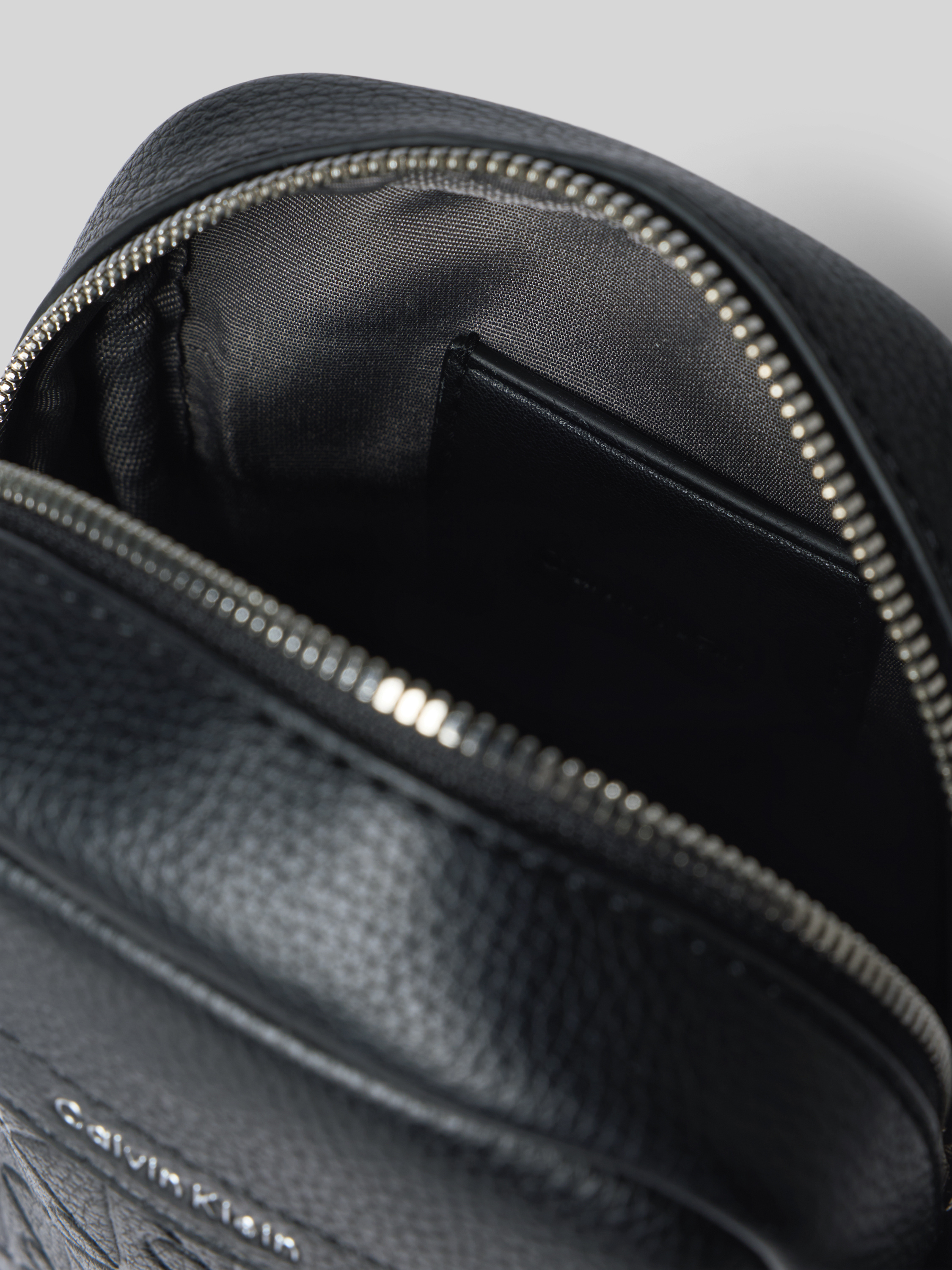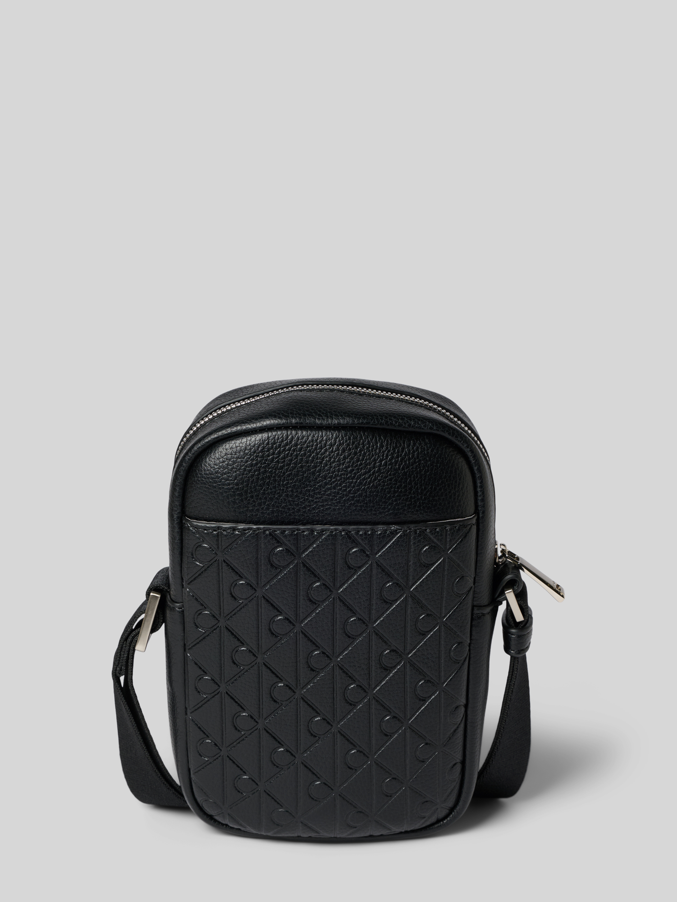 Schoudertas met doorgestikte naden en labeldetail in zwart