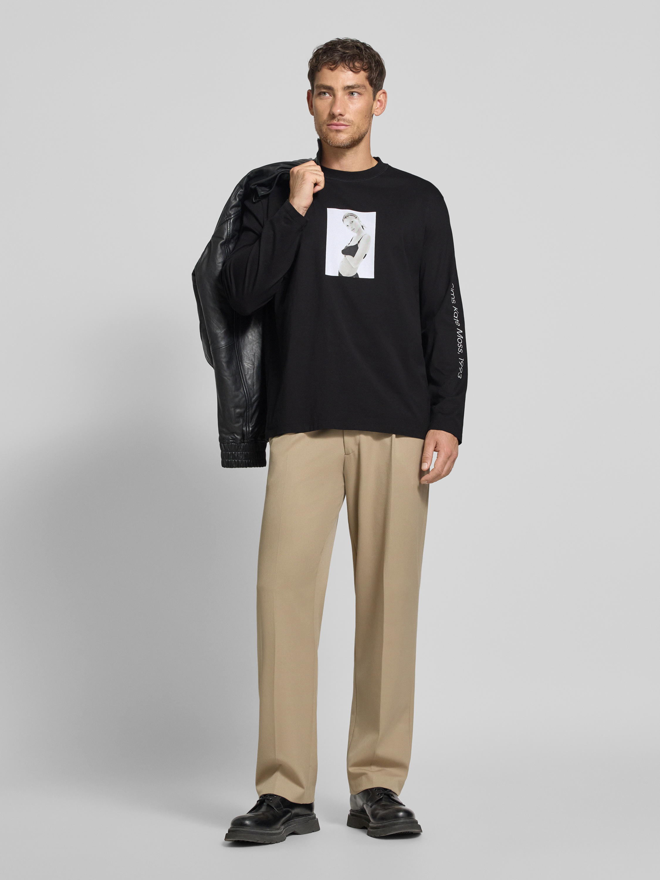 Loose fit bandplooibroek met riemlussen, model 'FINN'
