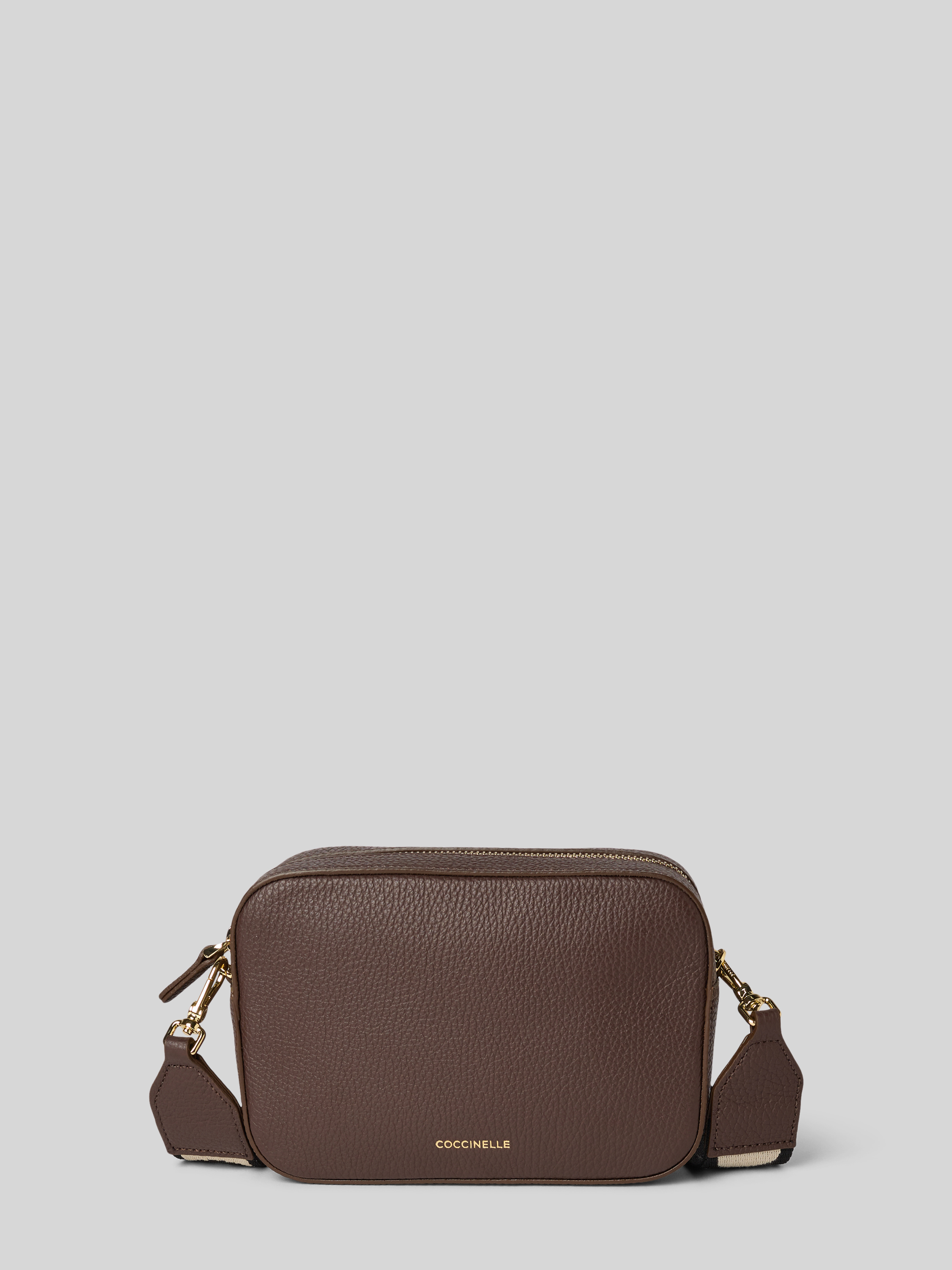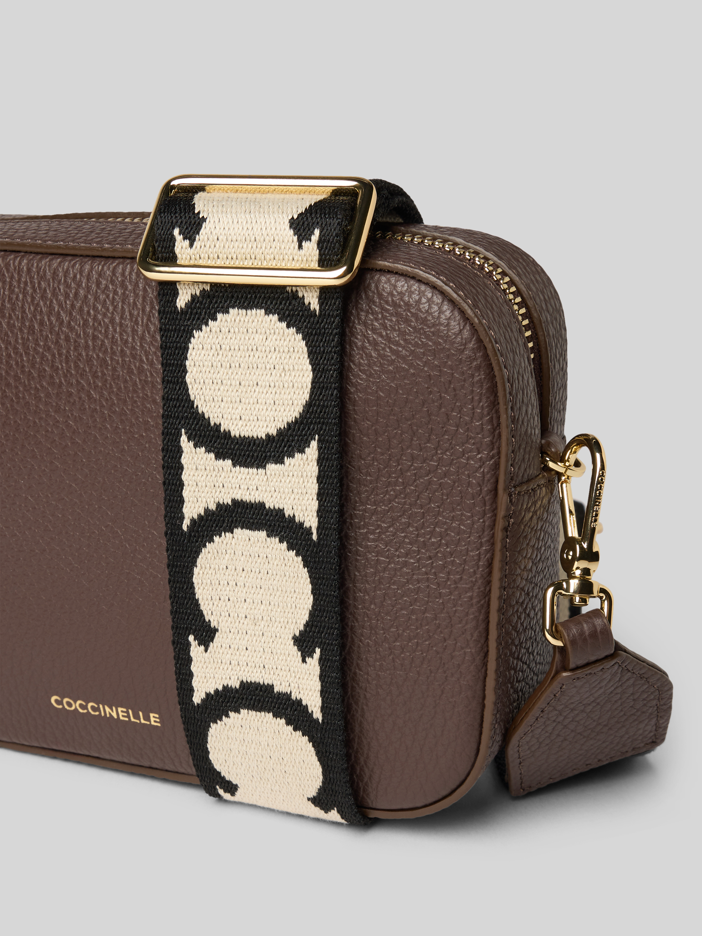 Handtas met labelapplicatie, model 'TEBE' in donkerbruin