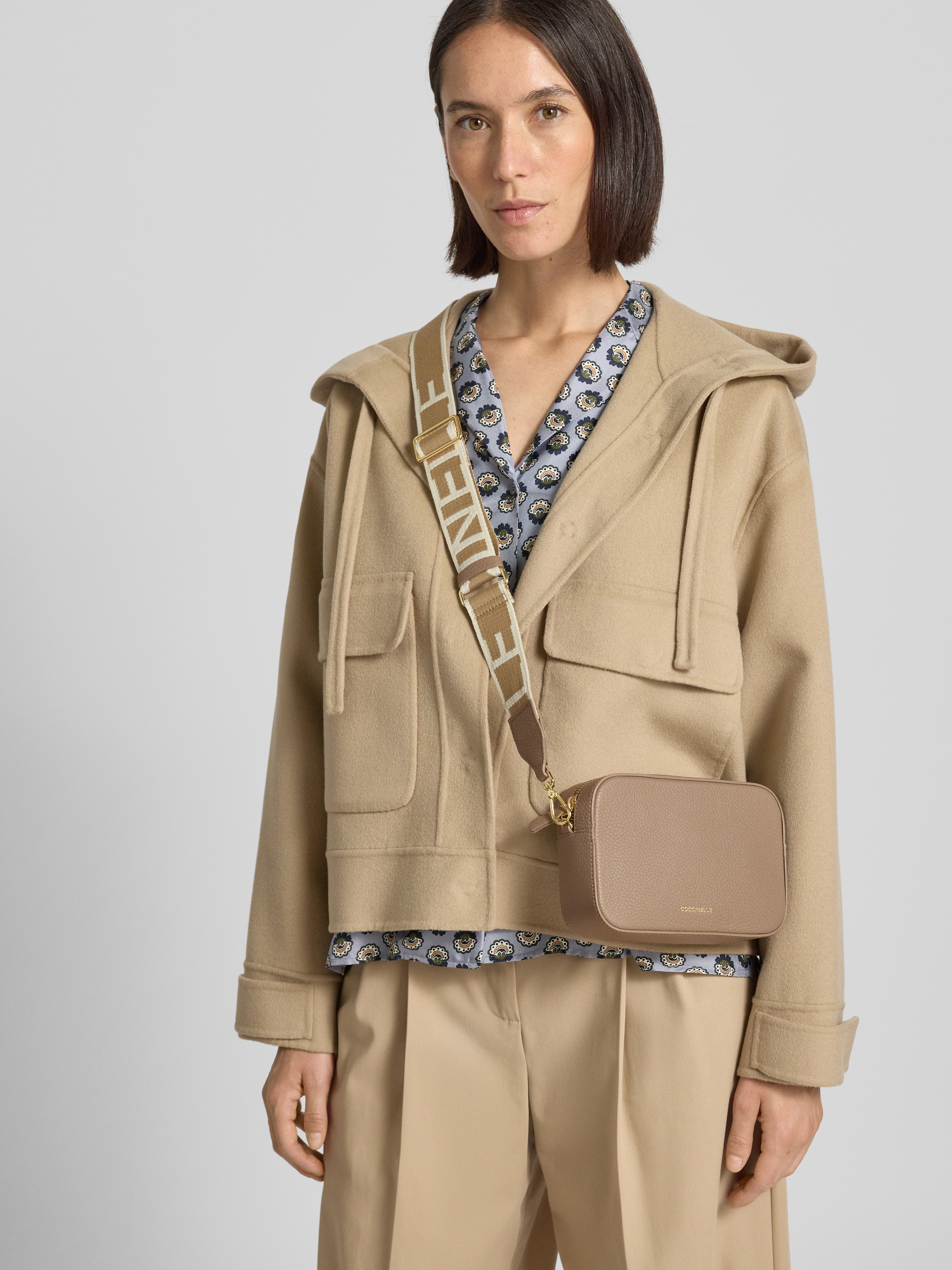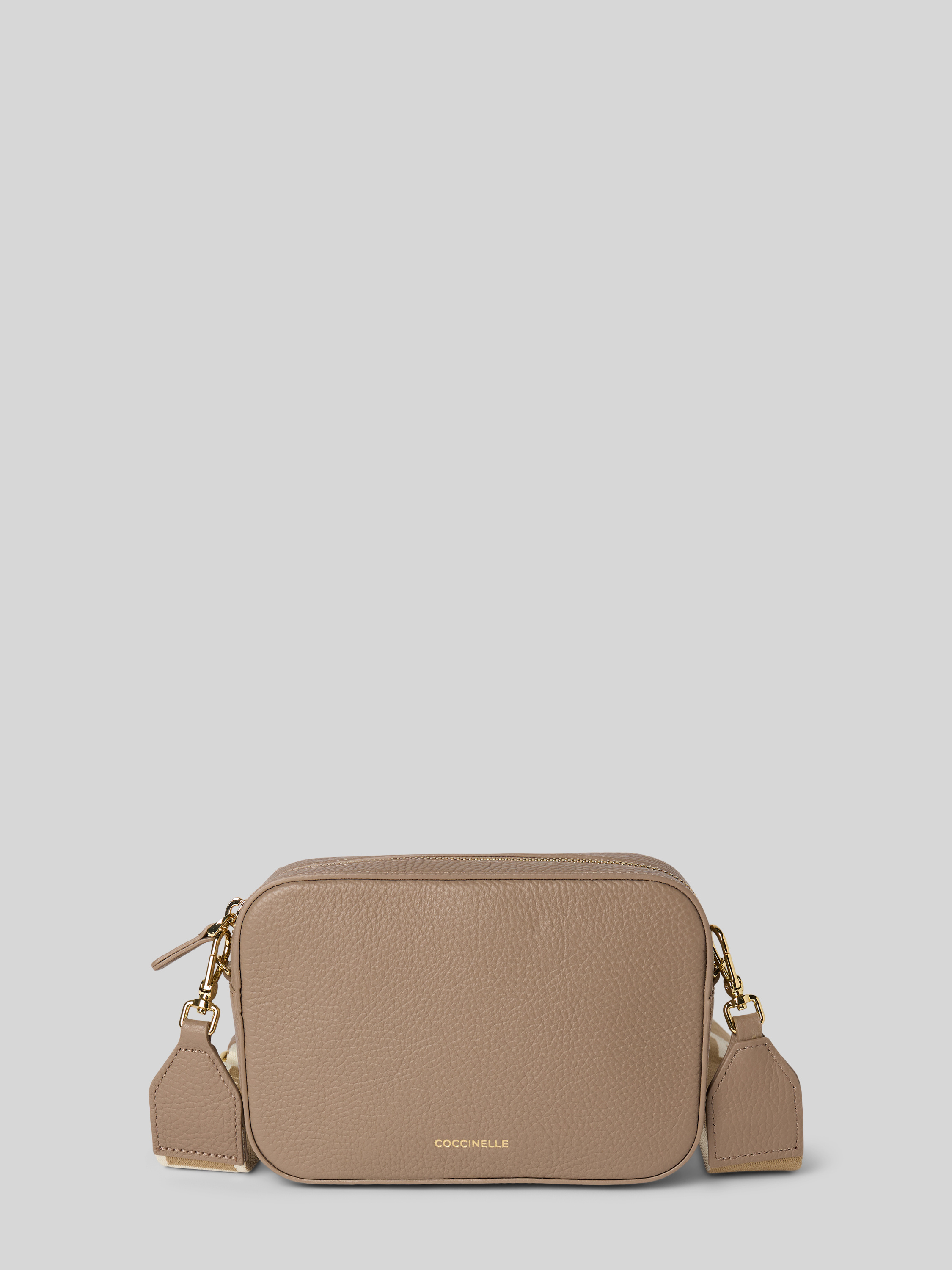 Handtas met labelapplicatie, model 'TEBE' in taupe
