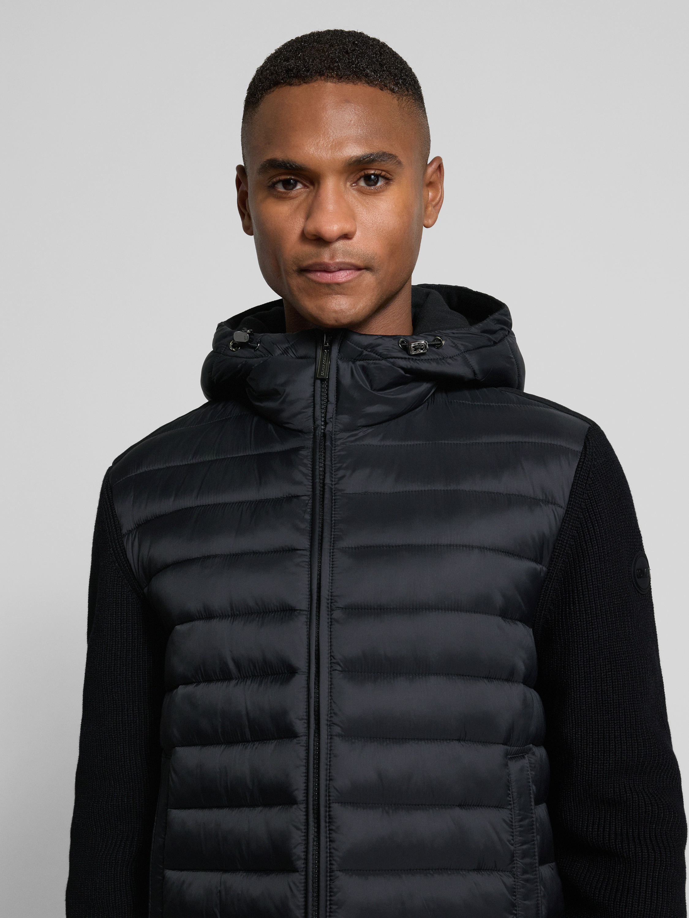Hybride jack met capuchon en tweewegsritssluiting in zwart